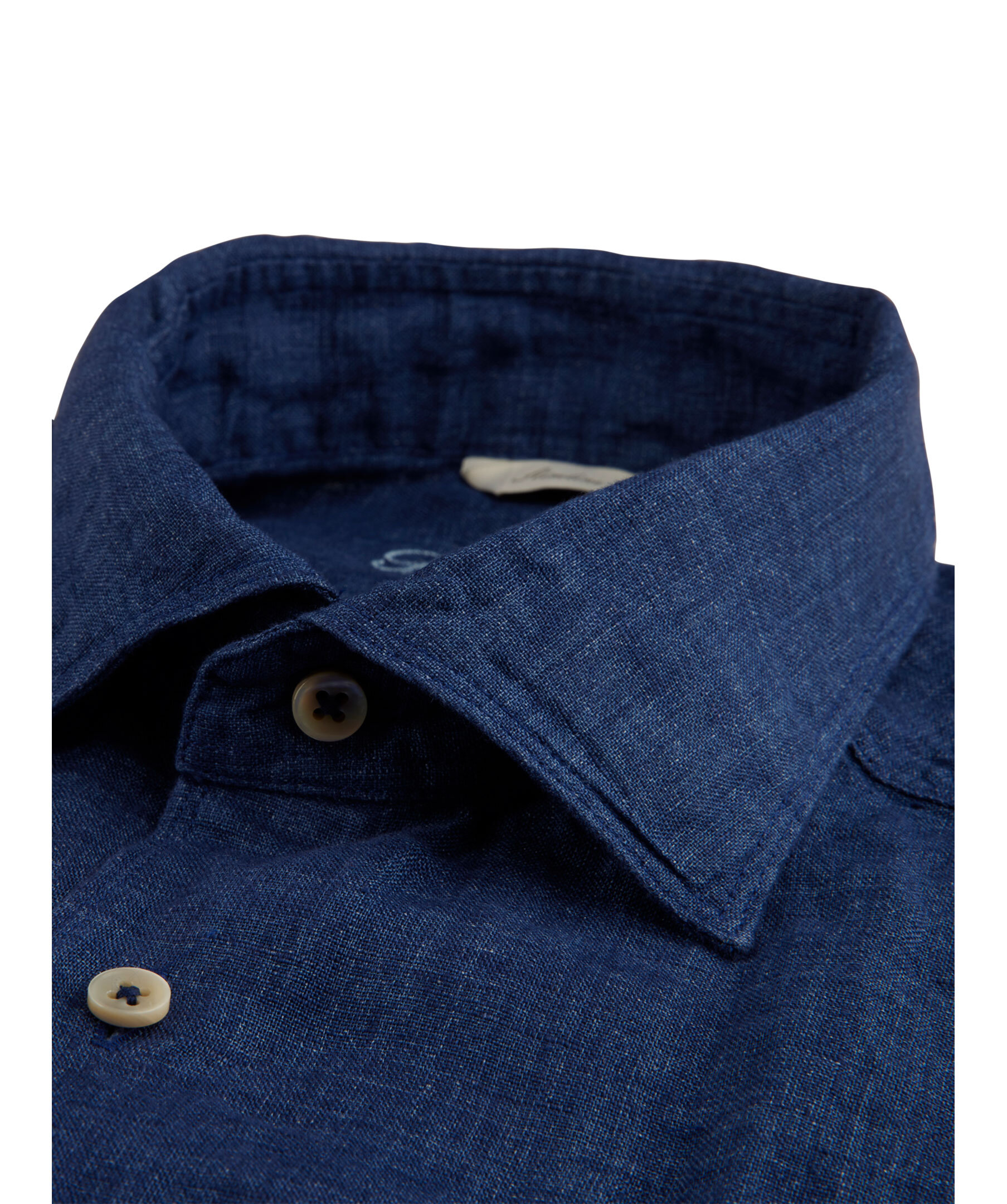 Denna casual Slimline-skjorta är tillverkad av linne. Skjortan har pärlemorknappar, enkla manschetter och en cut away krage.
