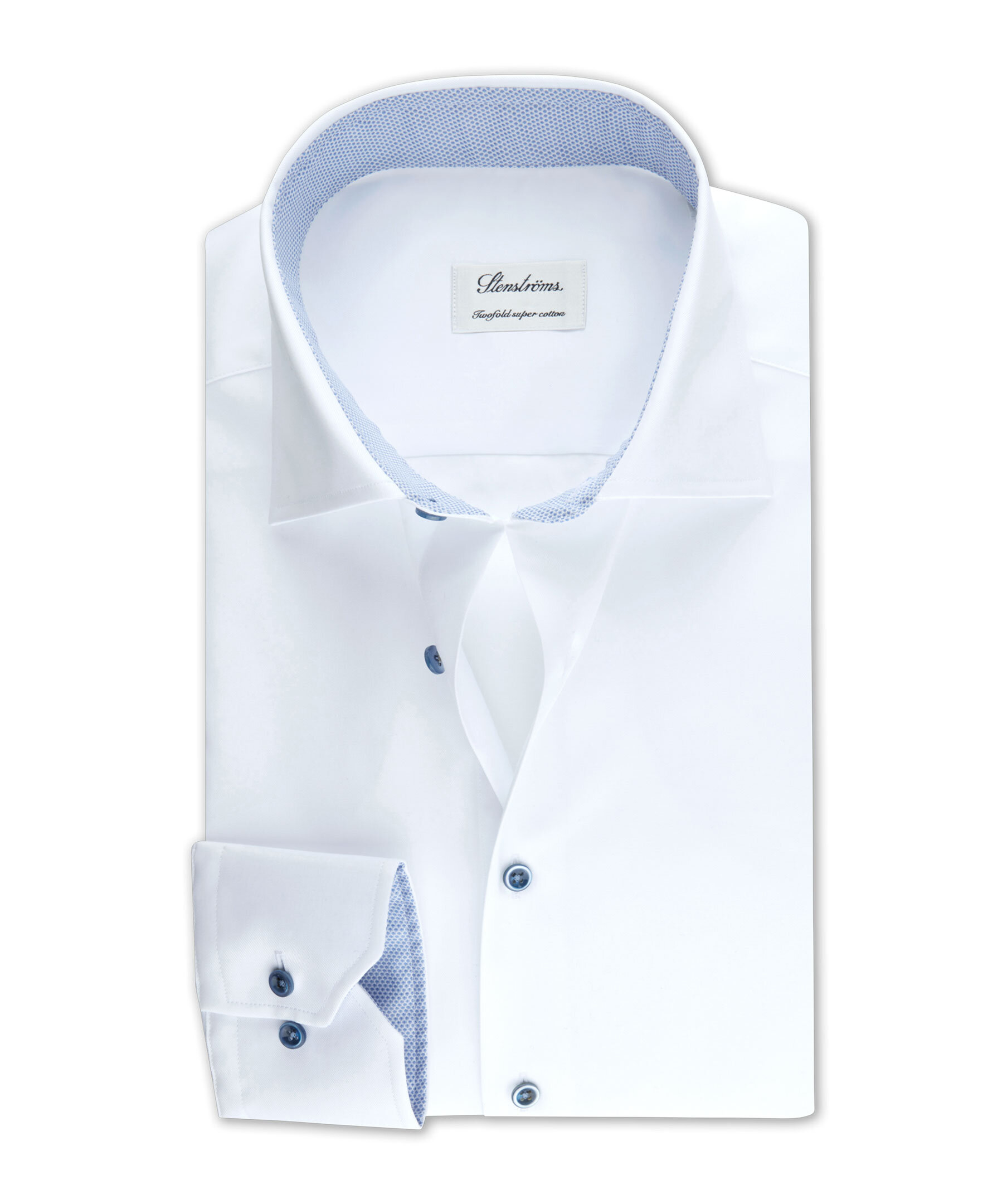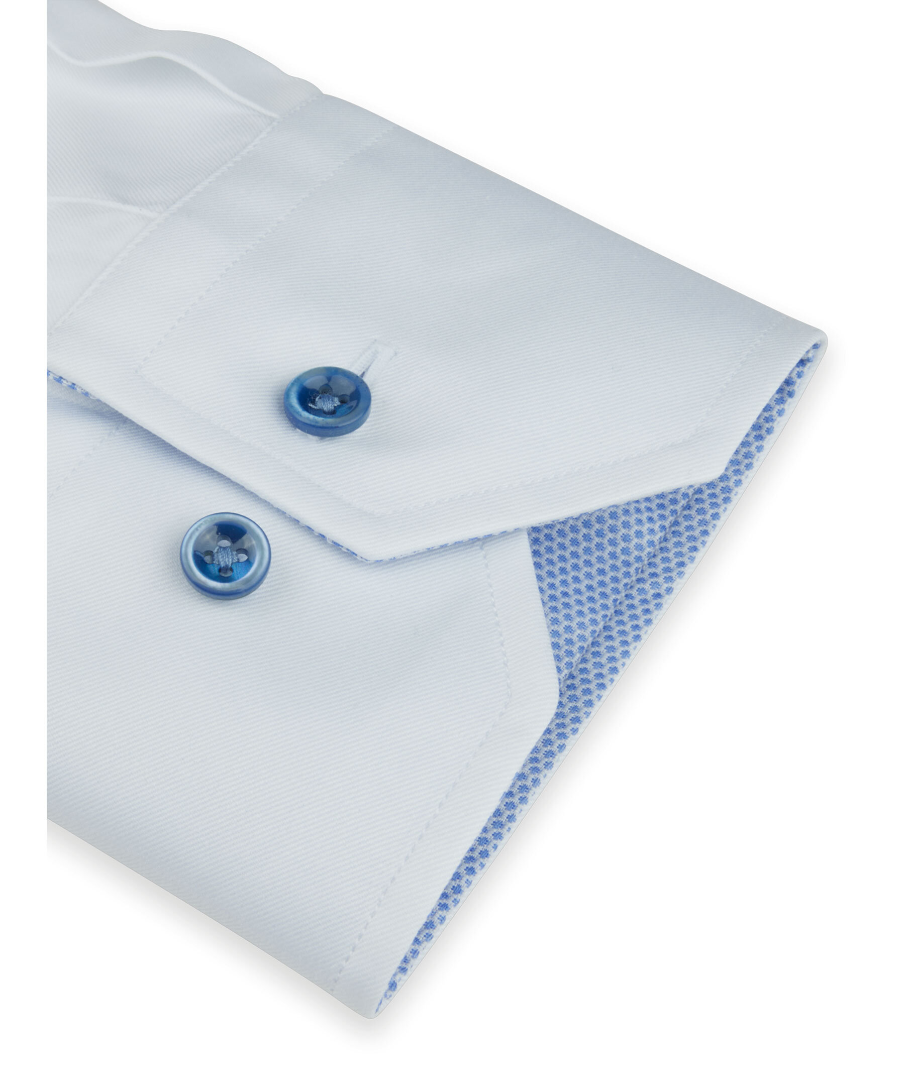 Denna Slimline twillskjorta är tillverkad av twofold bomull och har kontrast i krage och manschett. Skjortan har pärlemorknappar, enkla manschetter och en cut away krage.