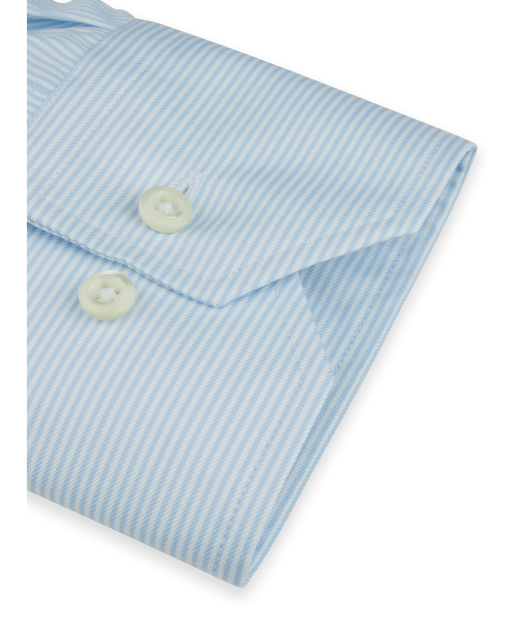 Denna randiga Slimline twillskjorta är tillverkad av twofold bomull. Skjortan har pärlemorknappar, enkla manschetter och en cut away krage.