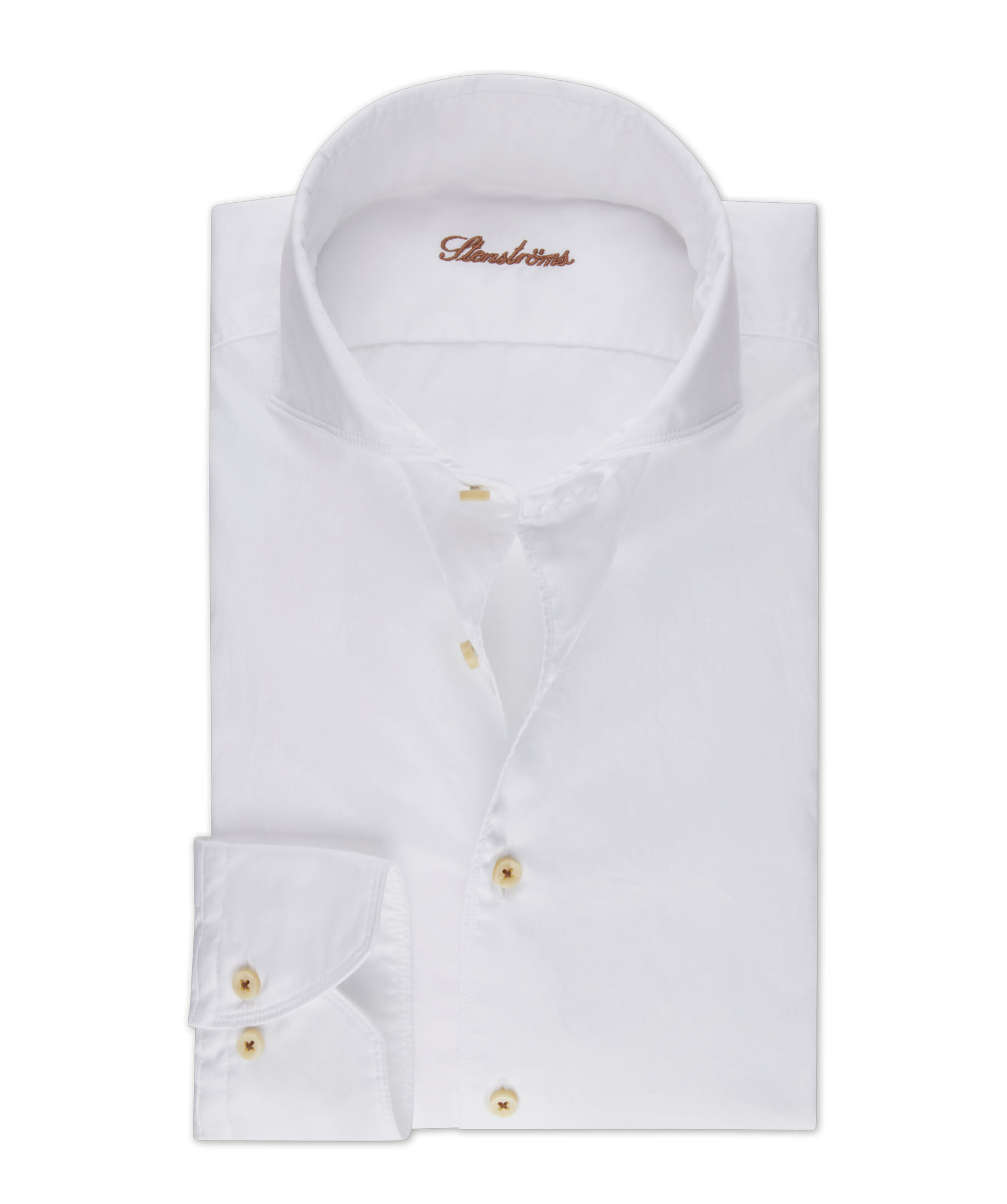 Denna Slimline twillskjorta är tillverkad av twofold bomull. Skjortan har pärlemorknappar, enkla manschetter, en cut away krage och XL-ärmar.