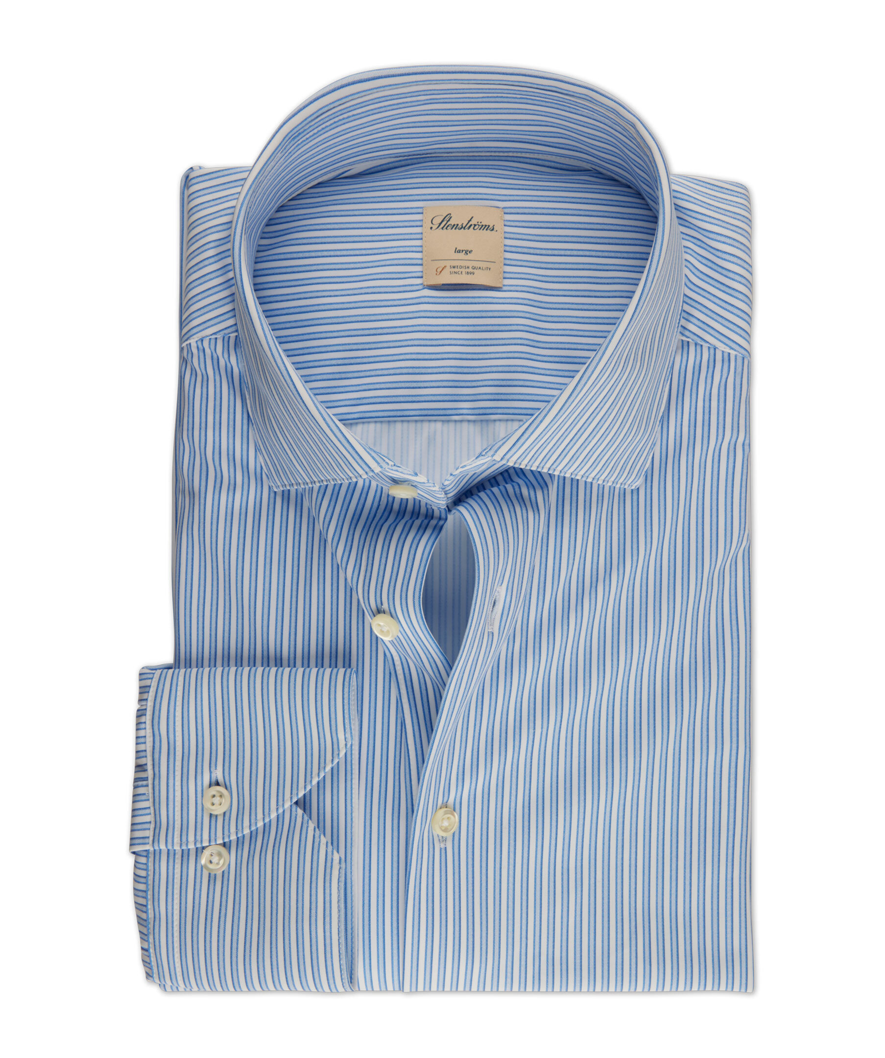 Denna casual randiga jerseyskjorta är tillverkad av polyamid och elastan. Skjortan har pärlemorknappar, enkla manschetter och en cut away krage.