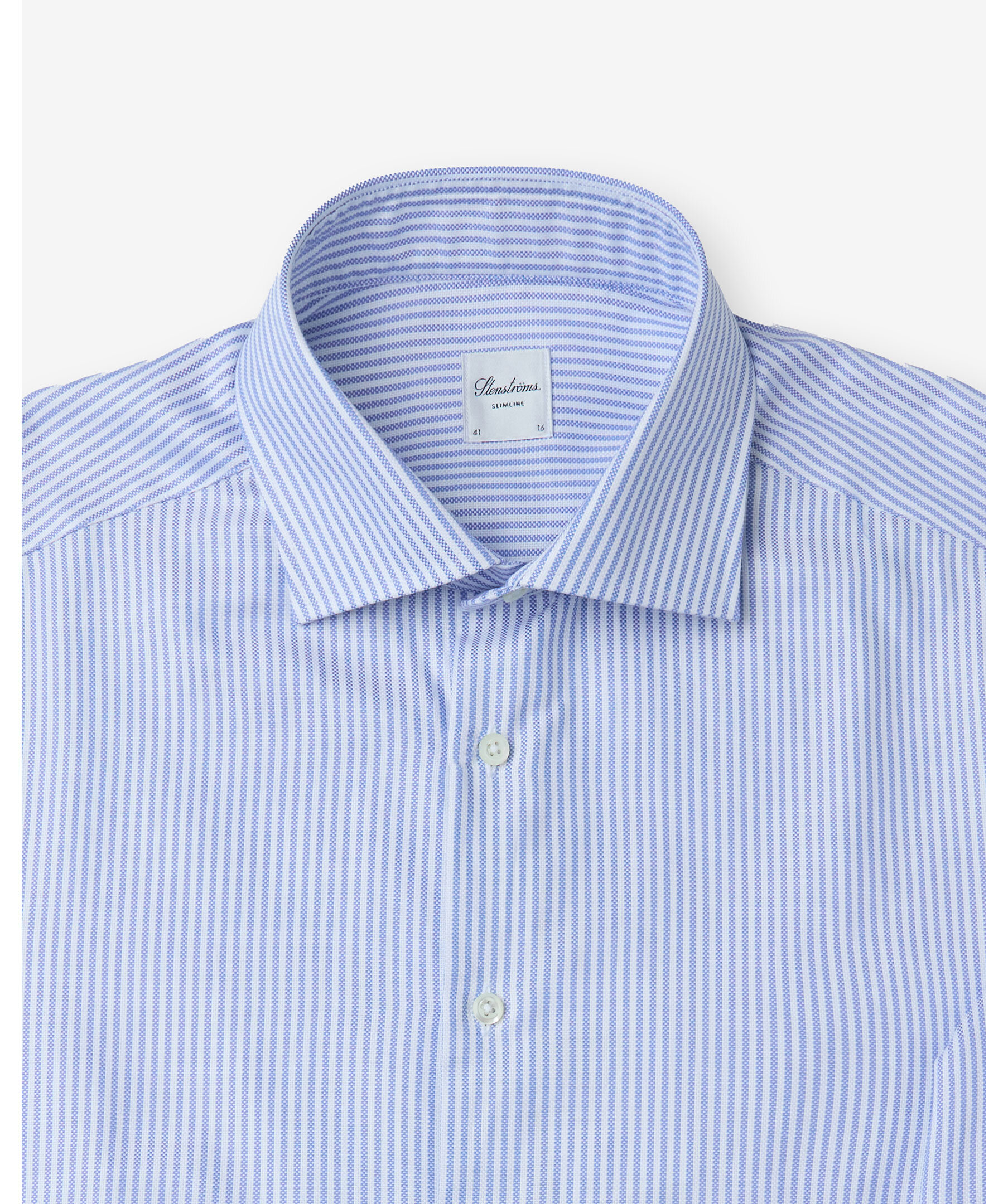 Randig skjorta i blått och vitt från Stenströms. Skjortan har en slimline passform och cut away krage, och är tillverkad i 100% bomull.