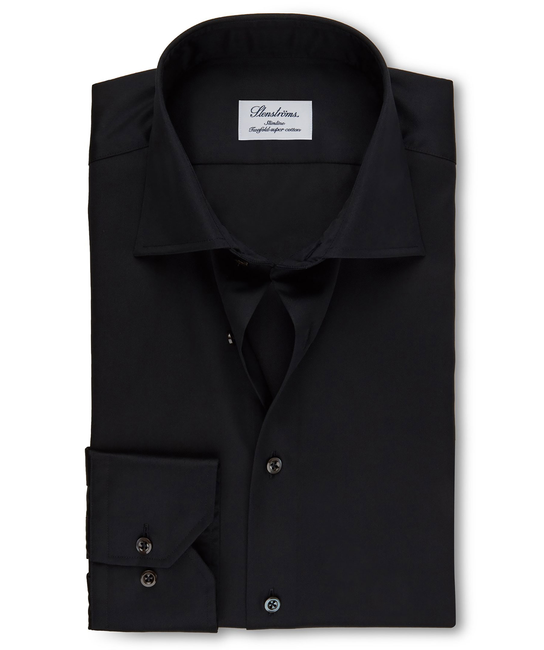 Svart skjorta från Stenströms. Enkel manschett, moderate cut away, smal passform, svarta pärlemorknappar. Tillverkad i 100% bomull.