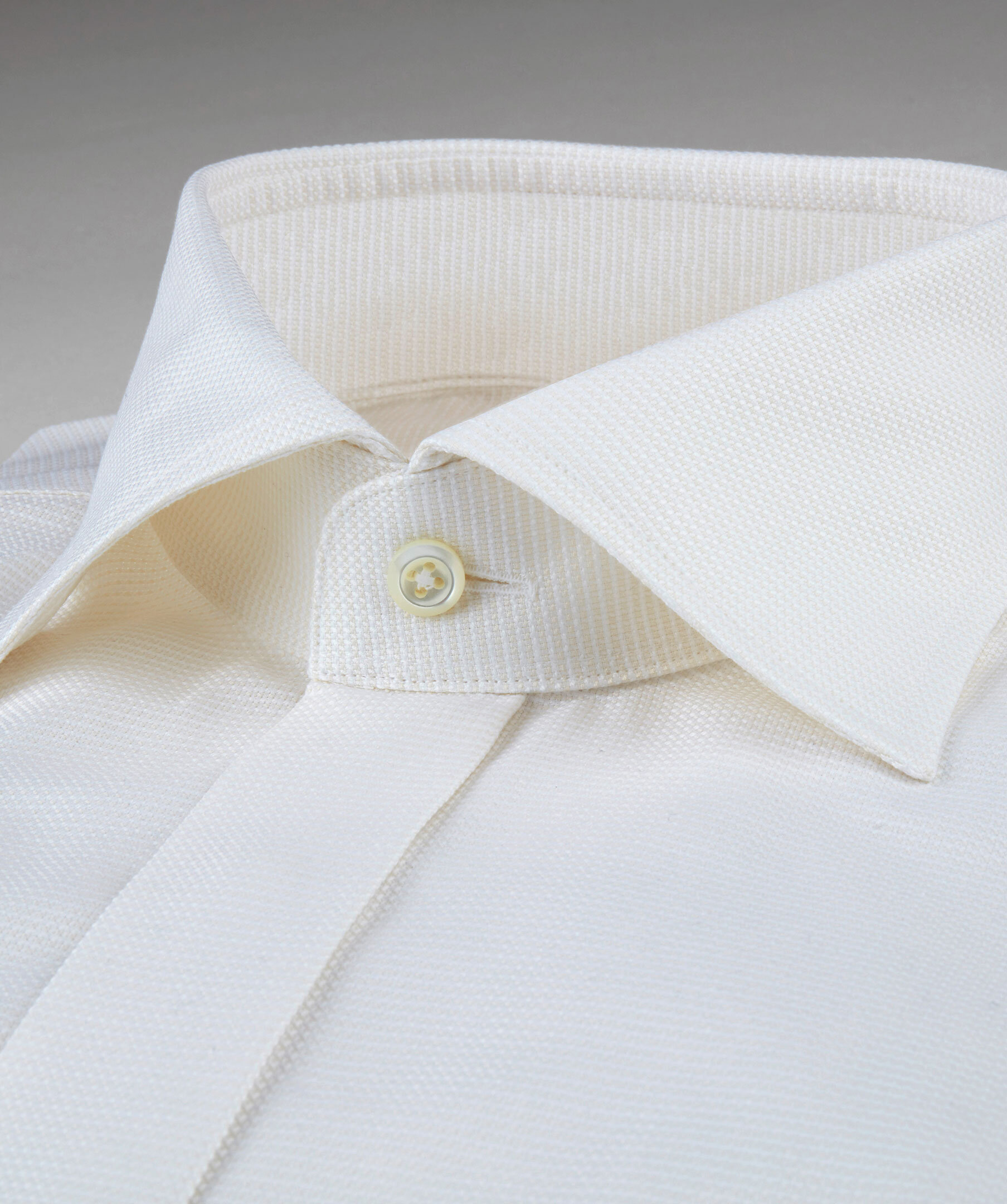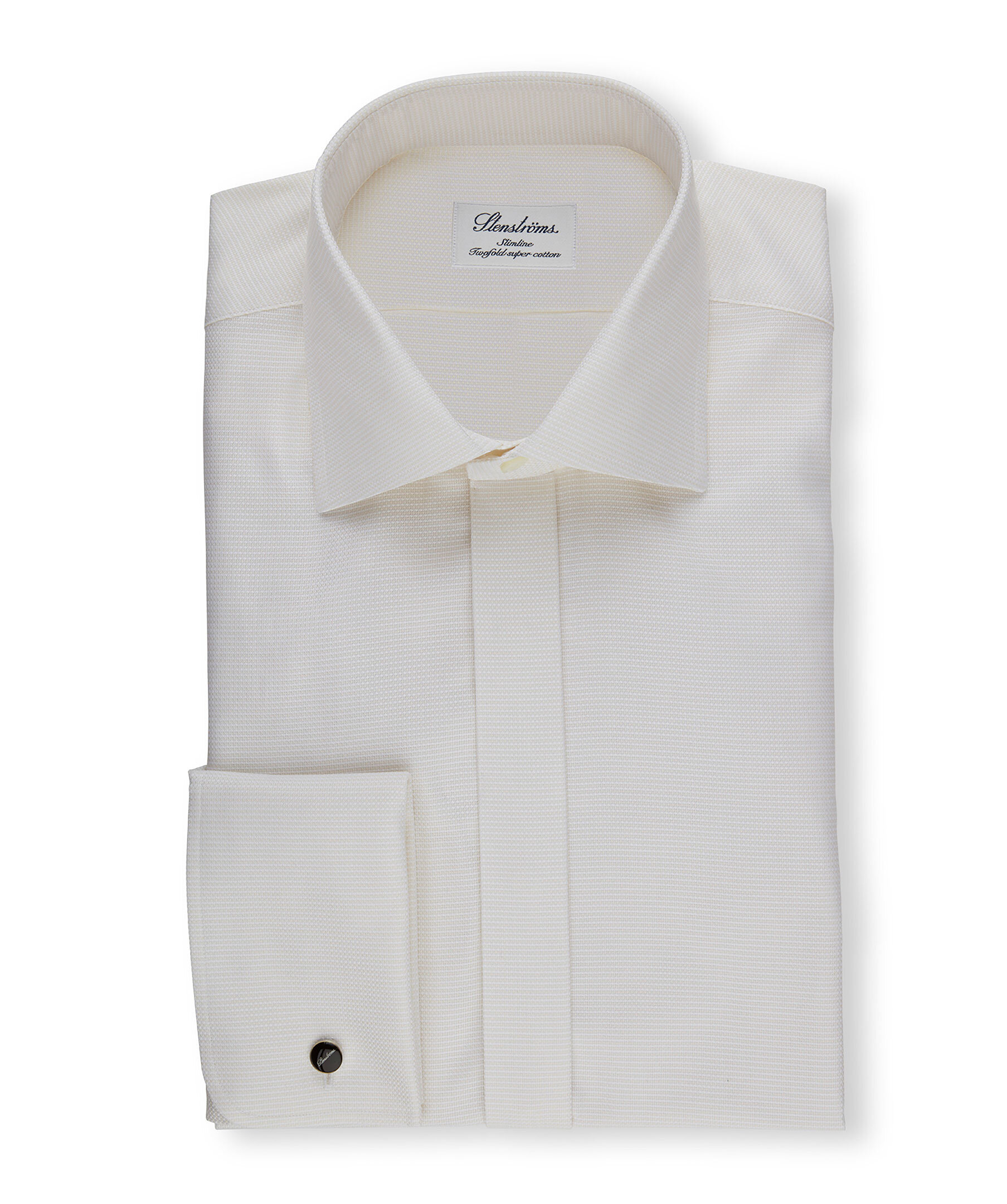 En sofistikerad aftonskjorta gjord av fint twofold bomull, i en smal modell. Detaljerad med en dold knäppning, dubbla manschetter och en cut away krage. Matcha till en snygg kostym eller bra sittande kostymbyxor.