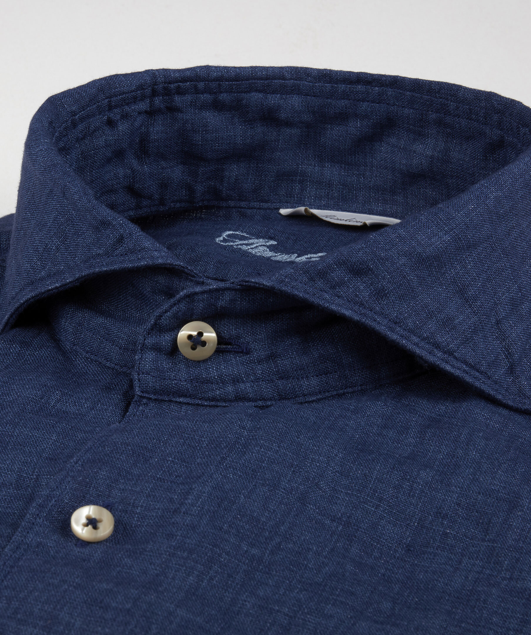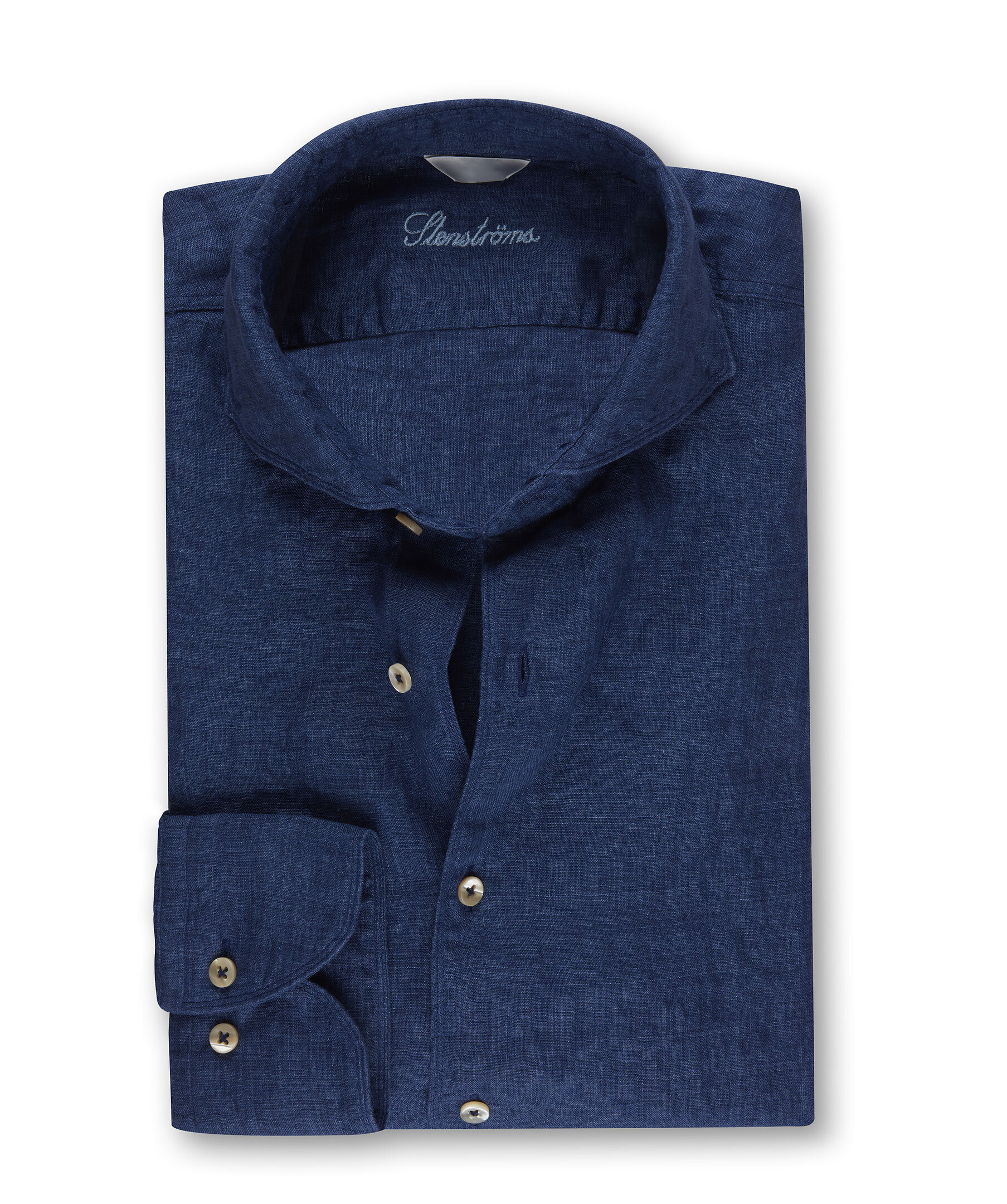 Blå långärmad linneskjorta från Stenströms med knappar i pärlemor. Enkla manschetter. Smal passform.