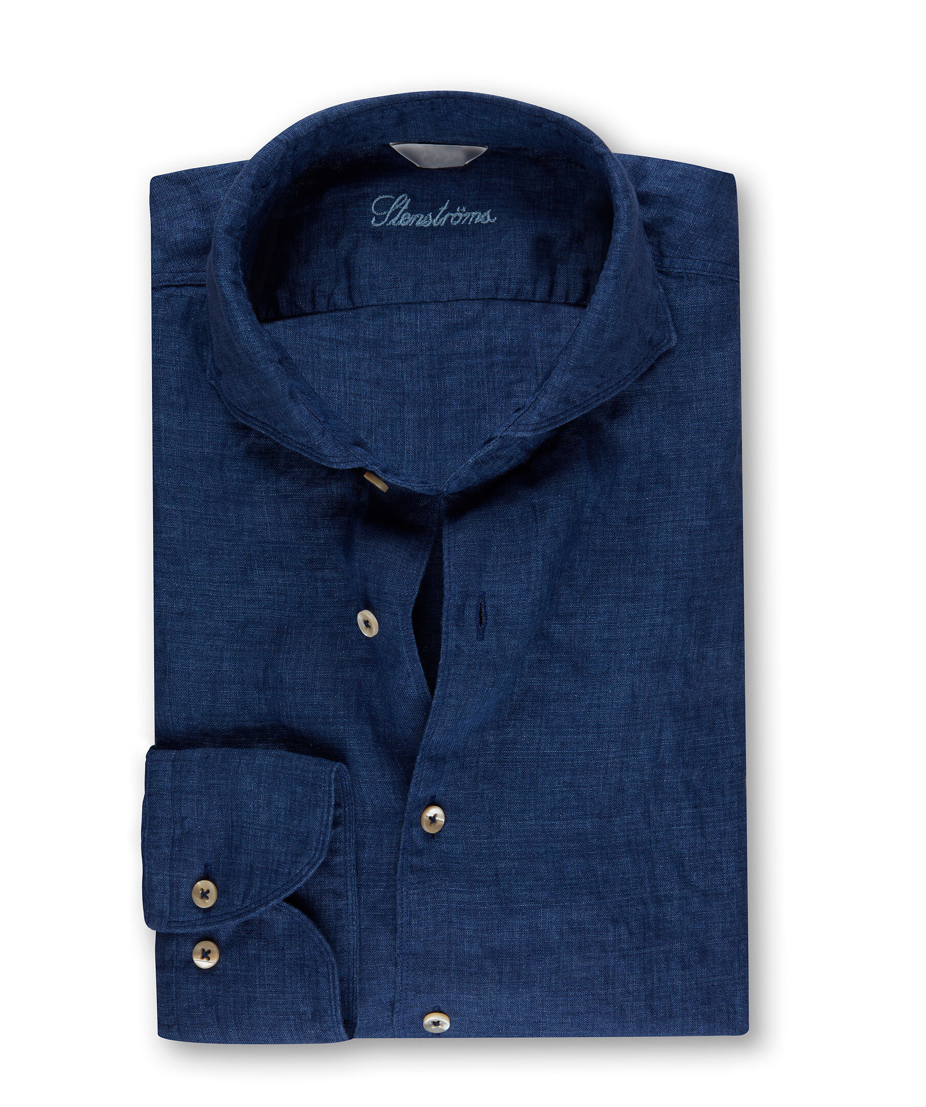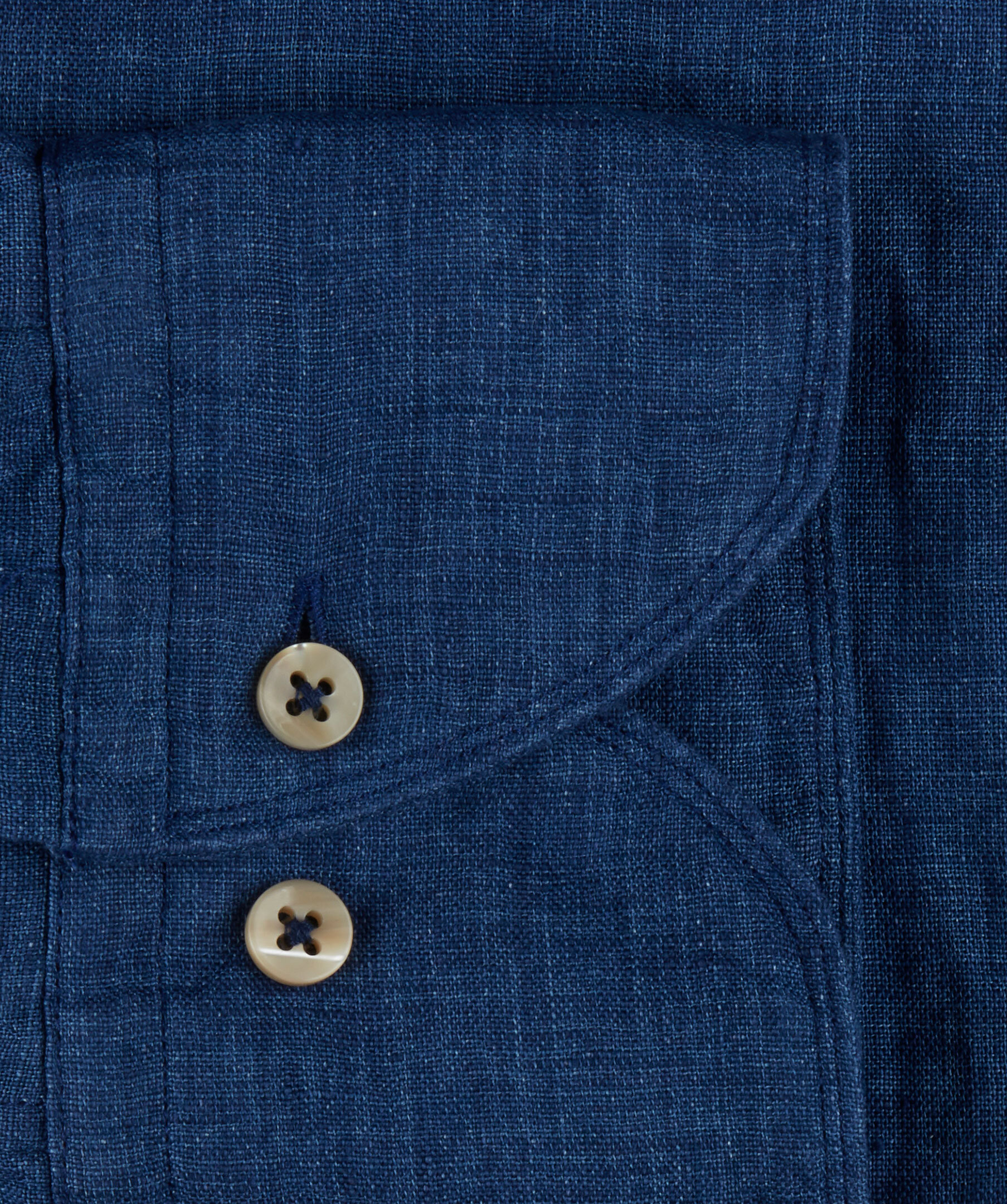 Linneskjortan är det ideala plagget för varma sommardagar och kan bäras både på kontoret och på stranden. Den här skjortan har en smal passform och har en slät front med beigea pärlemorknappar och enkla manschetter. Rulla upp ärmarna och bär skjortan till ett par shorts eller ett par jeans för en avslappnad stil.