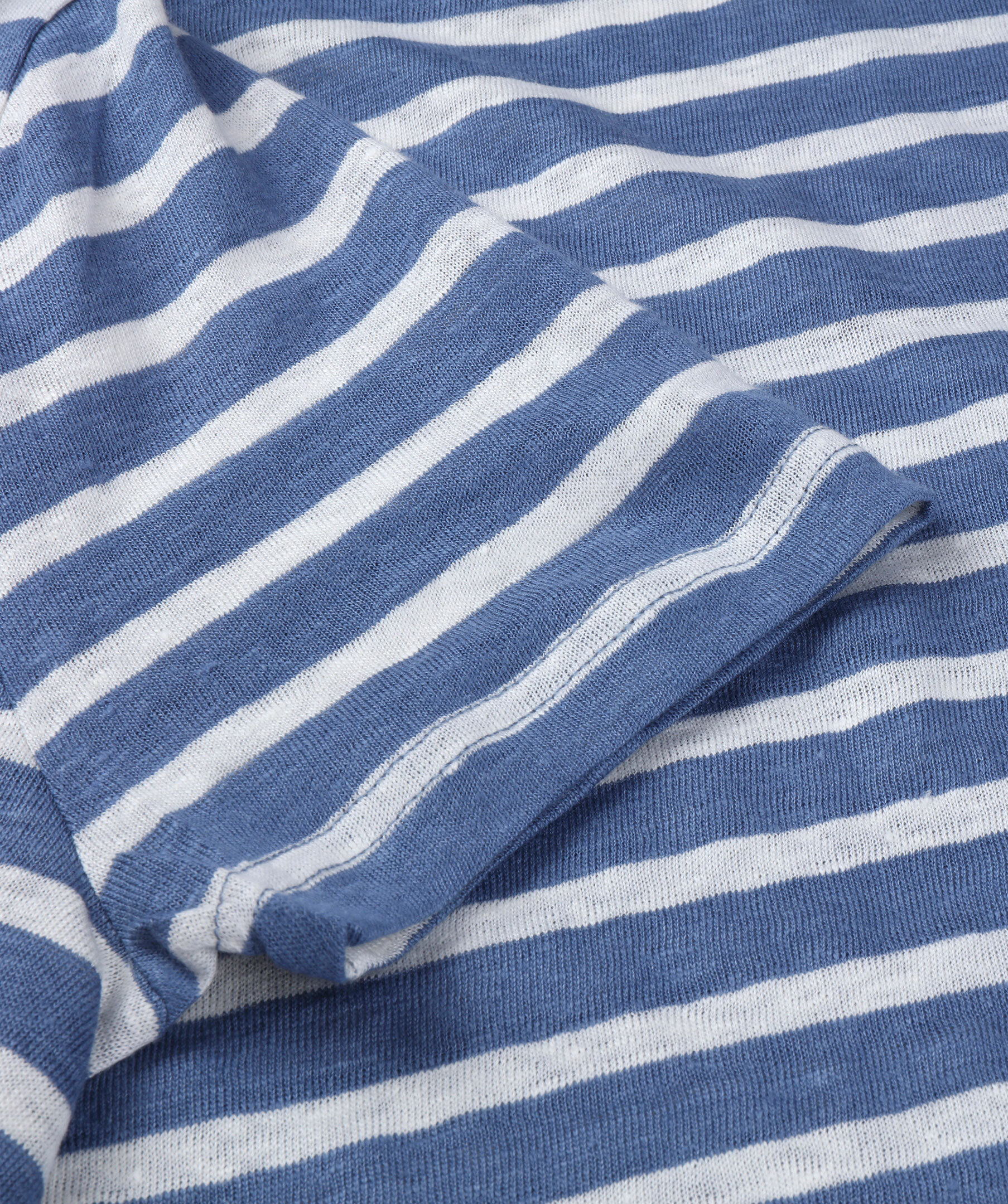 T-shirt i mjuk linne jersey prydd med ett randigt mönster. Bär den till dina favoritjeans för en avslappnad och ledig helgstil eller till ljusa chinos förr sommarens middagar.