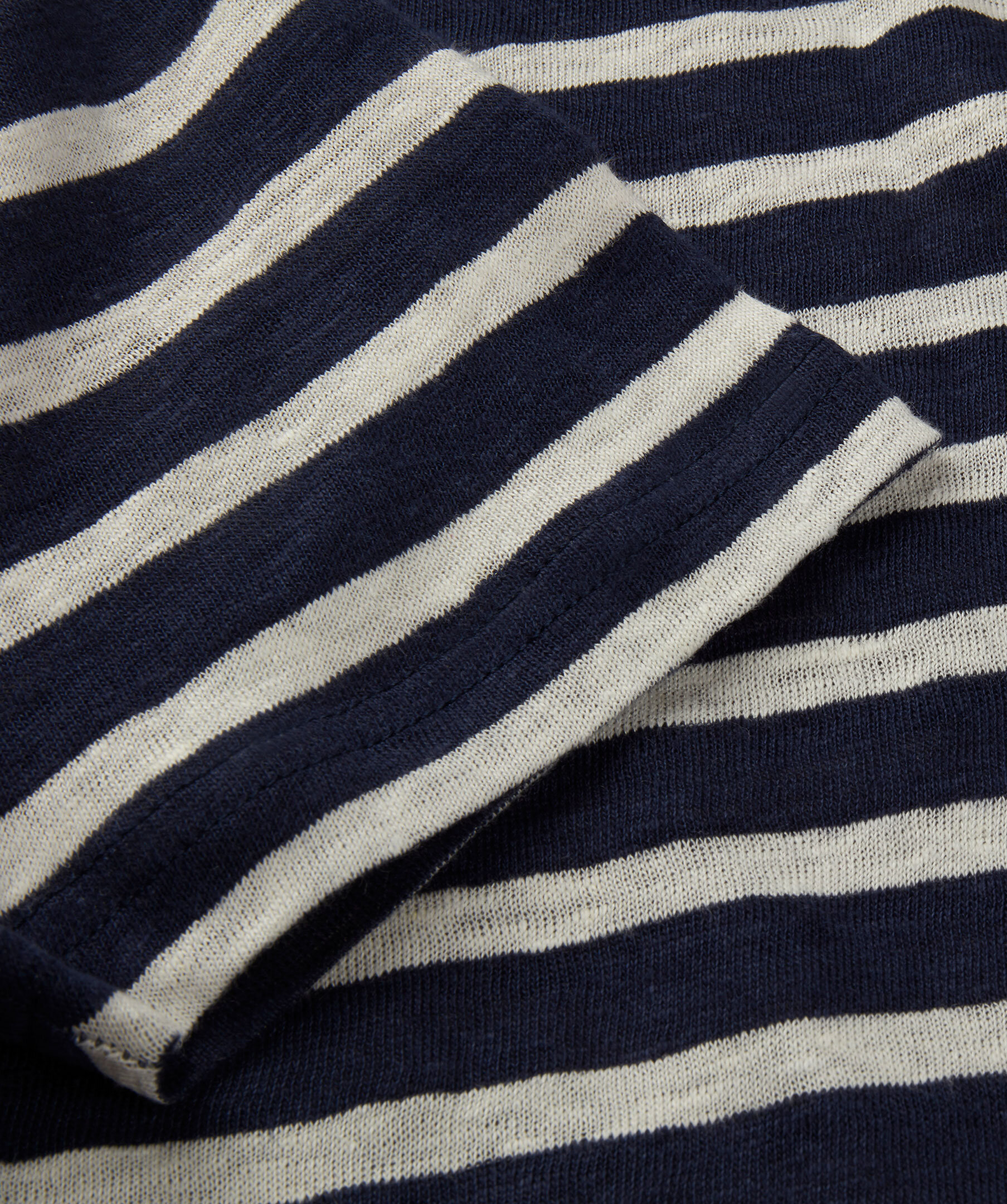 T-shirt i mjuk linne jersey prydd med ett randigt mönster. Bär den till dina favoritjeans för en avslappnad och ledig helgstil eller till ljusa chinos förr sommarens middagar.