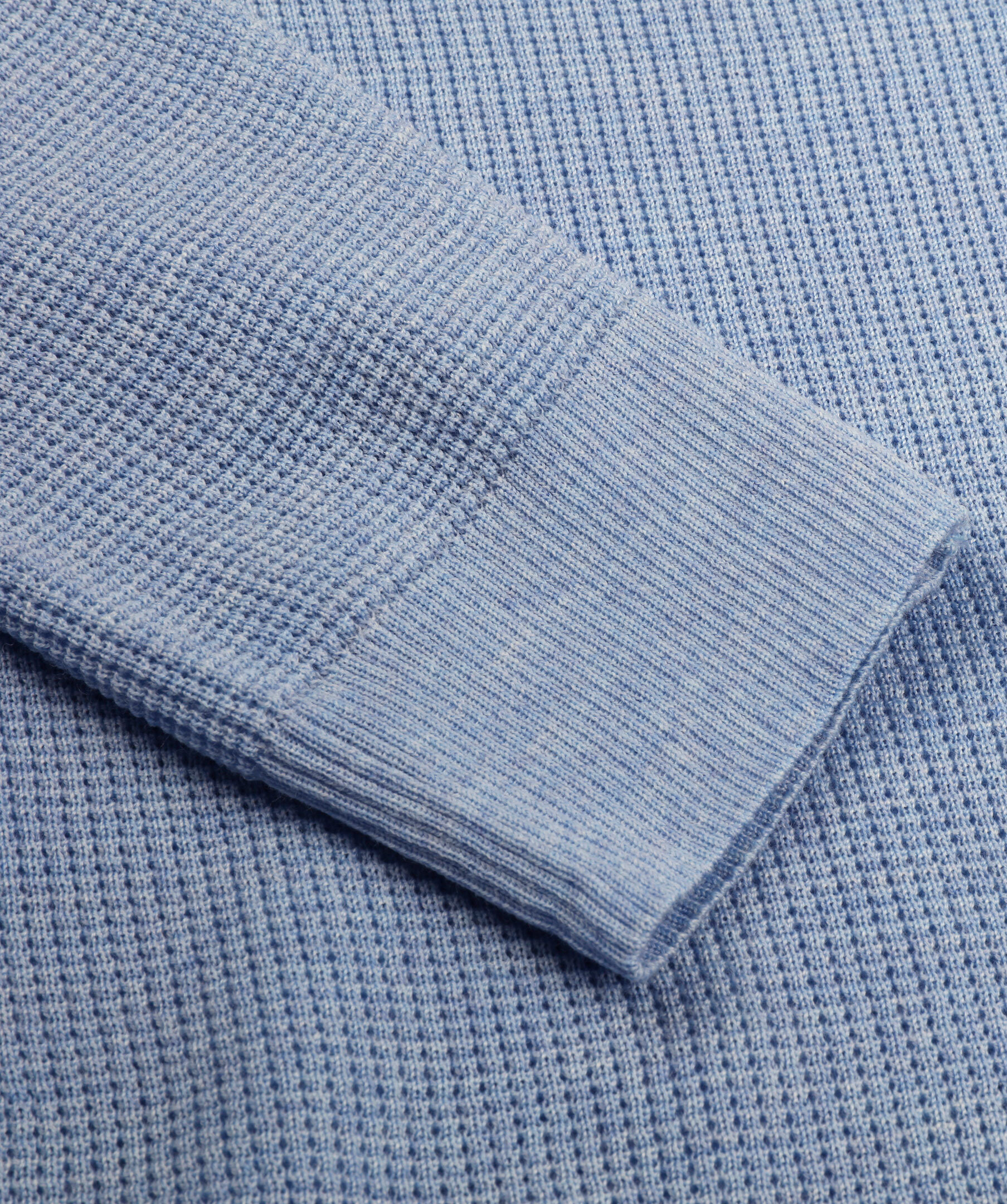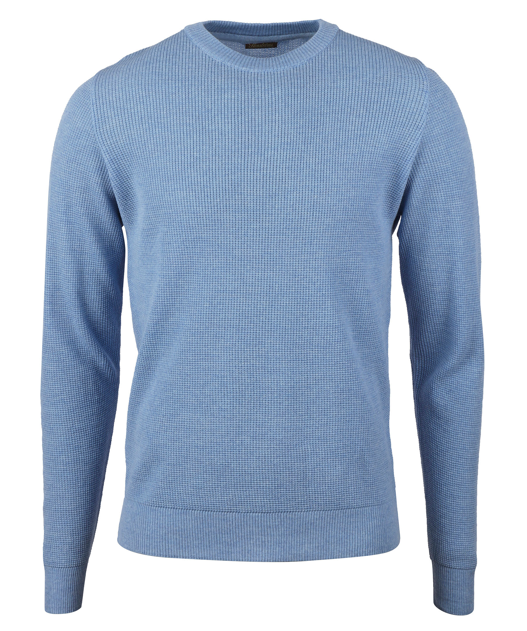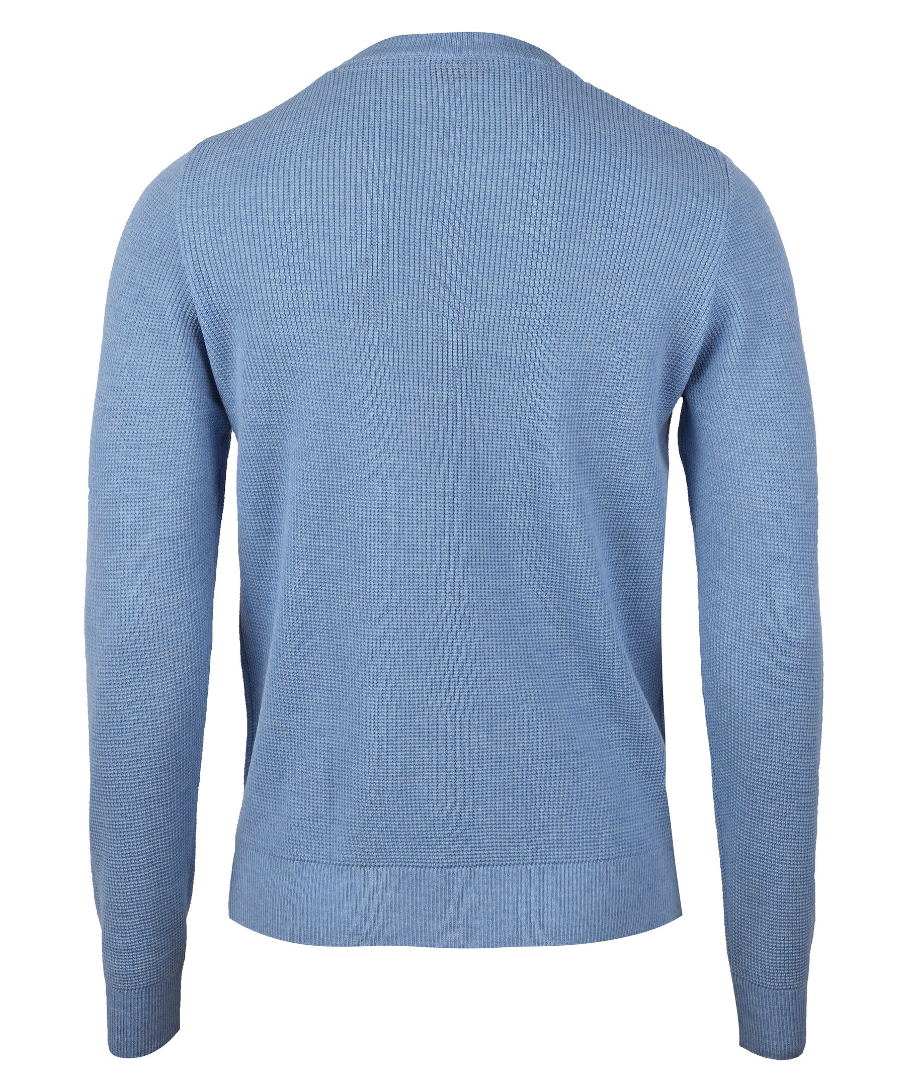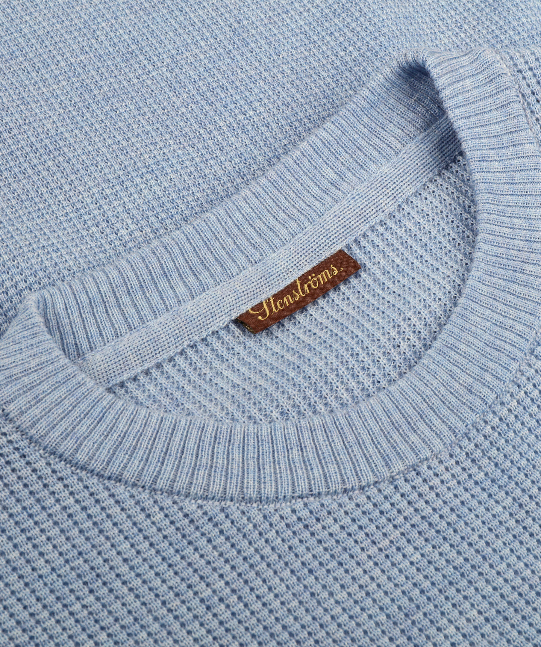 Ljusblå finstickad tröja från Stenströms. Tillverkad i 100% merinoull. Stickad med struktur, rundad hals, ribbstickade muddar.