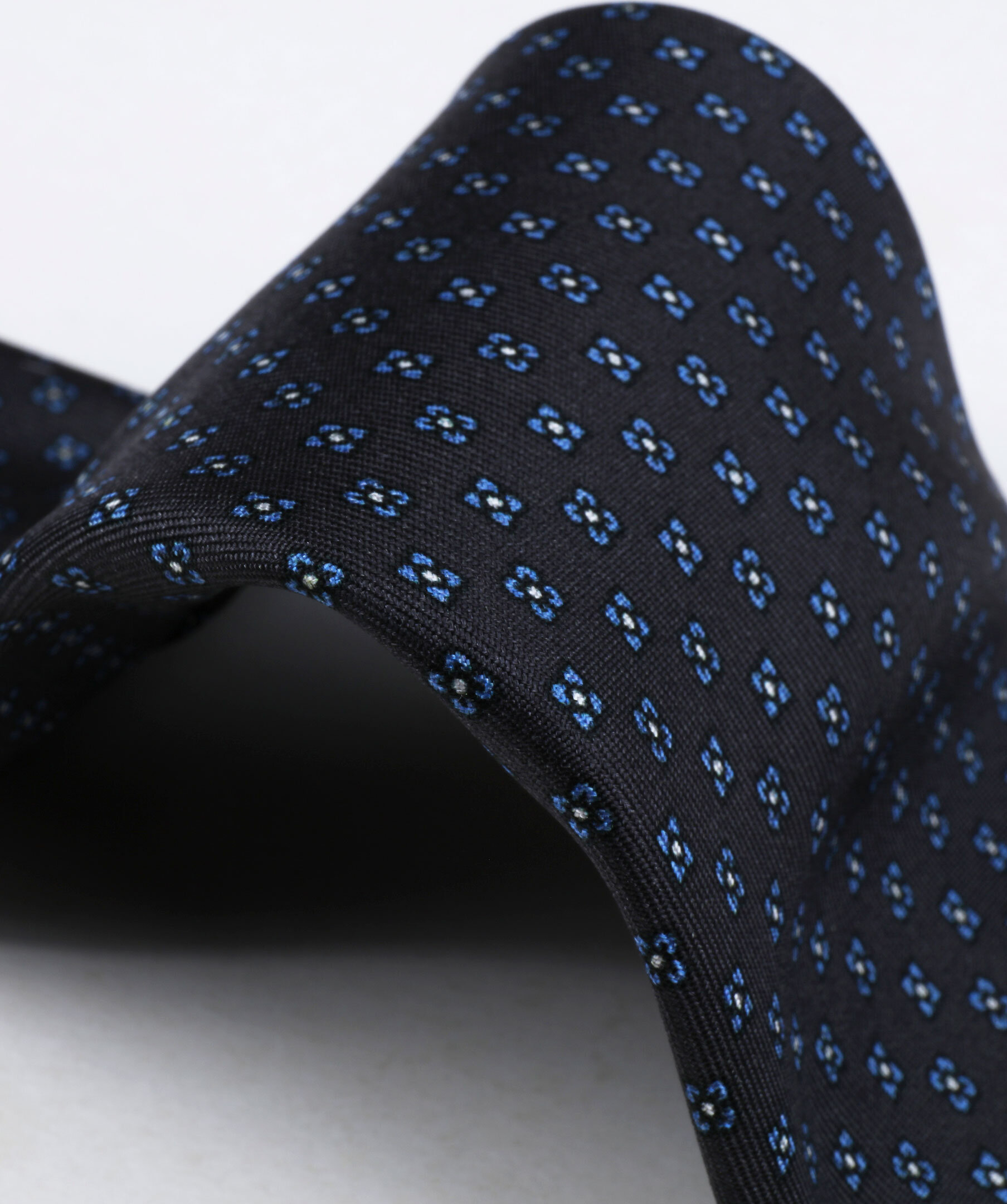 Den här slipsen från Stenströms har en litet blommönster i blått och vitt på en grå bakgrund. Den är tillverkad i Italien av siden med en matt och len yta med precis lagom mycket lyster. Matcha med en blazer och en tunn stickad tröja som är i en av slipsens färger.