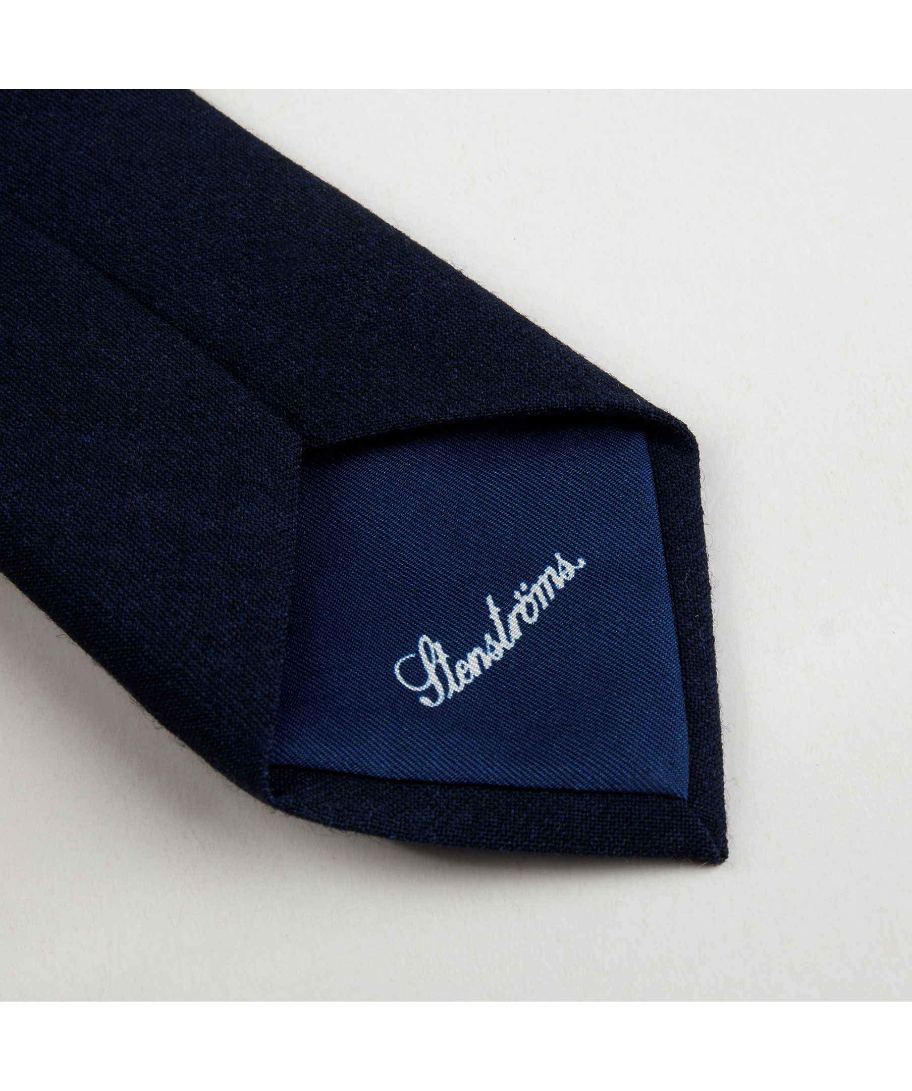 Marinblå ullslips från Stenströms. Marinblått sidenfoder, 7 cm. Tillverkad i 100% ull.