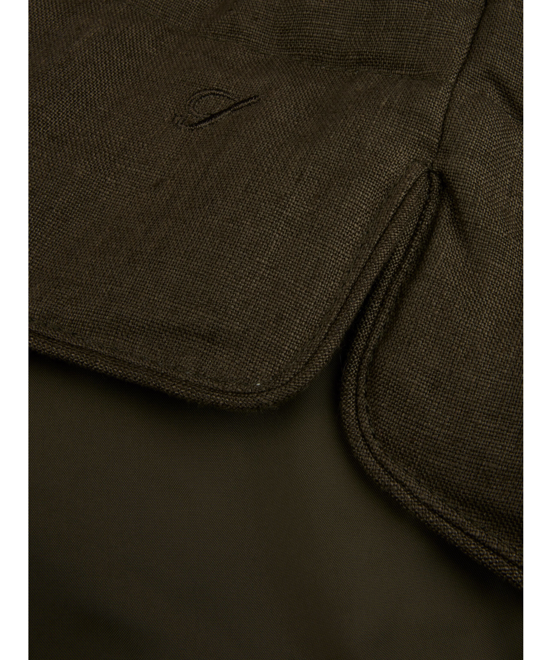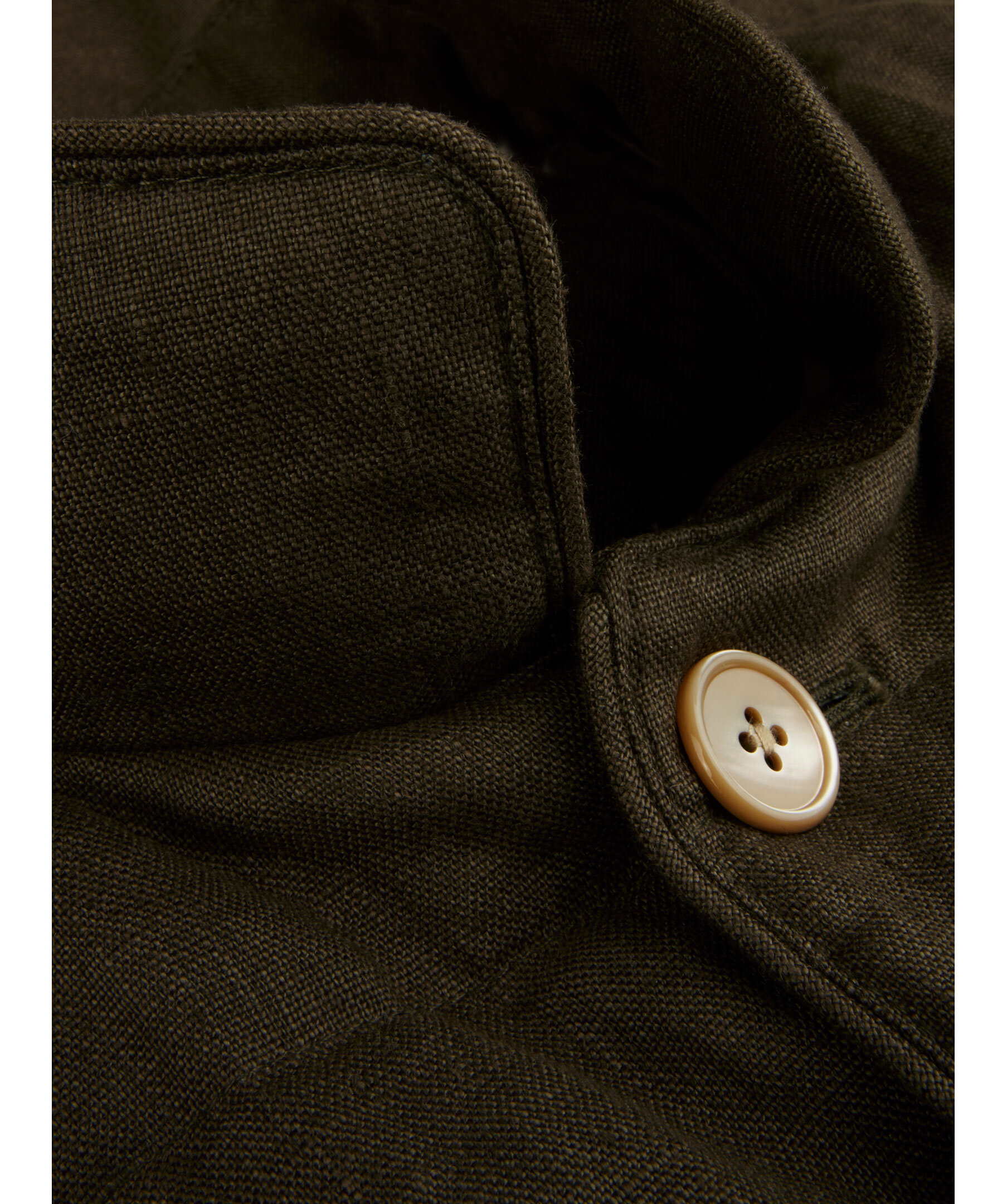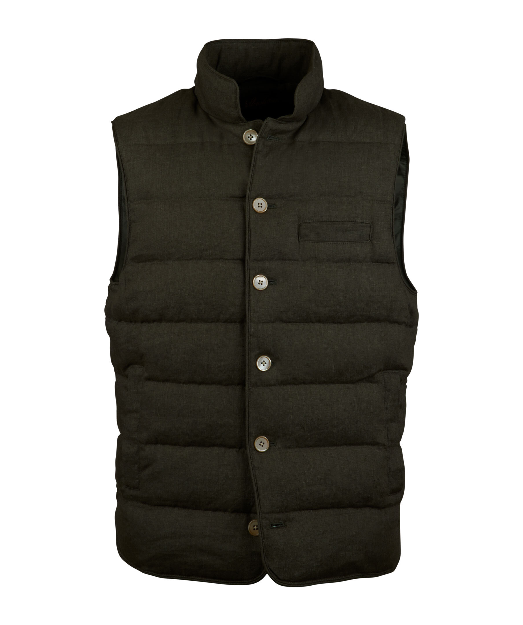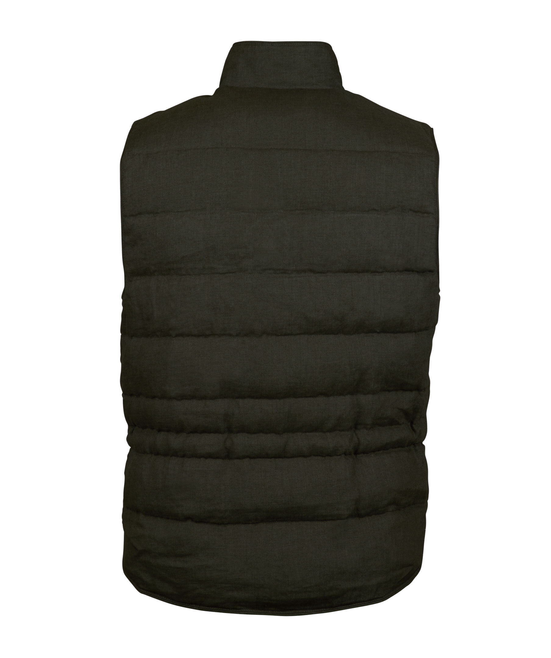 Denna vadderade väst är tillverkad av linne. Västen har pärlemorknappar och två fickor på sidan.