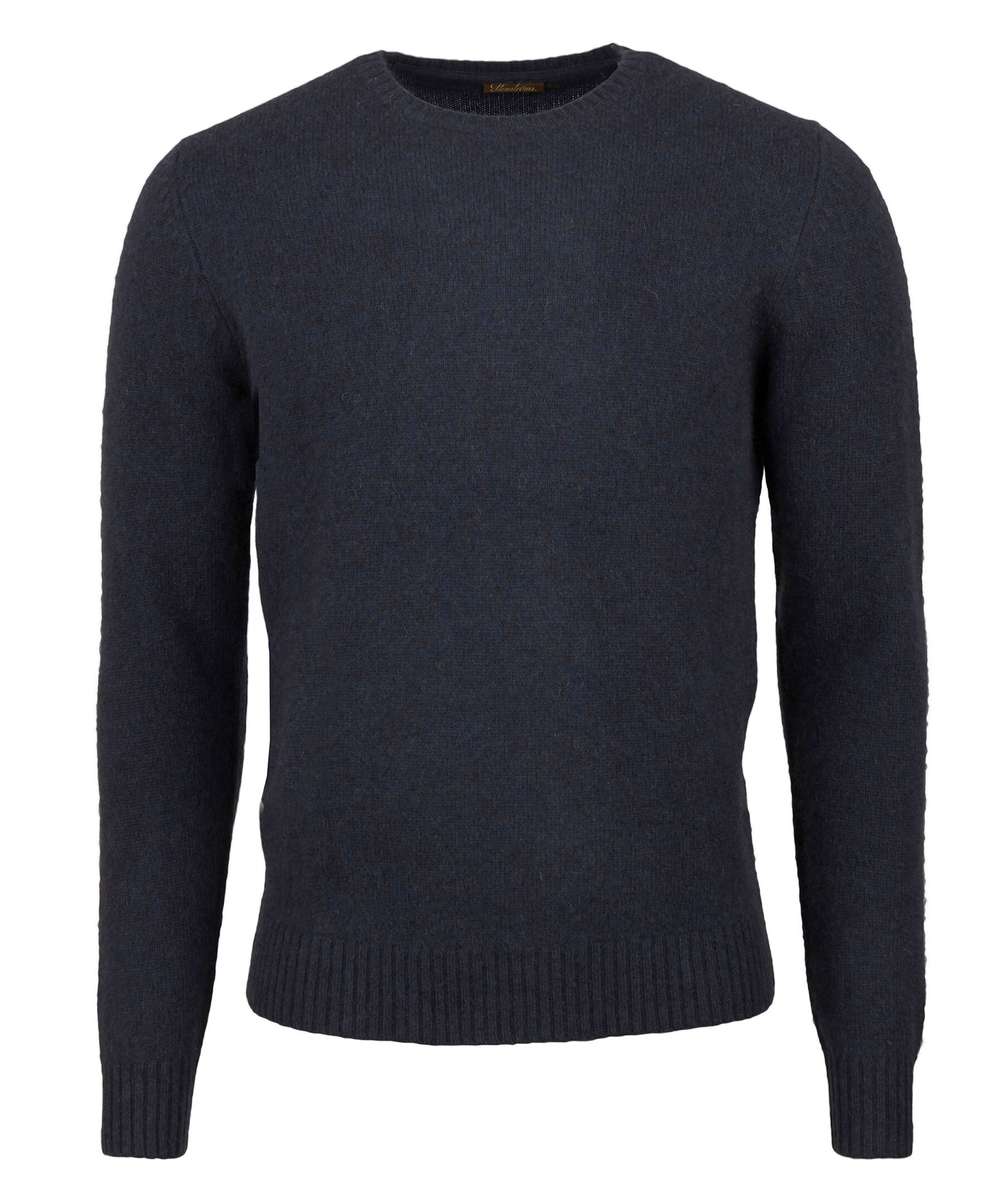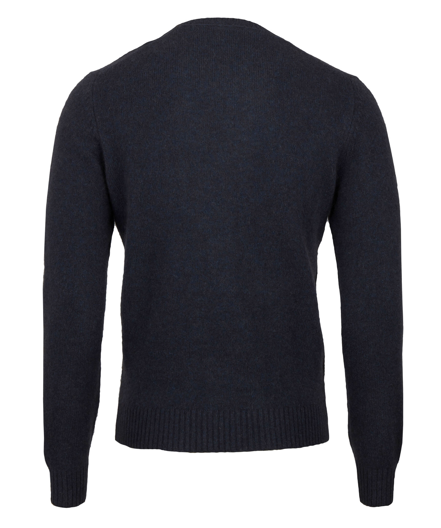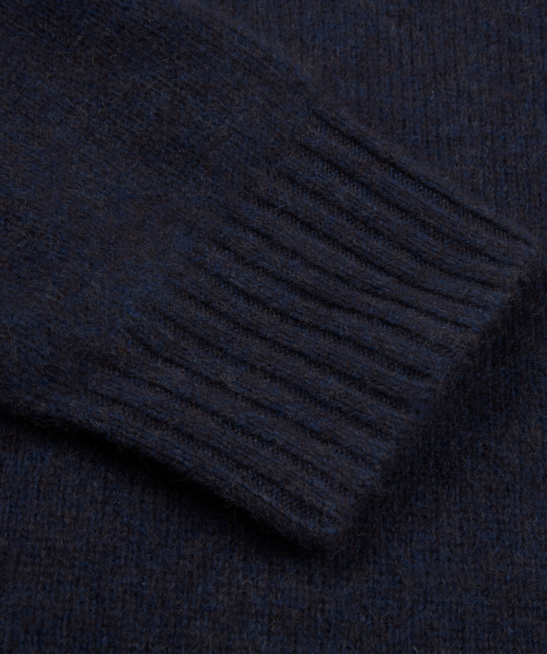Tjockstickad tröja i jak- och merinoblandning. Ribbstickade muddar, hals och plaggslut.
