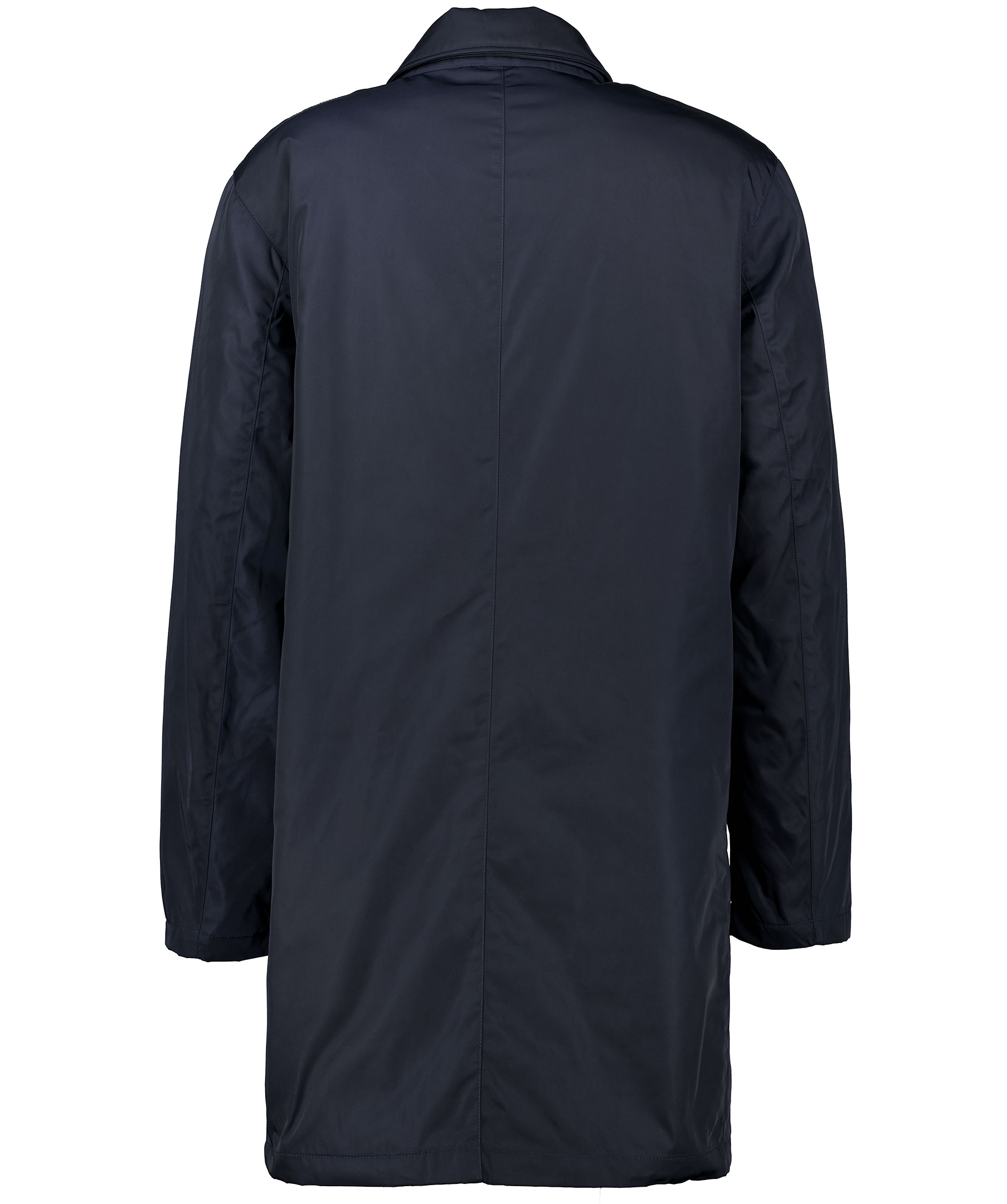 och spetsig krage. Tvåvägsdragkedja och dolda tryckknappar över dragkedjan, har halsspärr med tryckknappstängning. Dolt band framtill, längs med dragkedjan med Tiger of Sweden-logotyp längst ner.