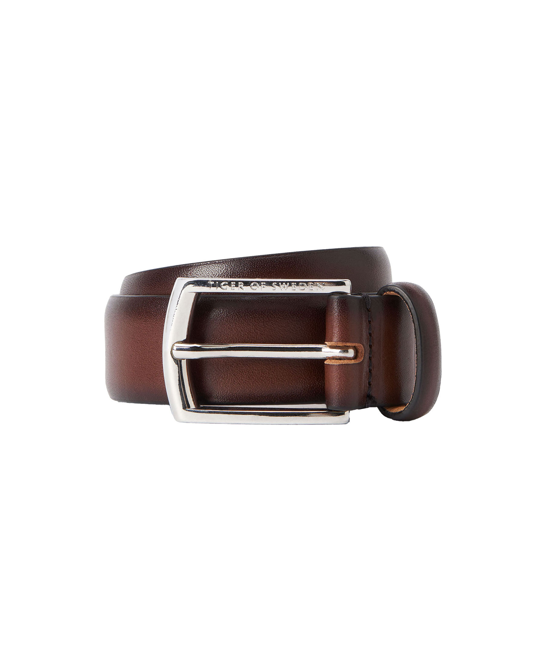 Brunt läderbälte från Tiger of Sweden. Bältet har ett metallspänne med logotyp och är 3 cm brett. Tillverkad i koläder.