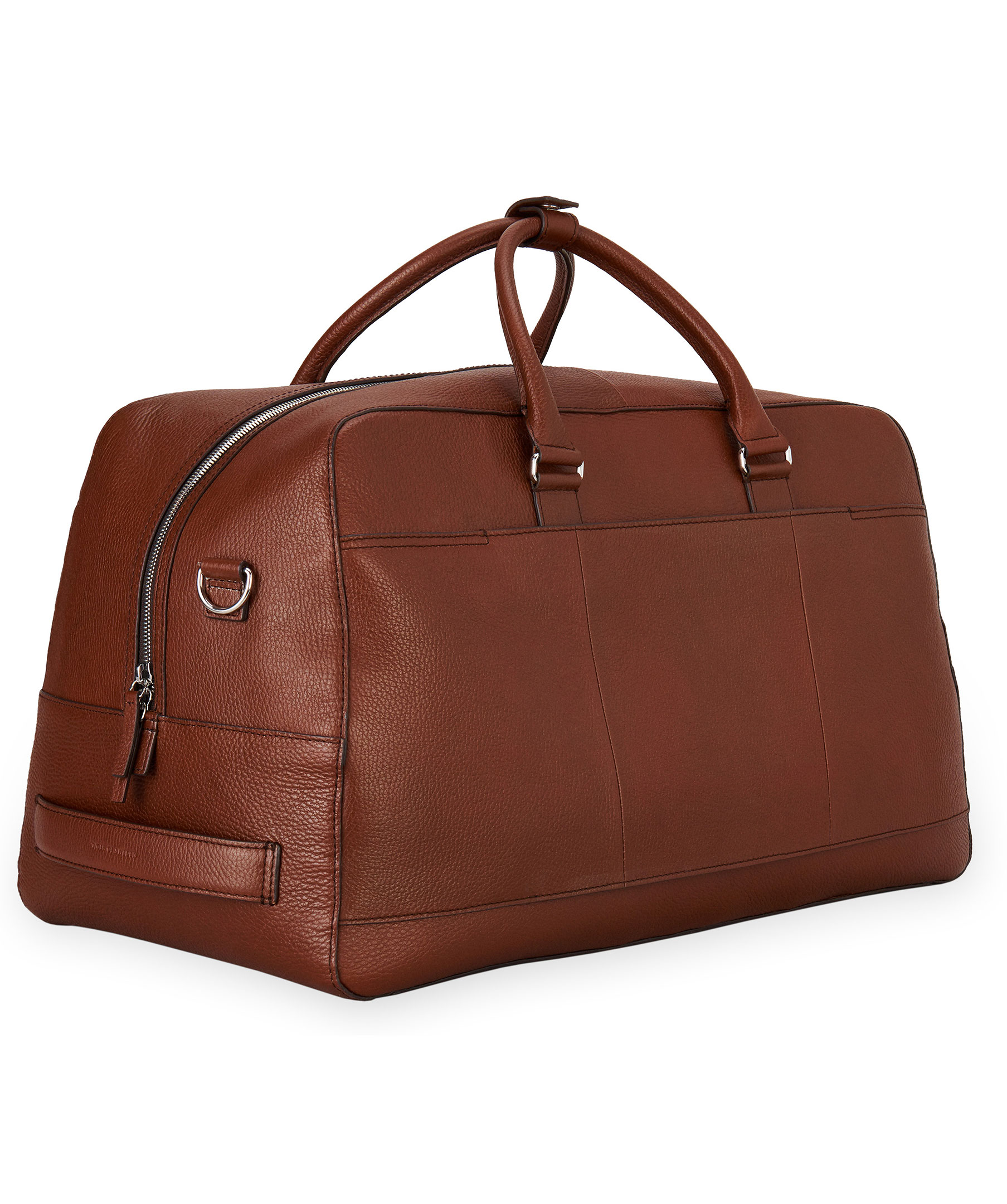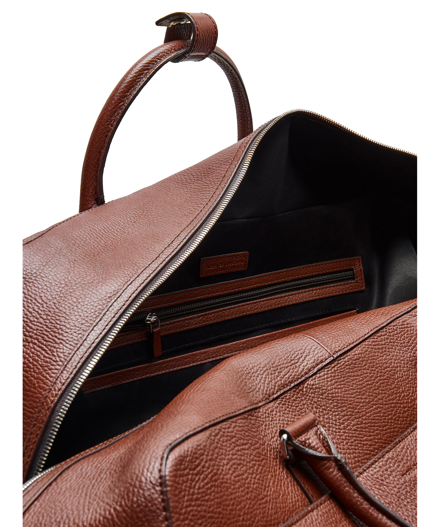 Brun weekendbag från Tiger of Sweden. Stilren design tillverkad i läder. Rymligt mittenfack som stängs med dragkedja. Bärs med handtag eller medföljande axelrem.
