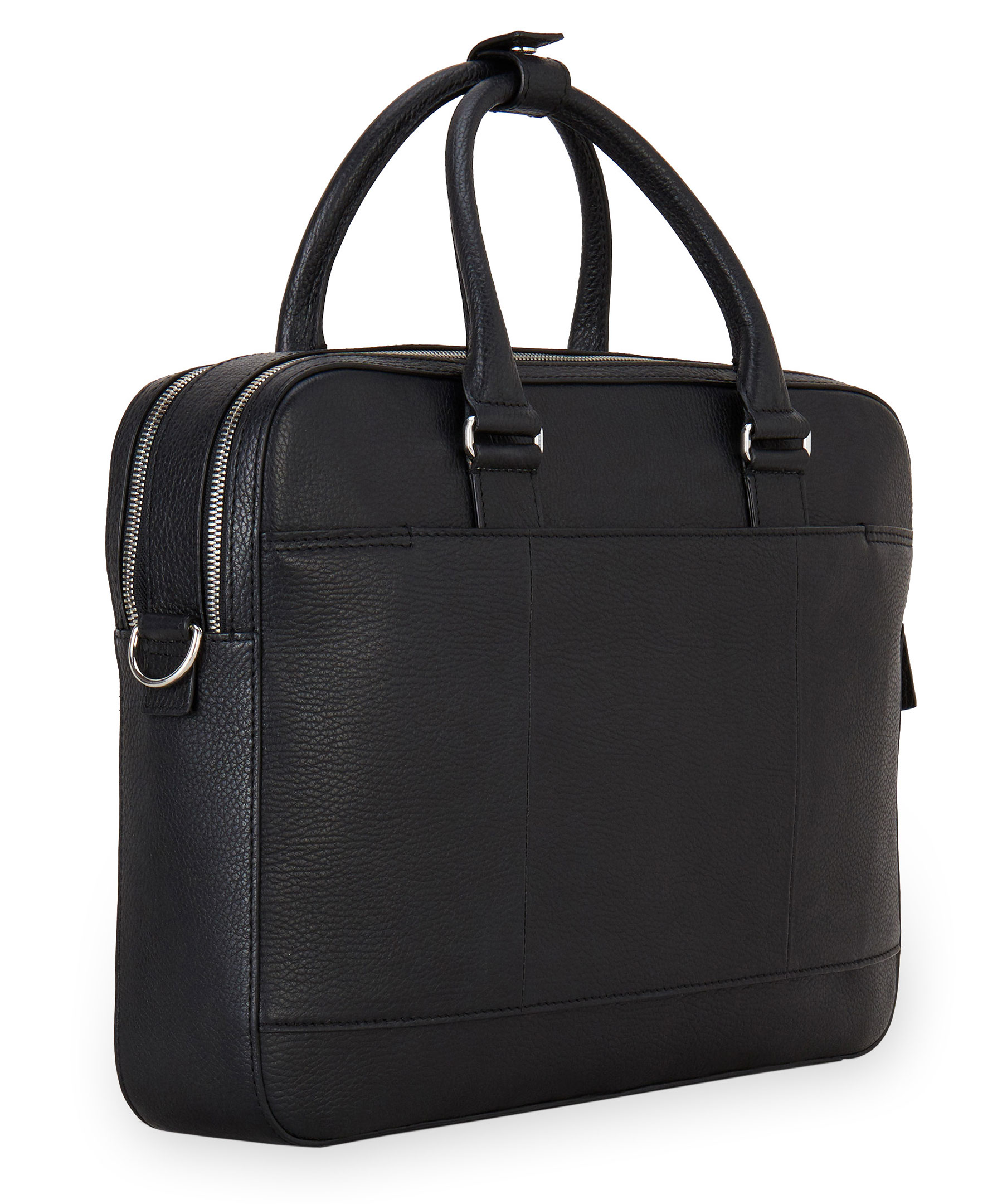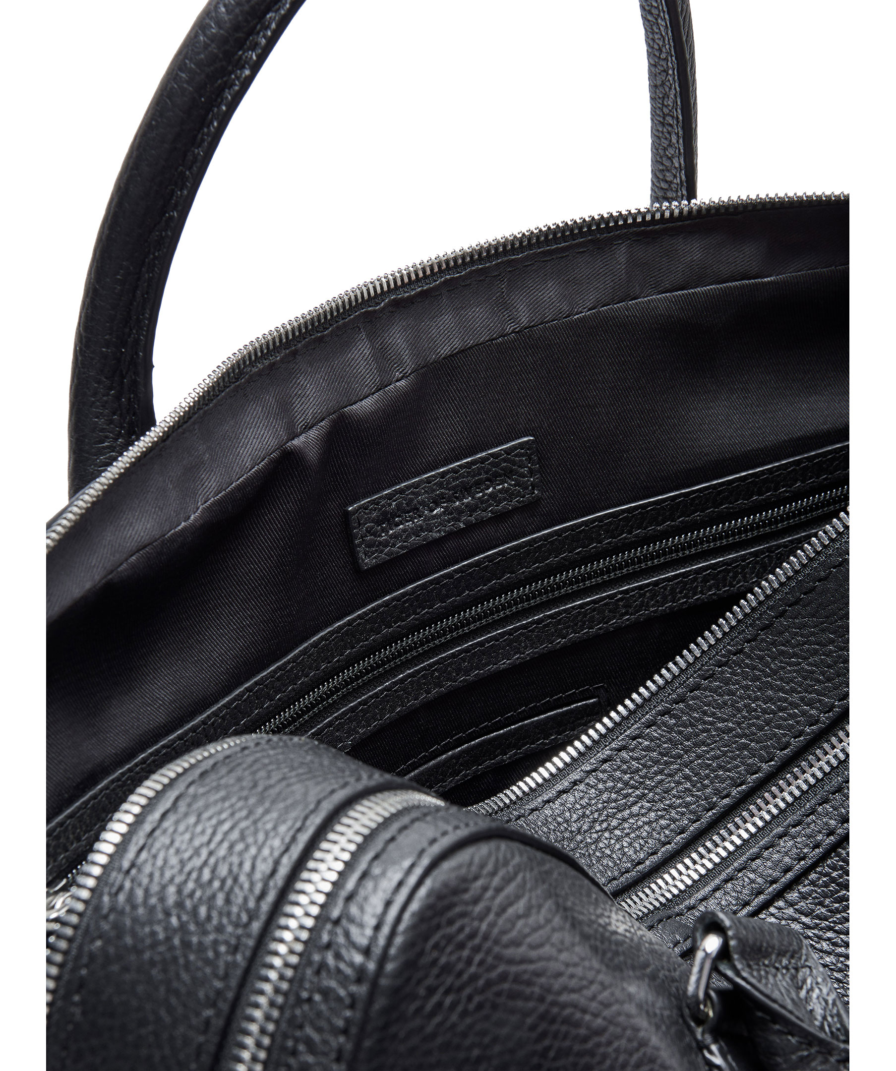 Svart läderportfölj Tiger of Sweden. Stilren design med två rymliga fack som stängs med dragkedja, samt två sidofack. Bärs med handtag eller avtagbar samt ställbar axelrem i läder.
