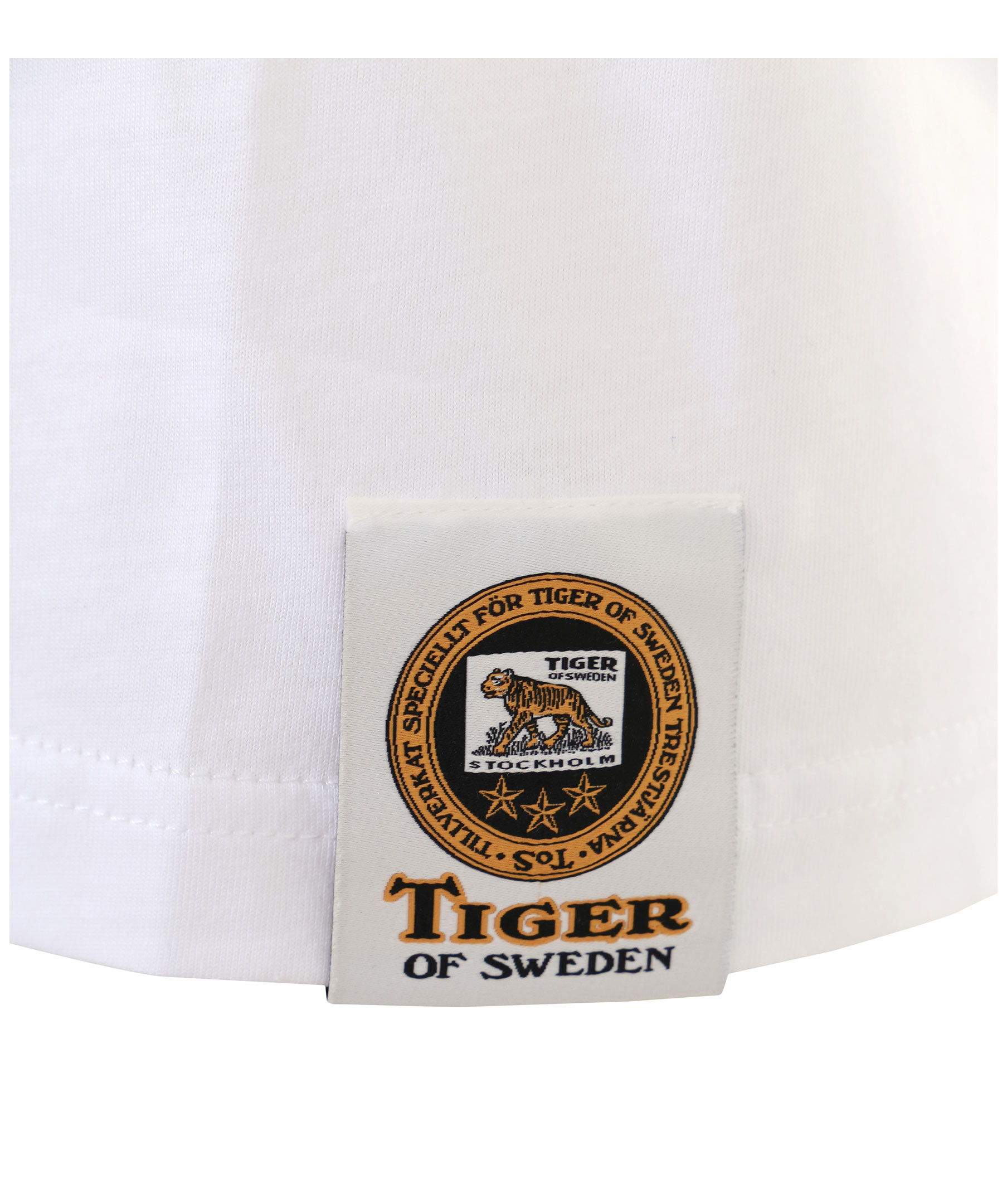 Kortärmad t-shirt i vitt från Tiger of Sweden. Tygpatch med deras arv märke på plaggets nederkant. Tillverkad i mjuk bomull.