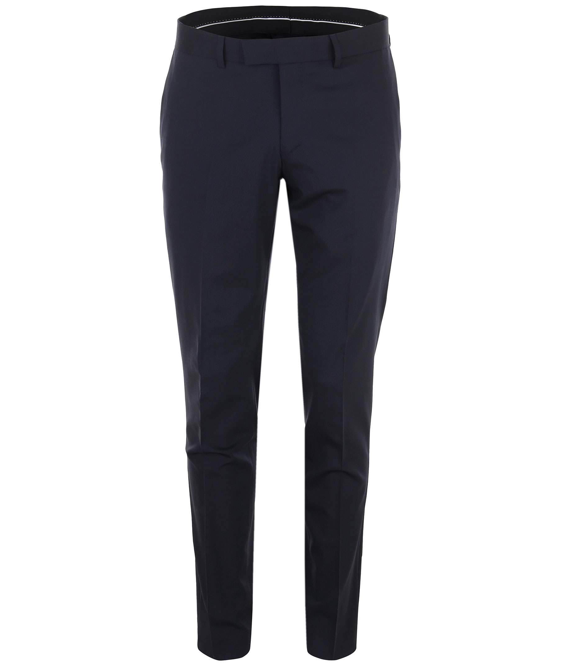 Dressade byxor i mörkblått tillverkade i ullmix från svenska Tiger of Sweden. Byxan har två snedställda fickor fram, två bakfickor med knappstängning samt dold stängning med dragkedja i gylfen.