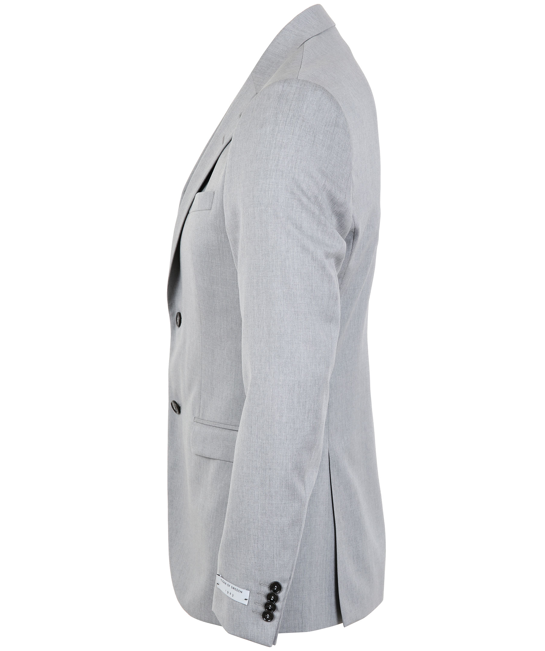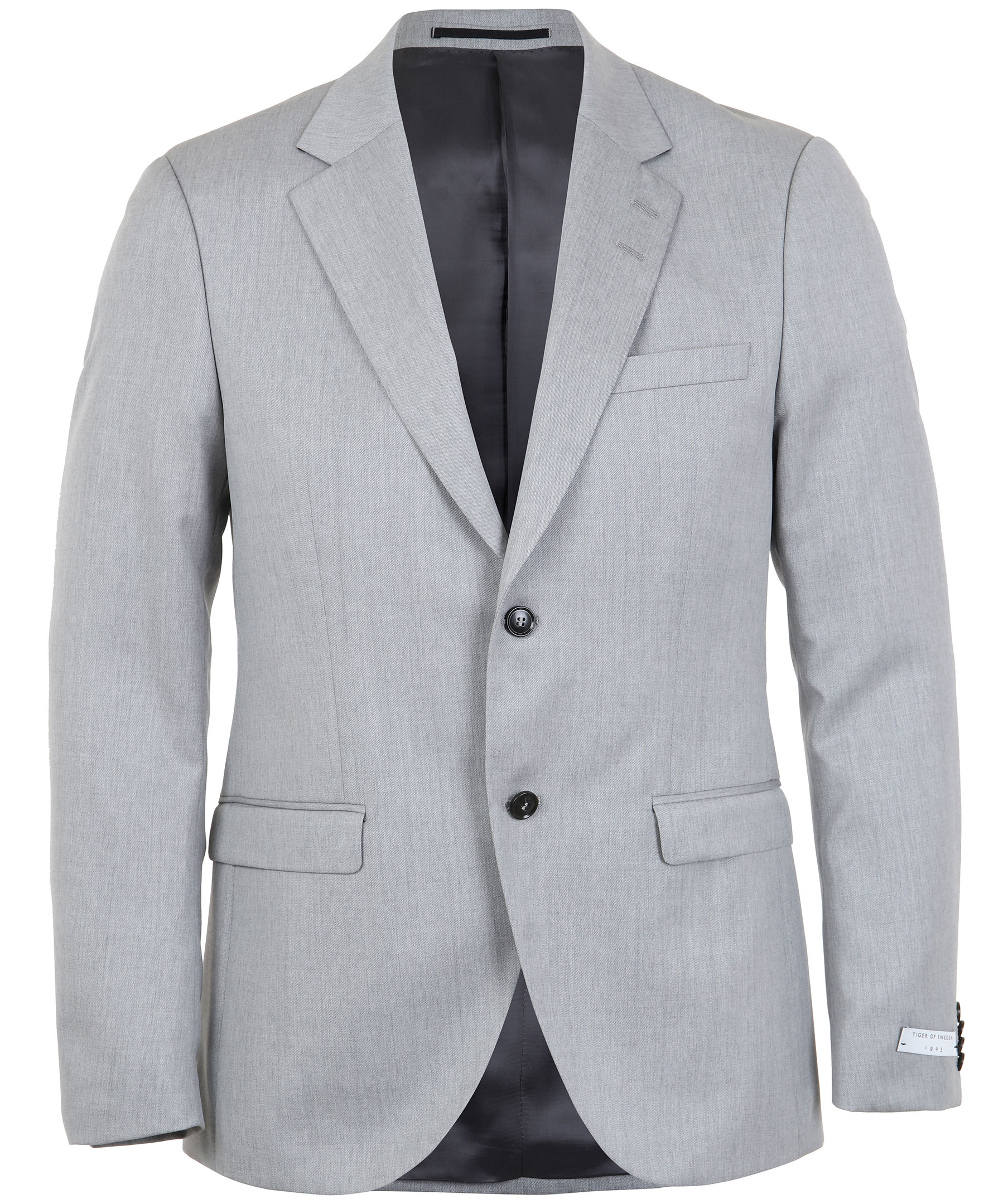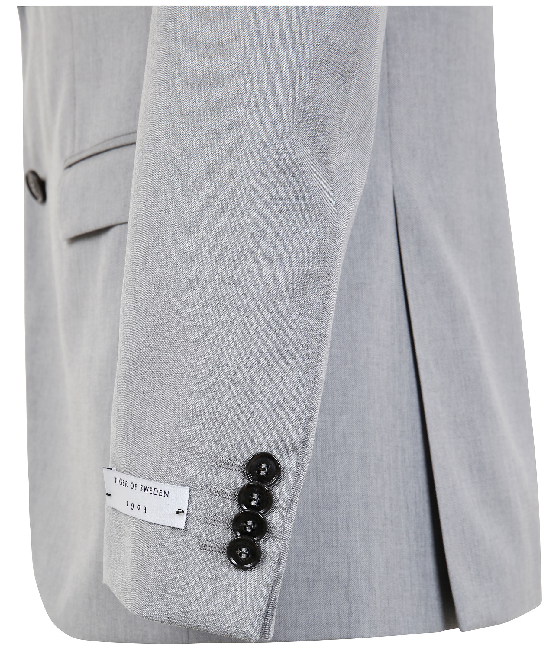 Ljusgrå kavaj från Tiger of Sweden. Trubbiga slag och dubbla sprund. Fickor med lock och bröstficka fram samt innerfickor och biljettficka. Tillverkad i 100% ull.