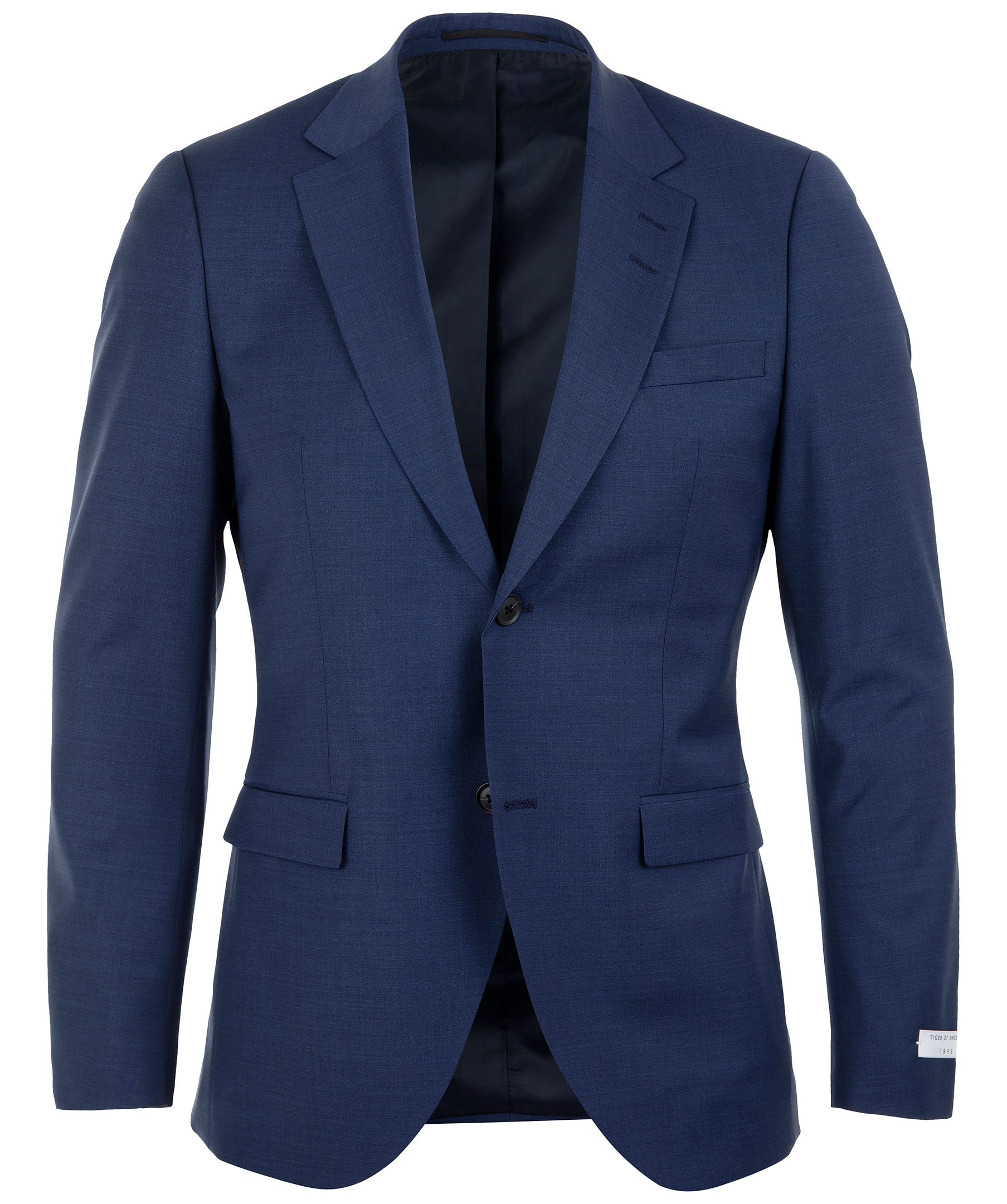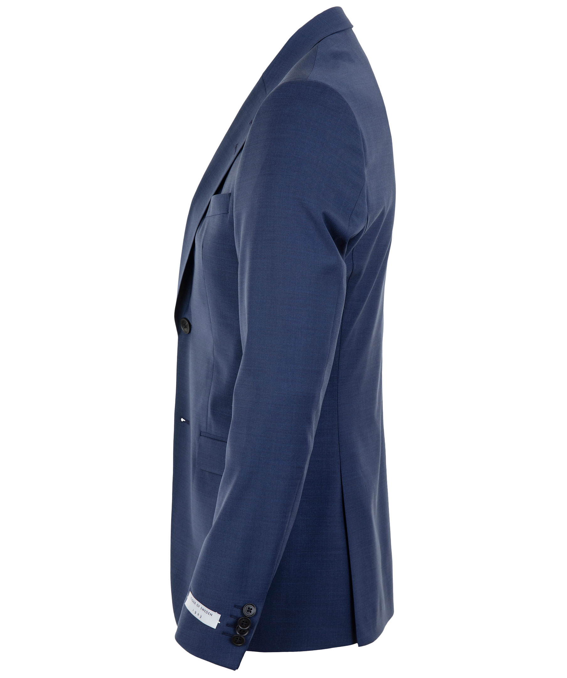 Blå kavaj från Tiger of Sweden. Trubbiga slag och dubbla sprund. Fickor med lock och bröstficka fram samt innerfickor och biljettficka. Tillverkad i stretchig ull.