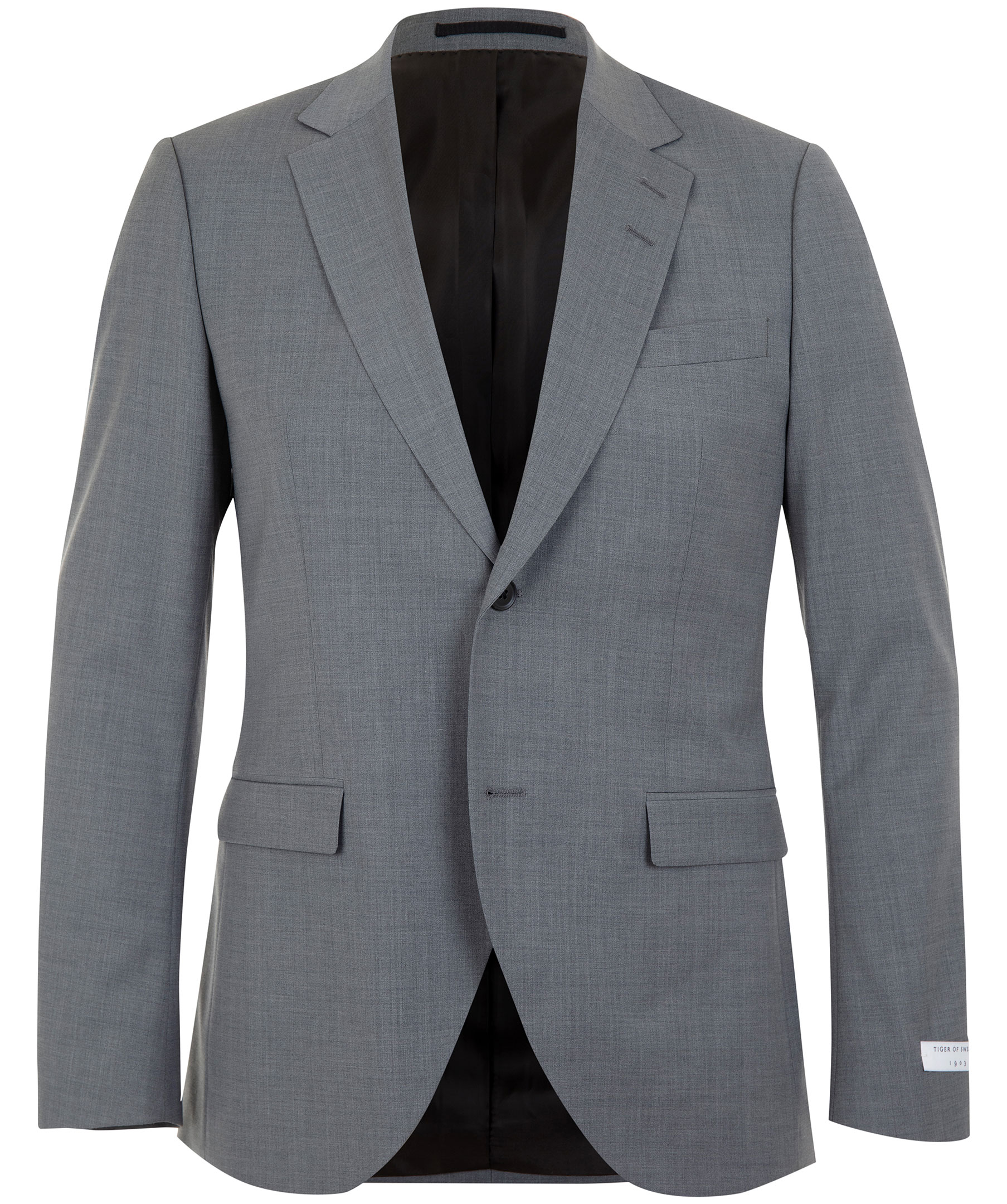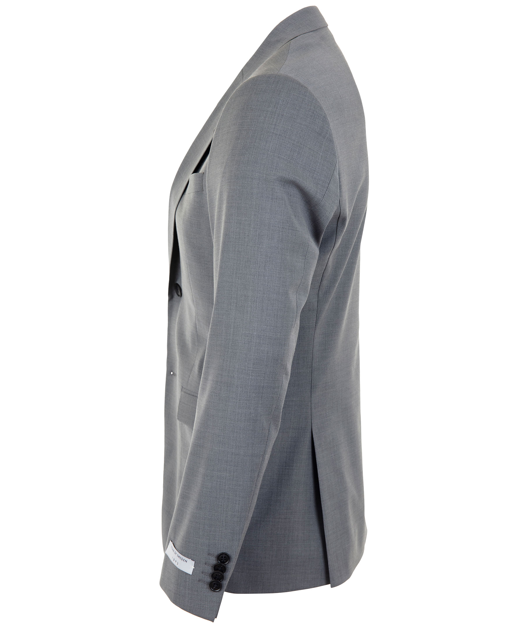 Ljusgrå kavaj från Tiger of Sweden. Trubbiga slag och dubbla sprund. Fickor med lock och bröstficka fram samt innerfickor och biljettficka. Tillverkad i stretchig ull.