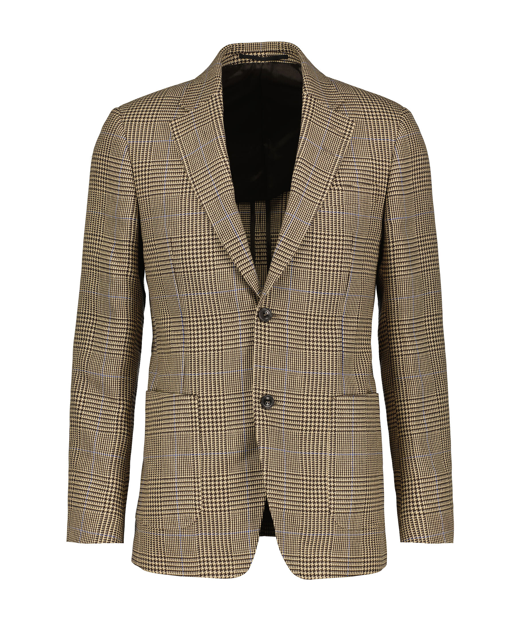 Brun och beige rutig kavaj från Tiger of Sweden. Kavajen stängs med två knappar framtill och har två fickor, en bröstficka, två innerfickor samt dubbelt sprund baktill. Tillverkad i en bomull- och linblandning med foder i viskos.