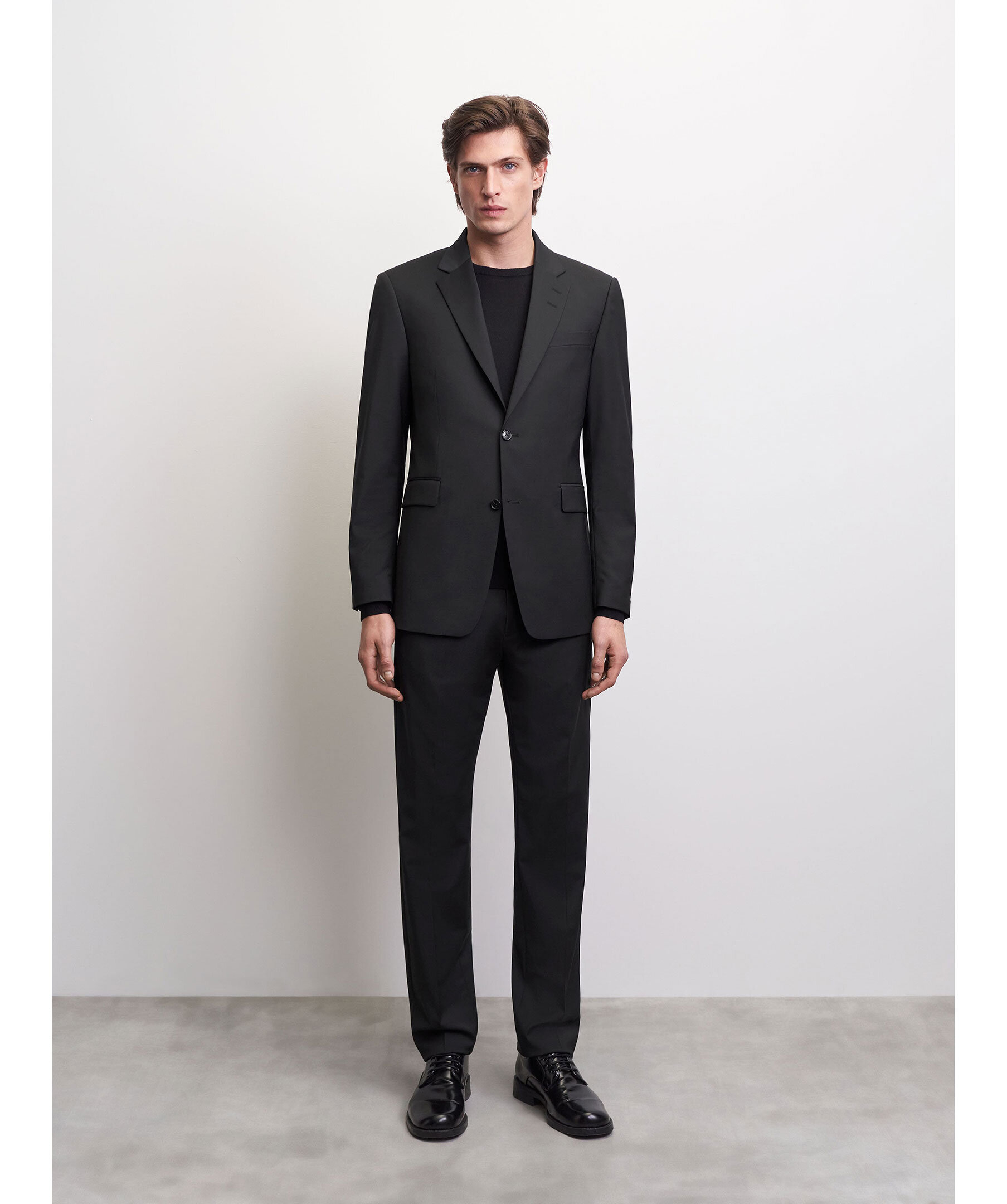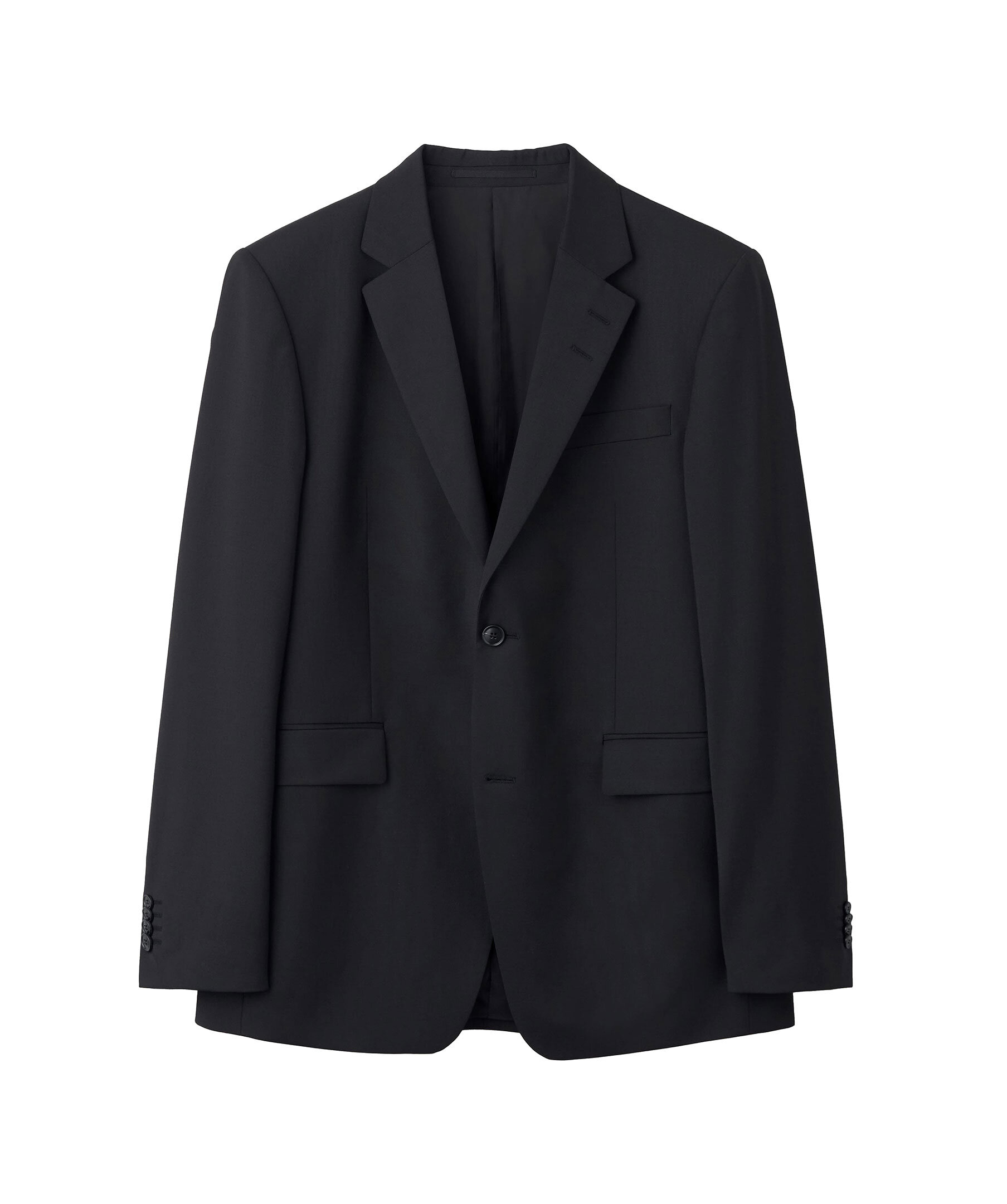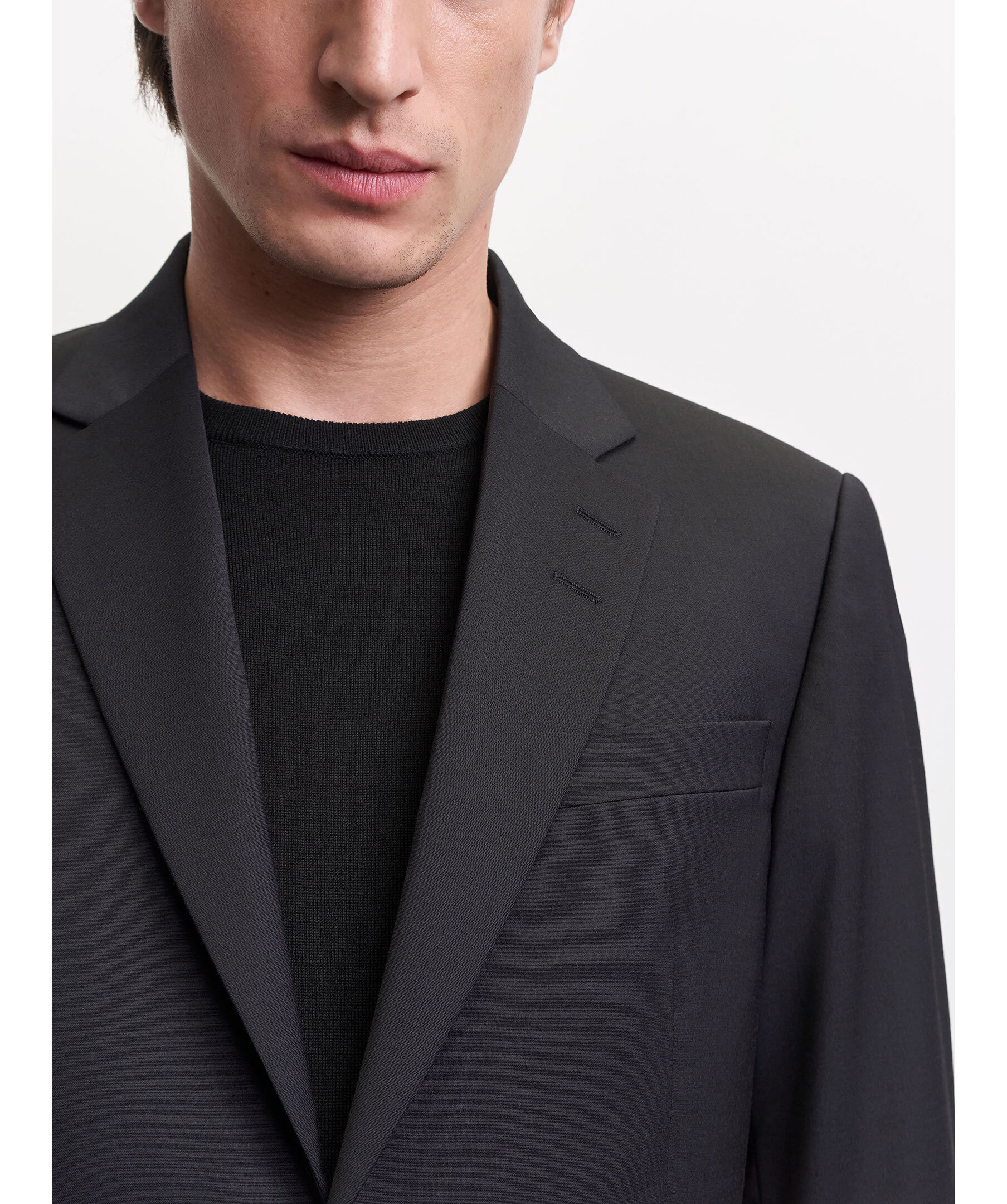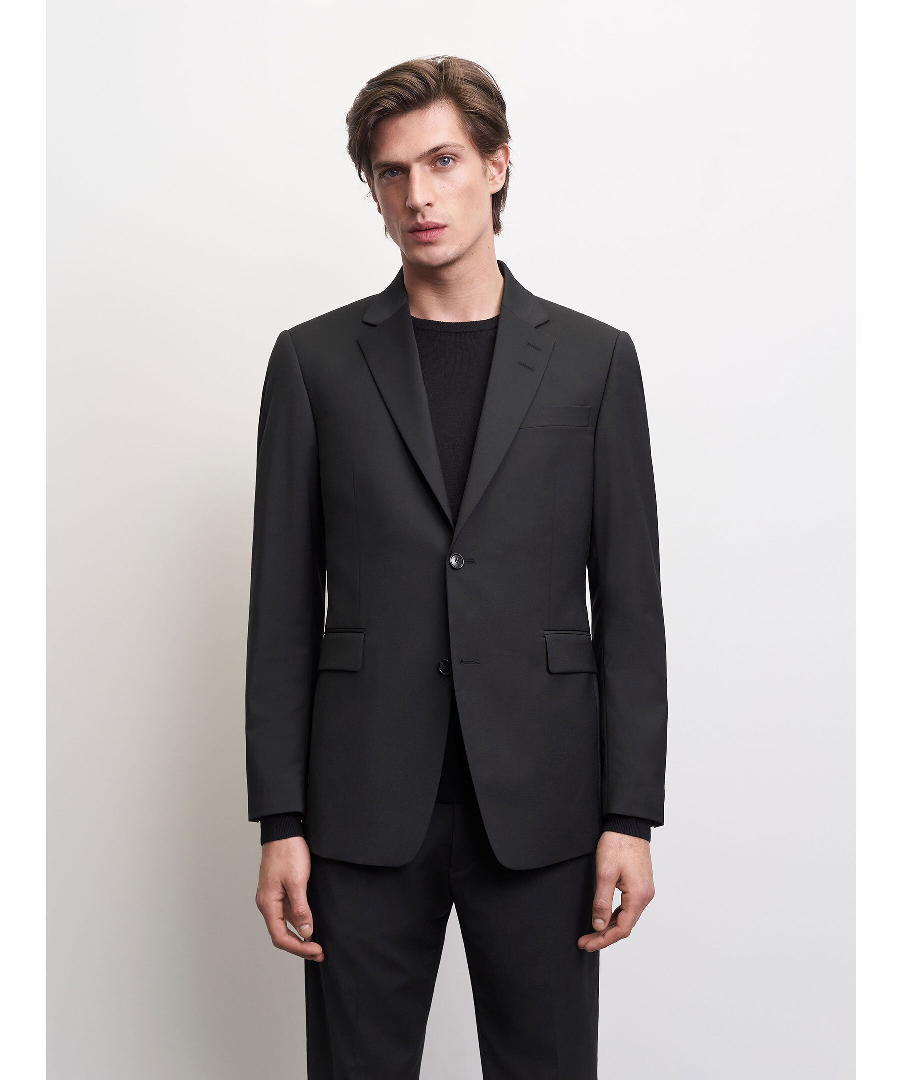 Svart kavaj i återvunnen, slätvävd polyester- och ullblandning från Tiger of Sweden. Breda slag med AMF-sömmar. Stängs med två knappar. Mjukt axelparti, överlappande manschettknappar och sidoslitsar baktill. Normal passform.
