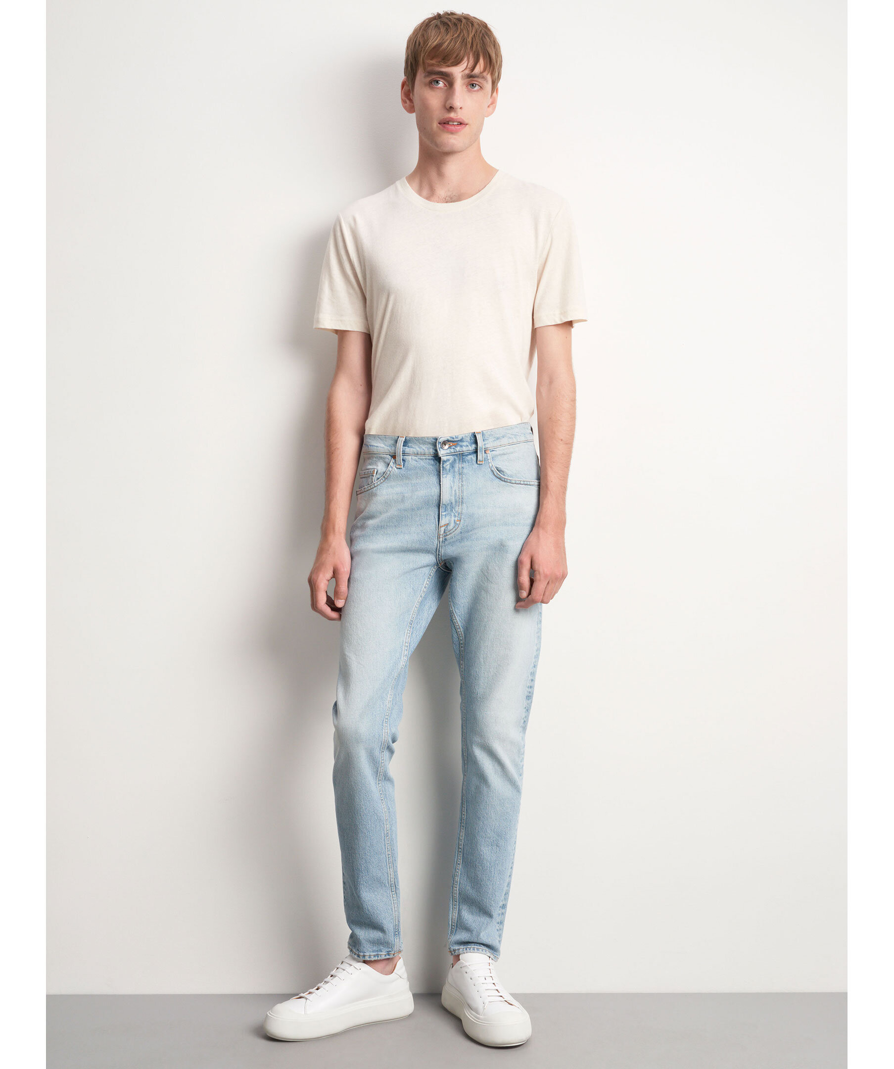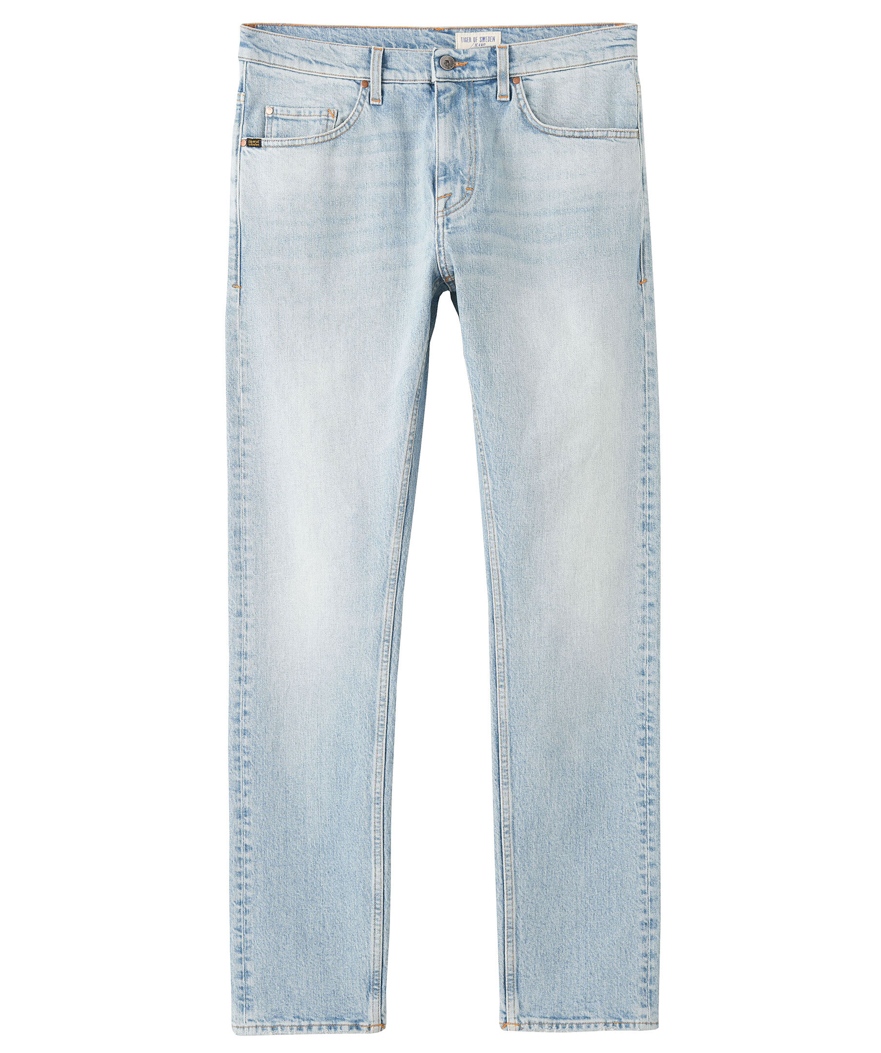 Ljusblåjeans från Tiger of Sweden. Modell med medelhög midja, avslappnad passform och avsmalnande ben. Stängs med dragkedja i gylfen, har fem fickor och hällor för bälte i midjan.