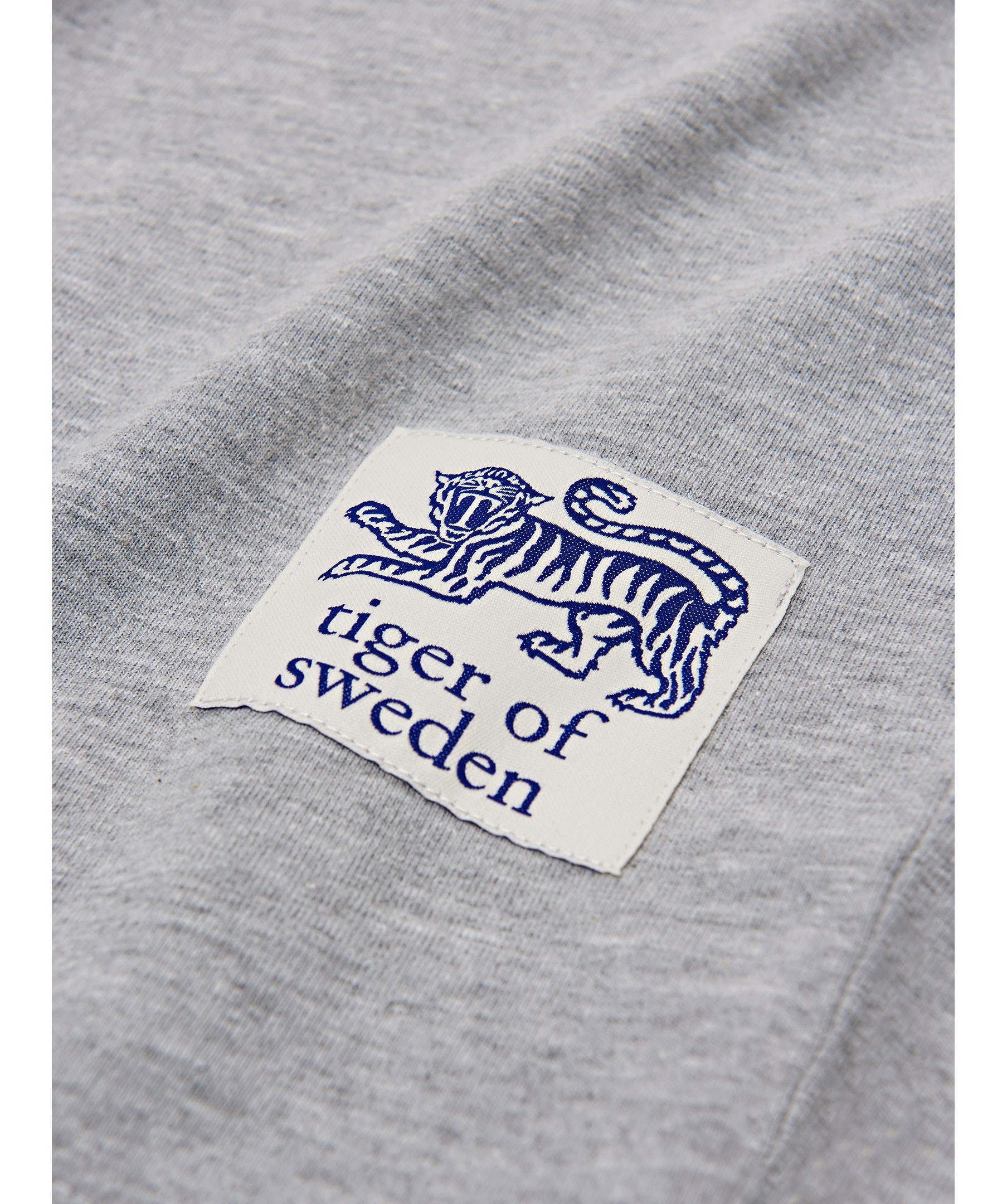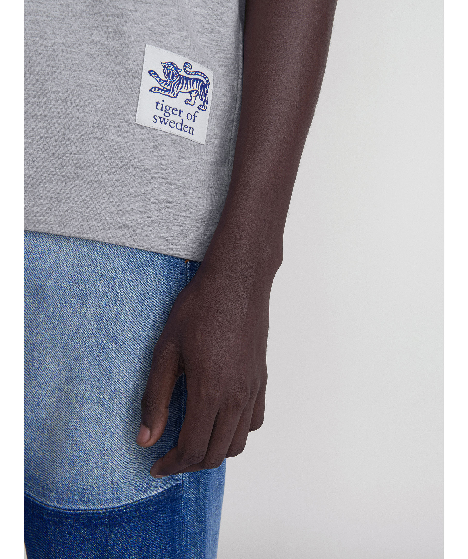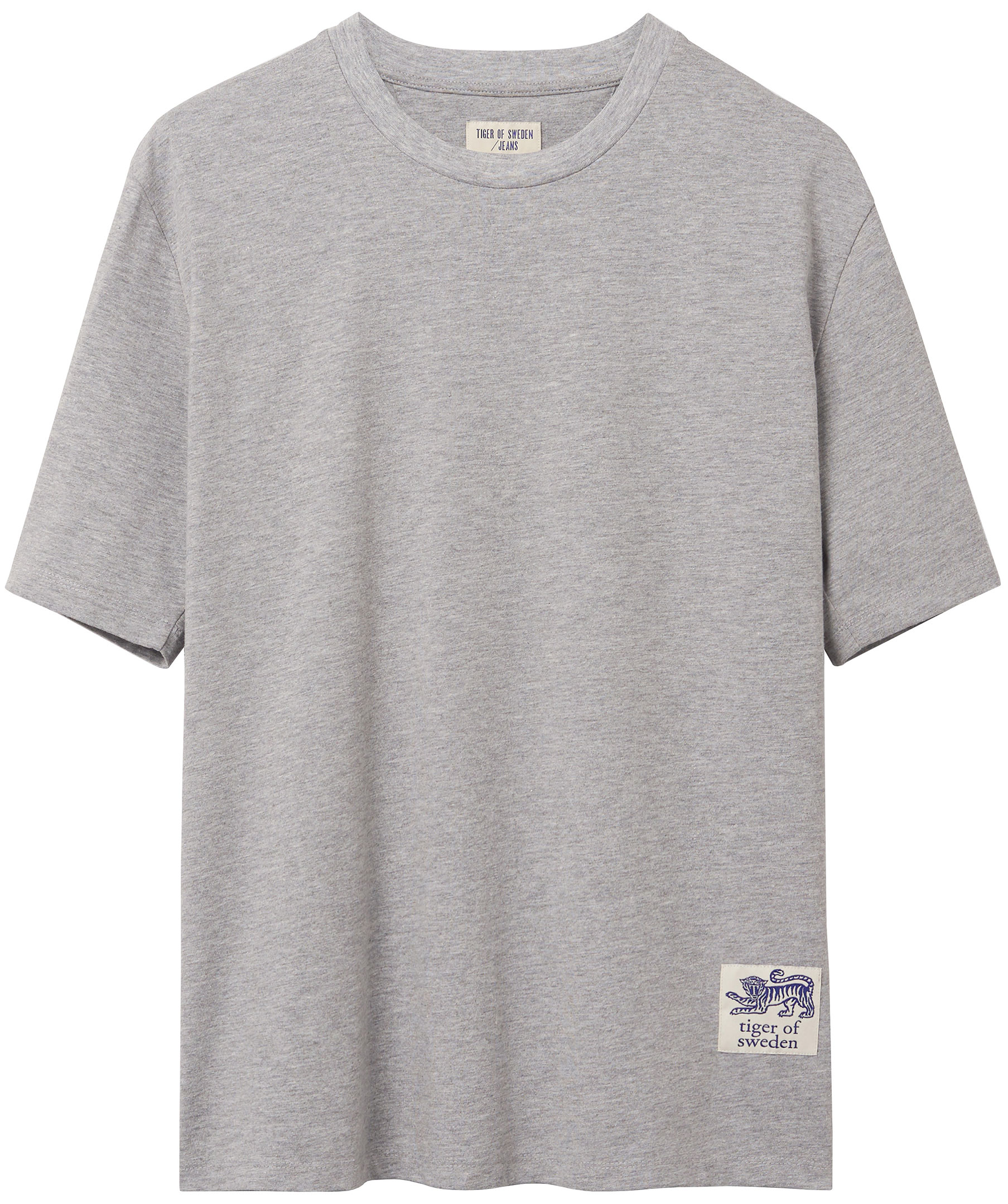 Grå bomulls T-shirt från Tiger Of Sweden / Jeans. Rundad halsringning, avslappnad passform och korta ärmar. Broderad logotyp på vänster höft. Gjord i 100% Bomull.