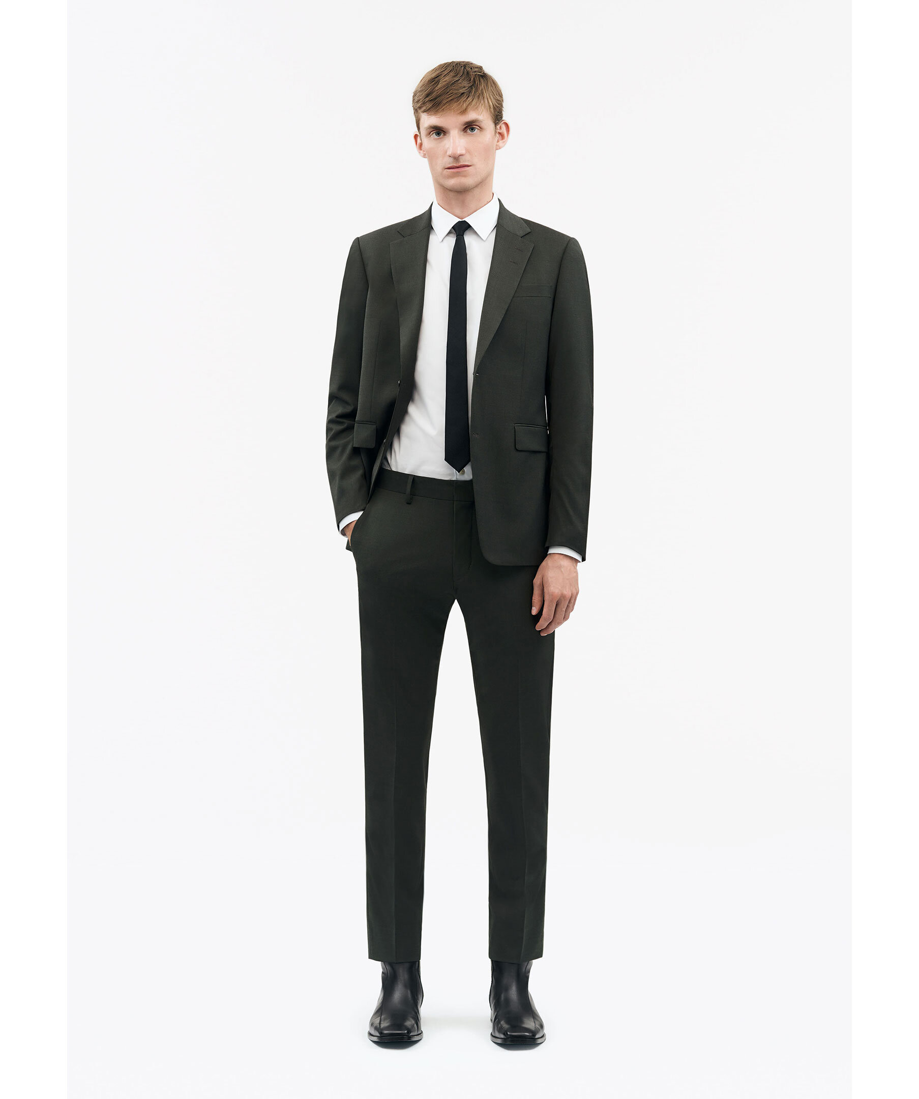 Mörkgröna kostymbyxor från Tiger of Sweden. Byxorna har en smal passform med smala ben, de är midjehöga och tillverkade av en polyester blandning.