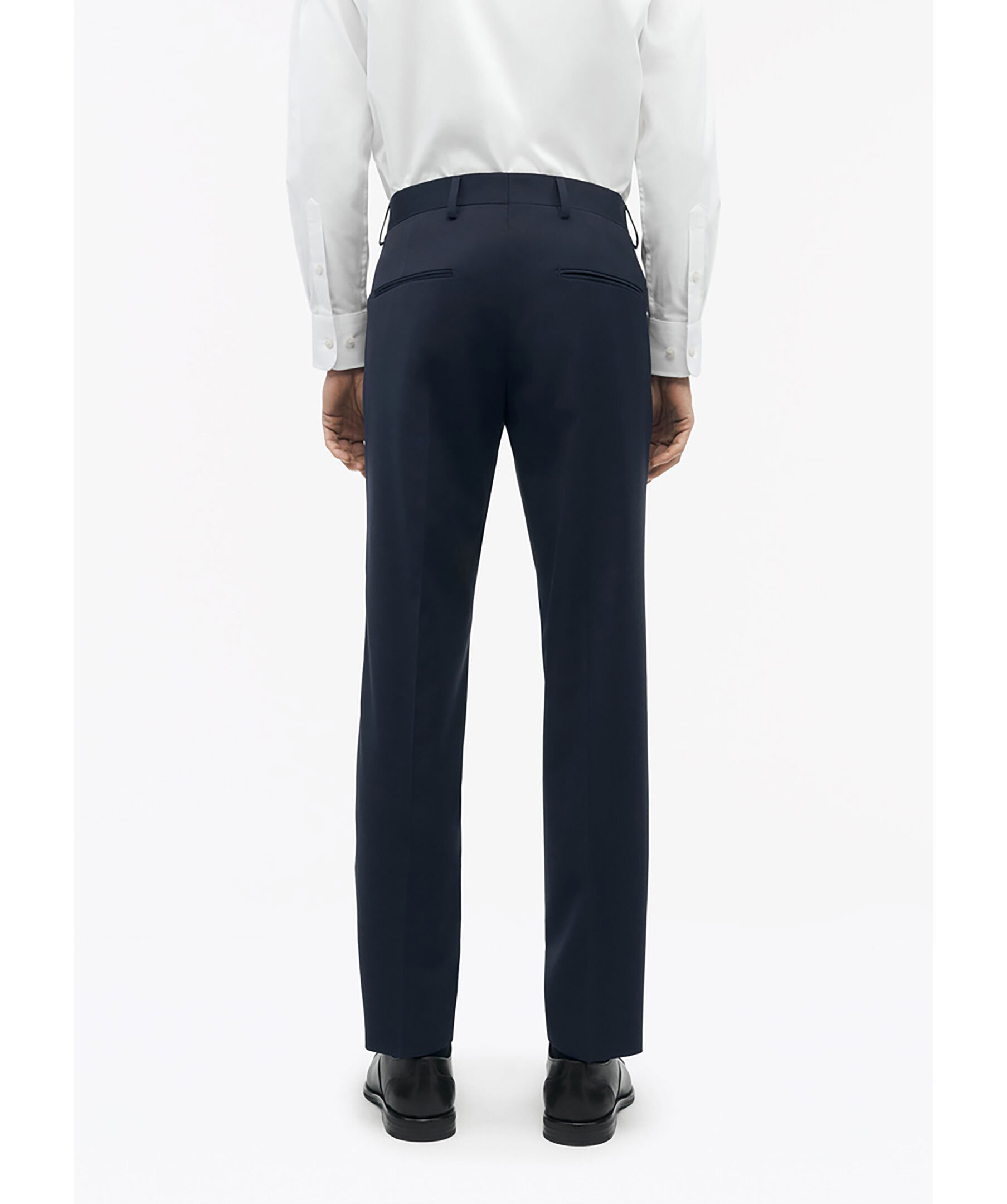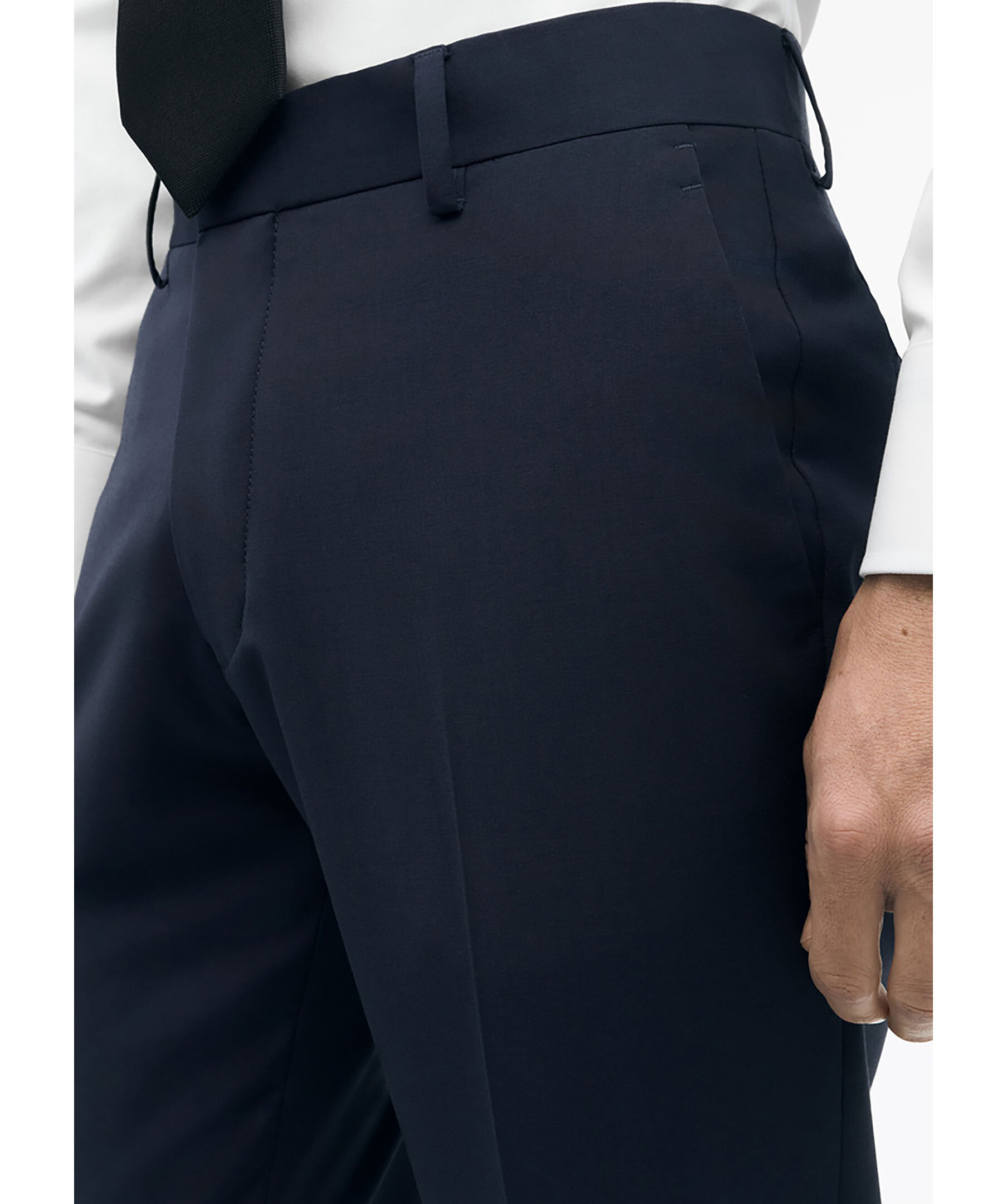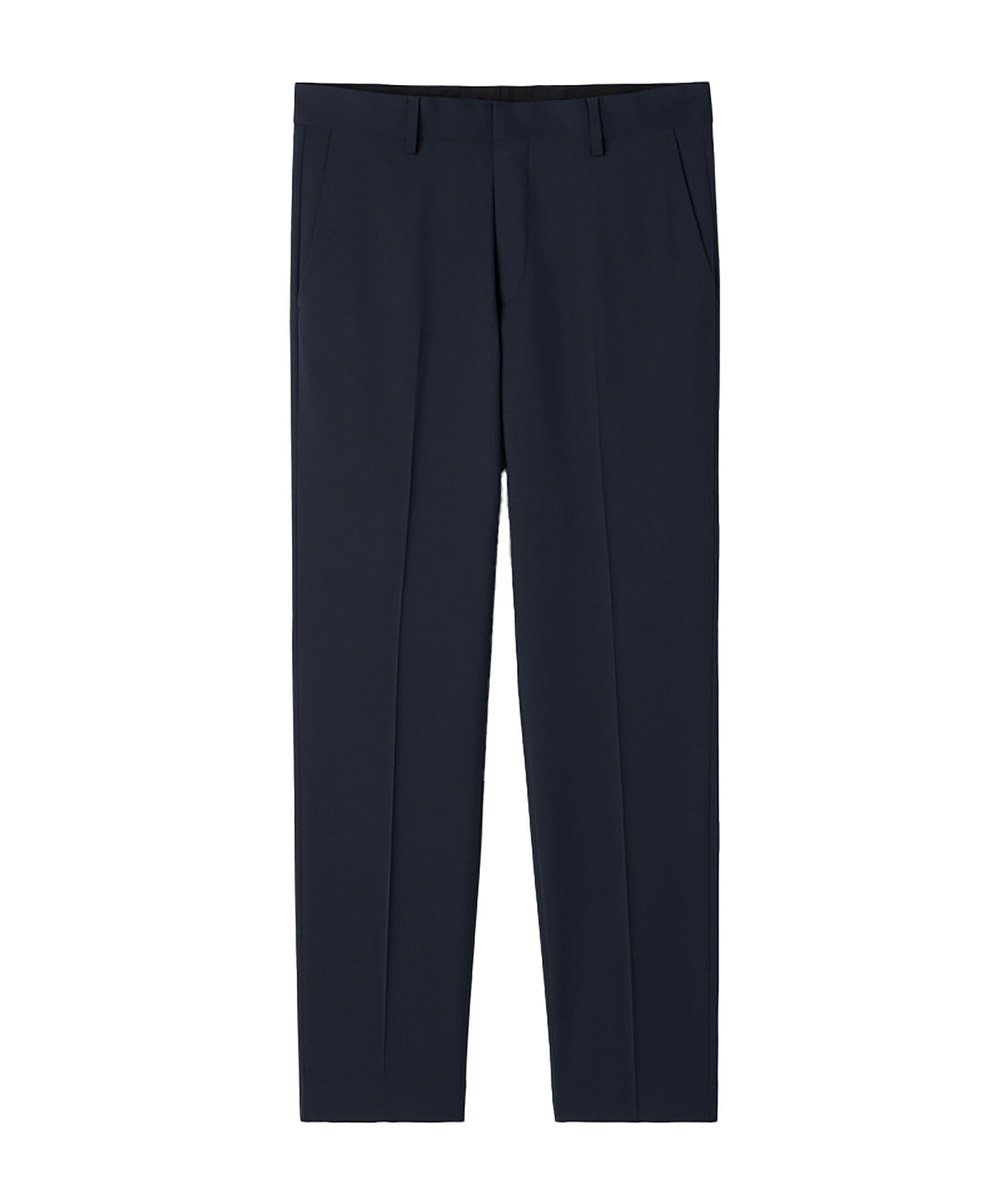 Mörkblåa kostymbyxor från Tiger of Sweden. Byxorna har en smal passform med smala ben, de är midjehöga och tillverkade av en polyester blandning.