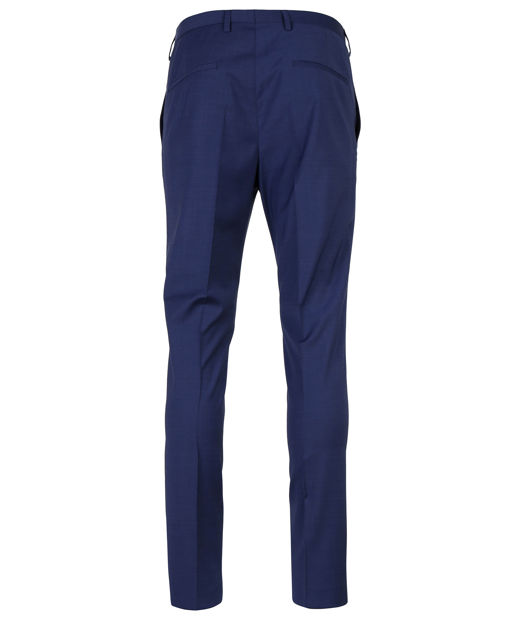 Blå dressad byxa från Tiger of Sweden i ullmix. Byxan har två framfickor fram samt två bakfickor med knappstängning. Gylfen stängs med dragkedja samt dold hake.