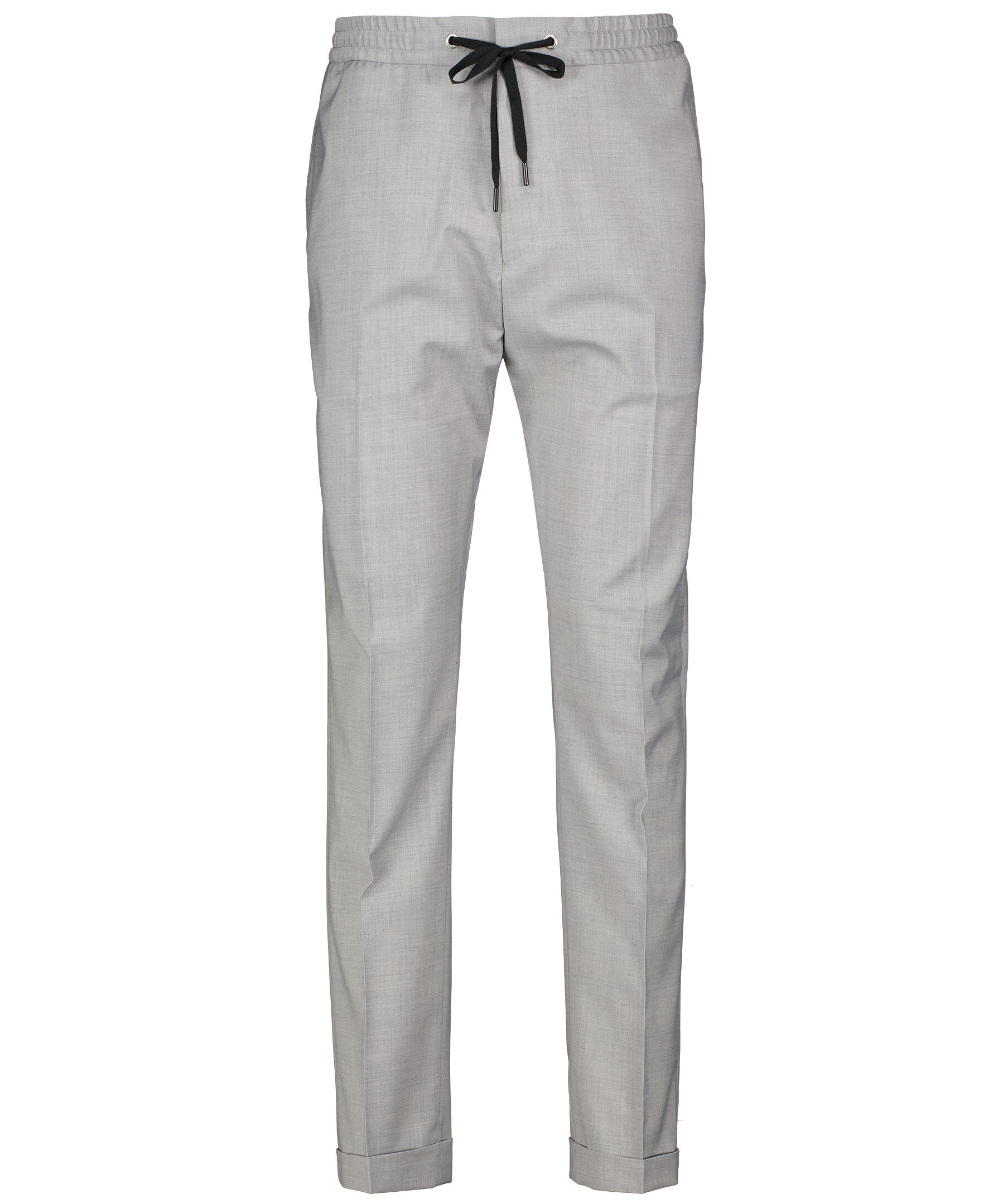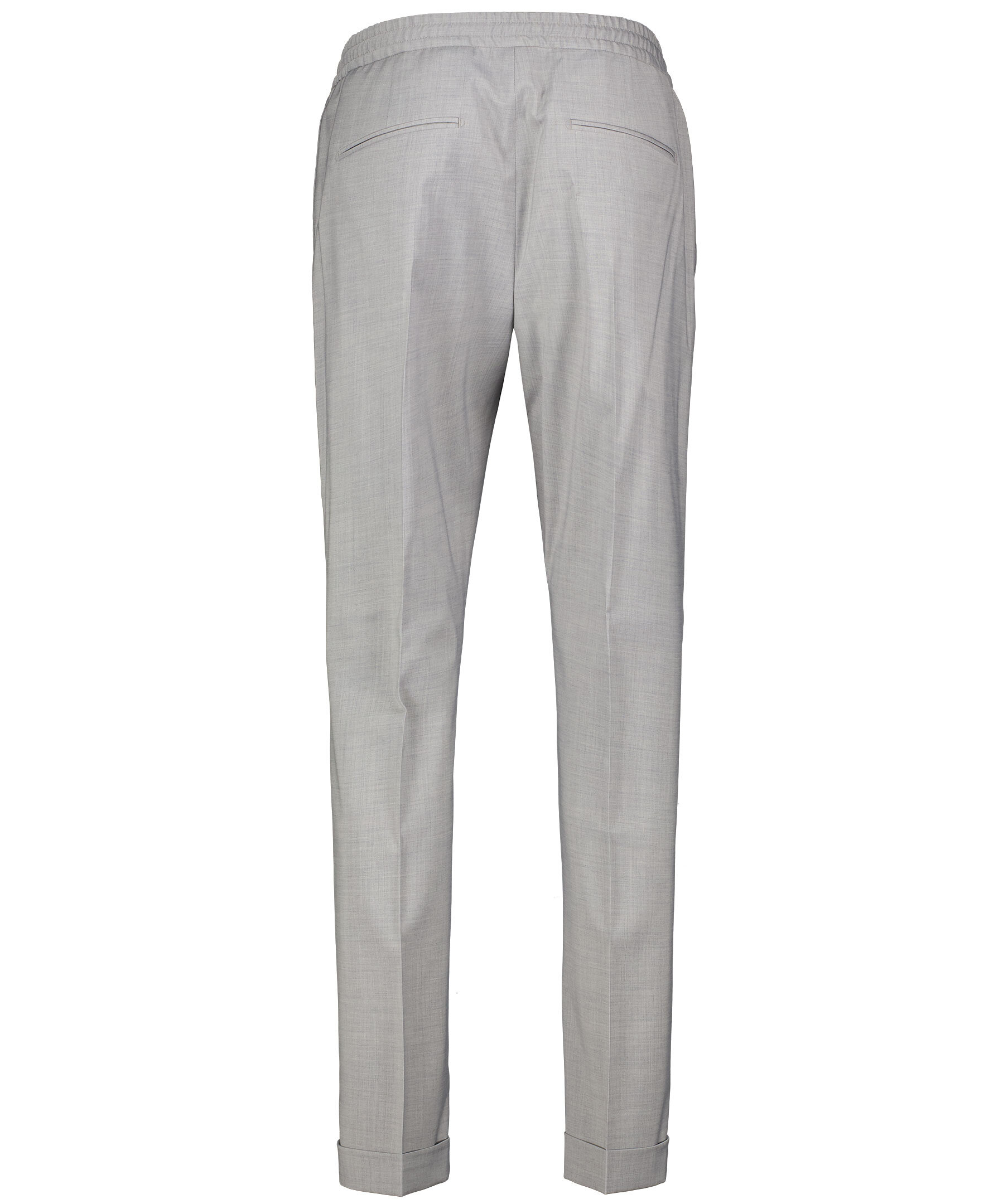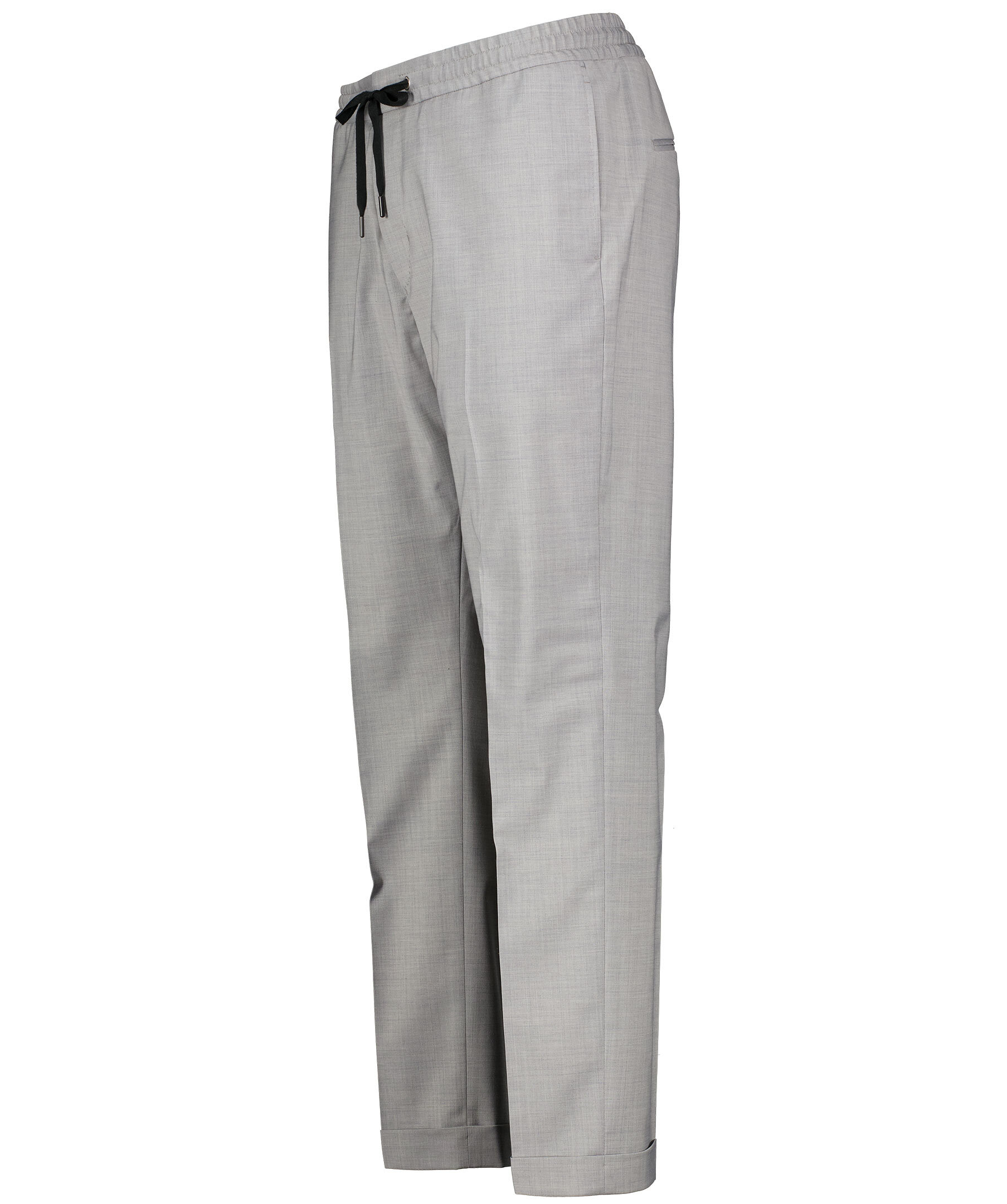 Grå kostymbyxor i rak passform från Tiger of Sweden. Resår och knyt i midjan, dragkedja i gylfen.
