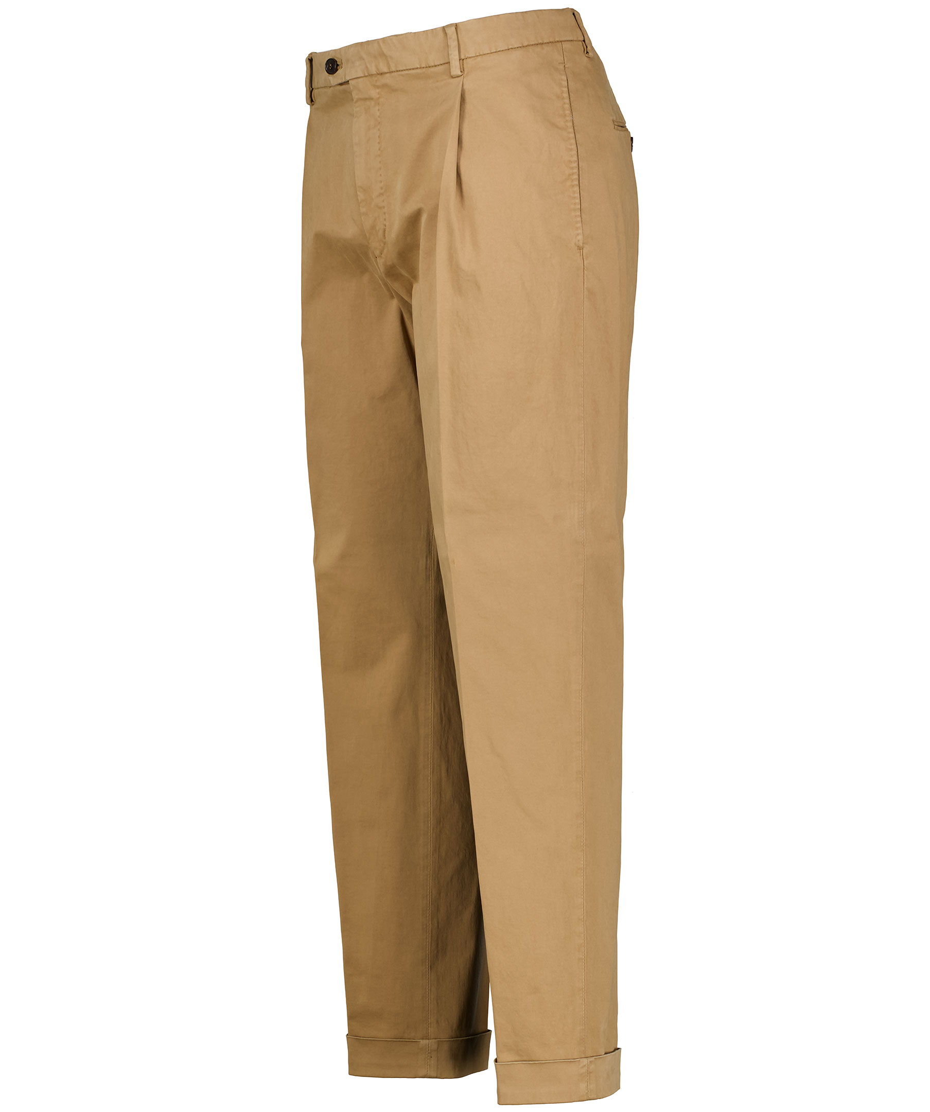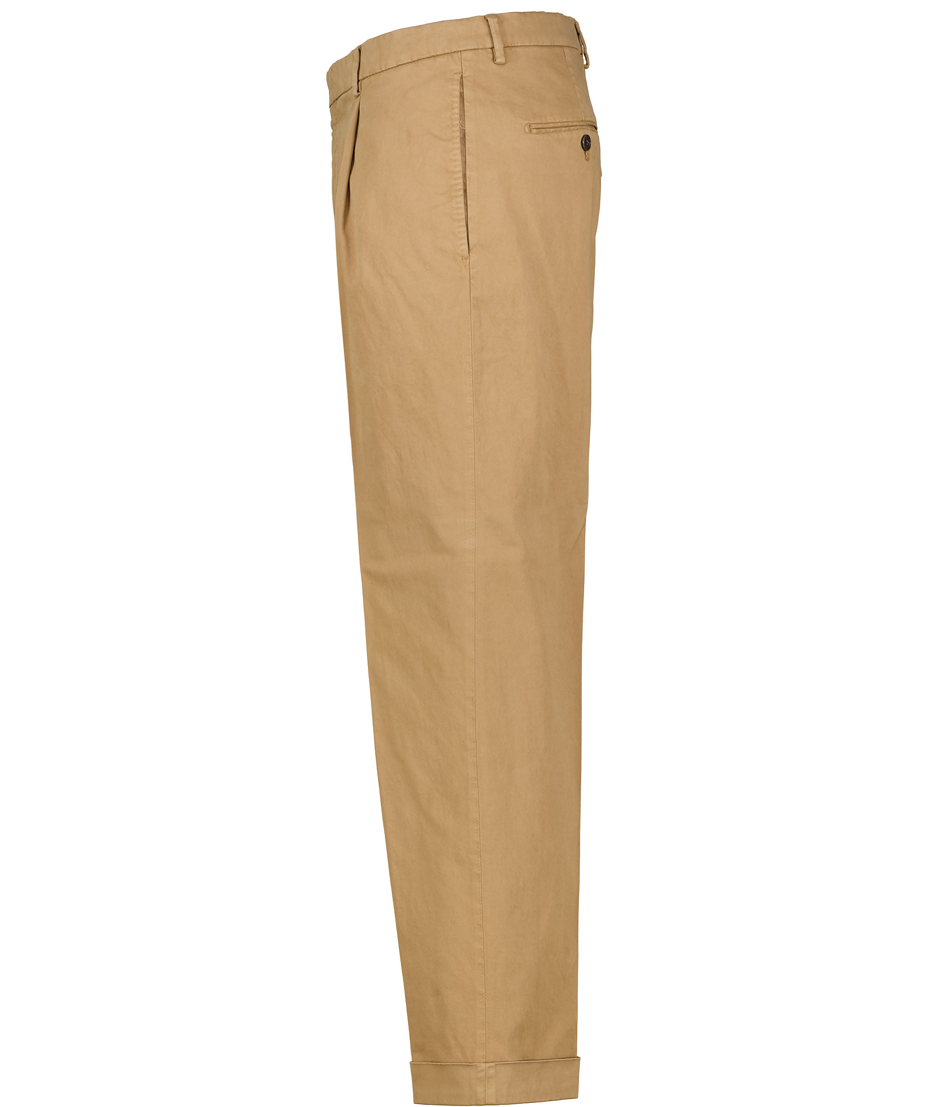 Beiga kostymbyxor i rak passform från Tiger of Sweden. Tillverkade i kraftigt bomullstwill, två framfickor och två bakfickor. Mellan hög midja och uppvikta vid benslut.