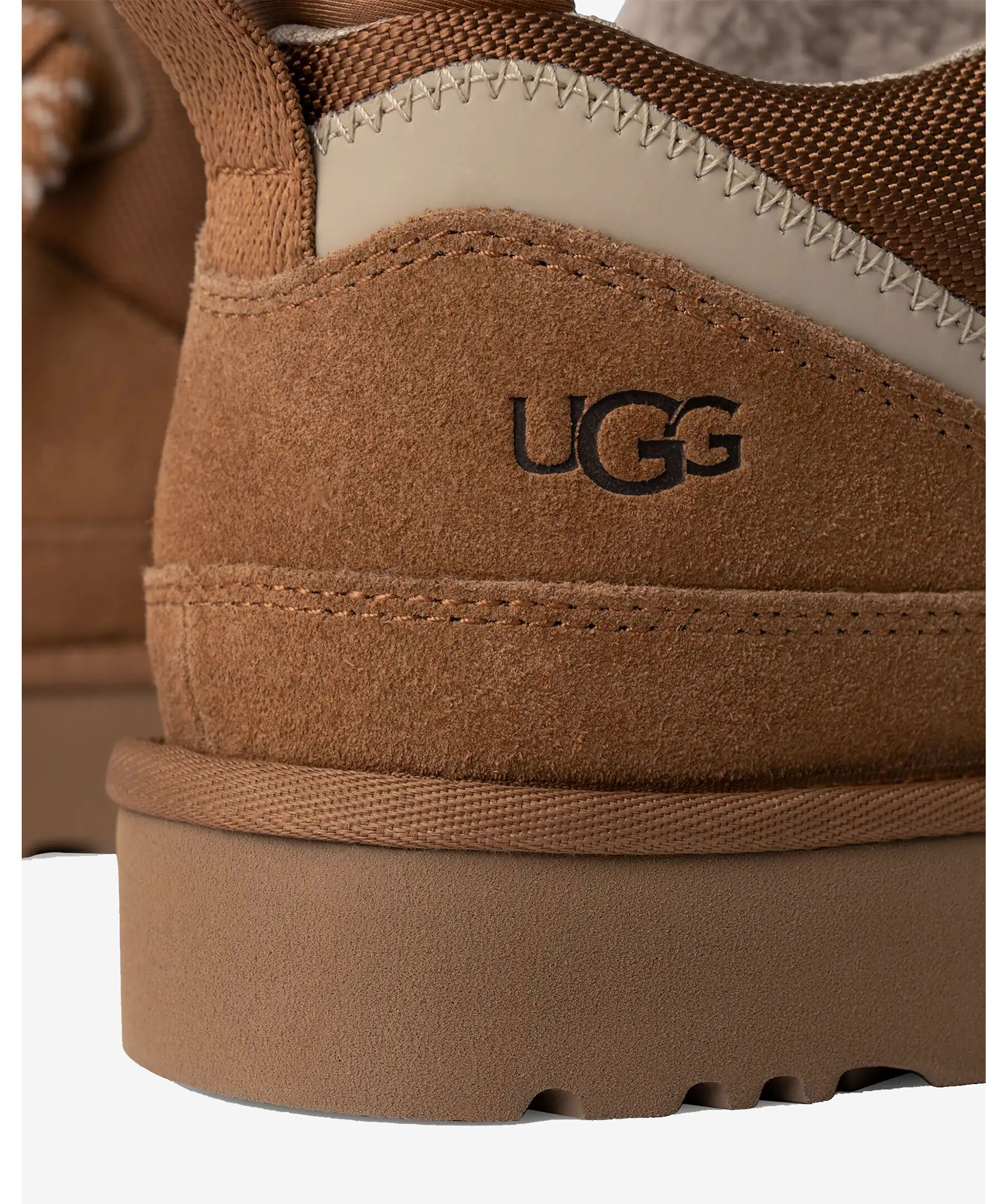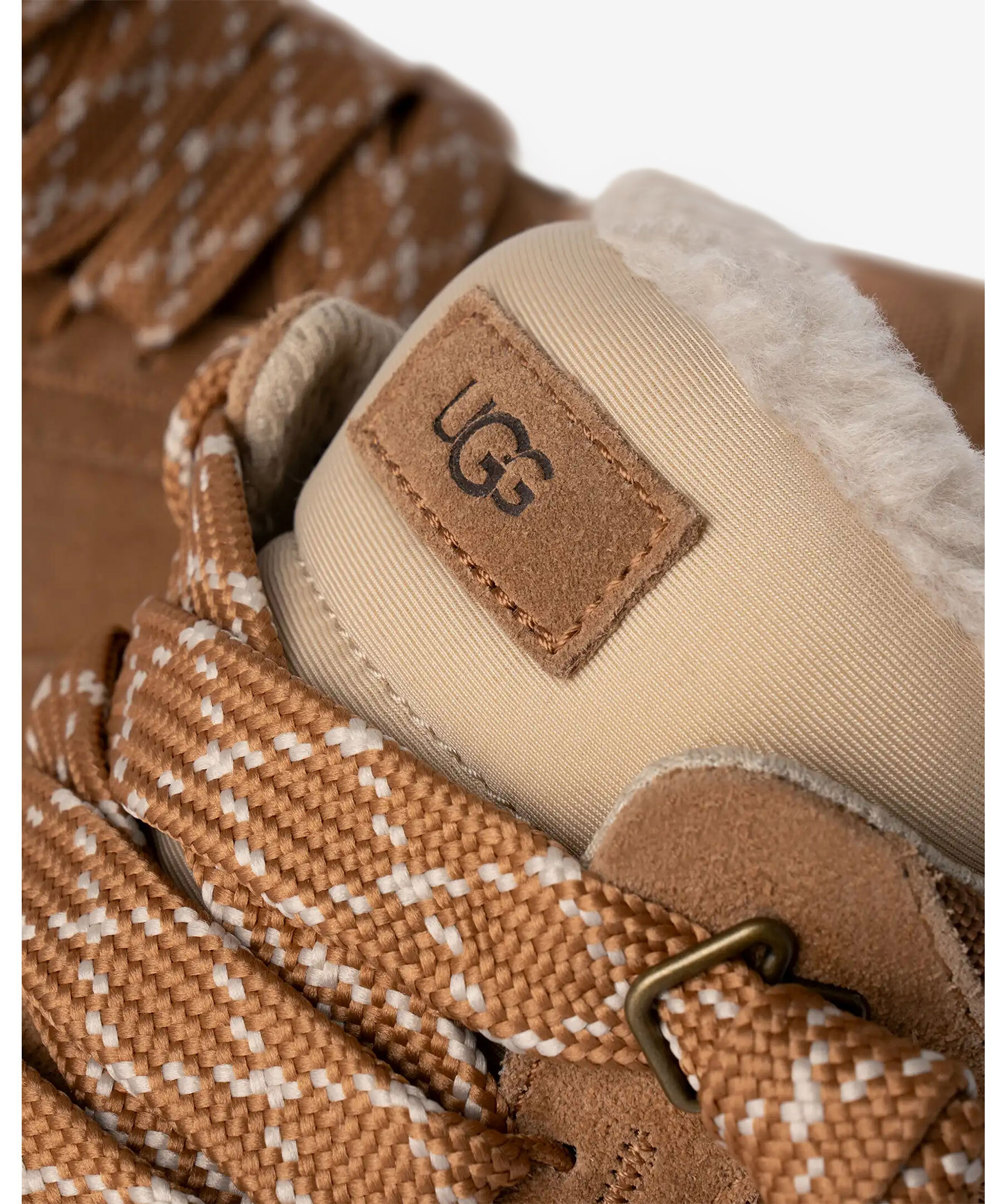 Kamelfärgade, fodrade skor från UGG i en modell som liknar både kängor och sneakers. Tillverkad med en supervadderad siluett, en ovandel i mocka samt logotyp på plösen och utsidan av skon samt en yttersula i sockerrörs-EVA för högsta komfort. Skorna har breda och platta skosnören. Extra skosnören medföljer.
