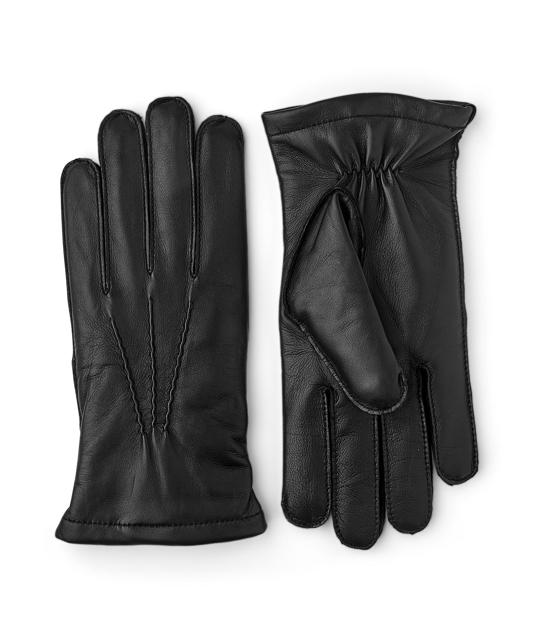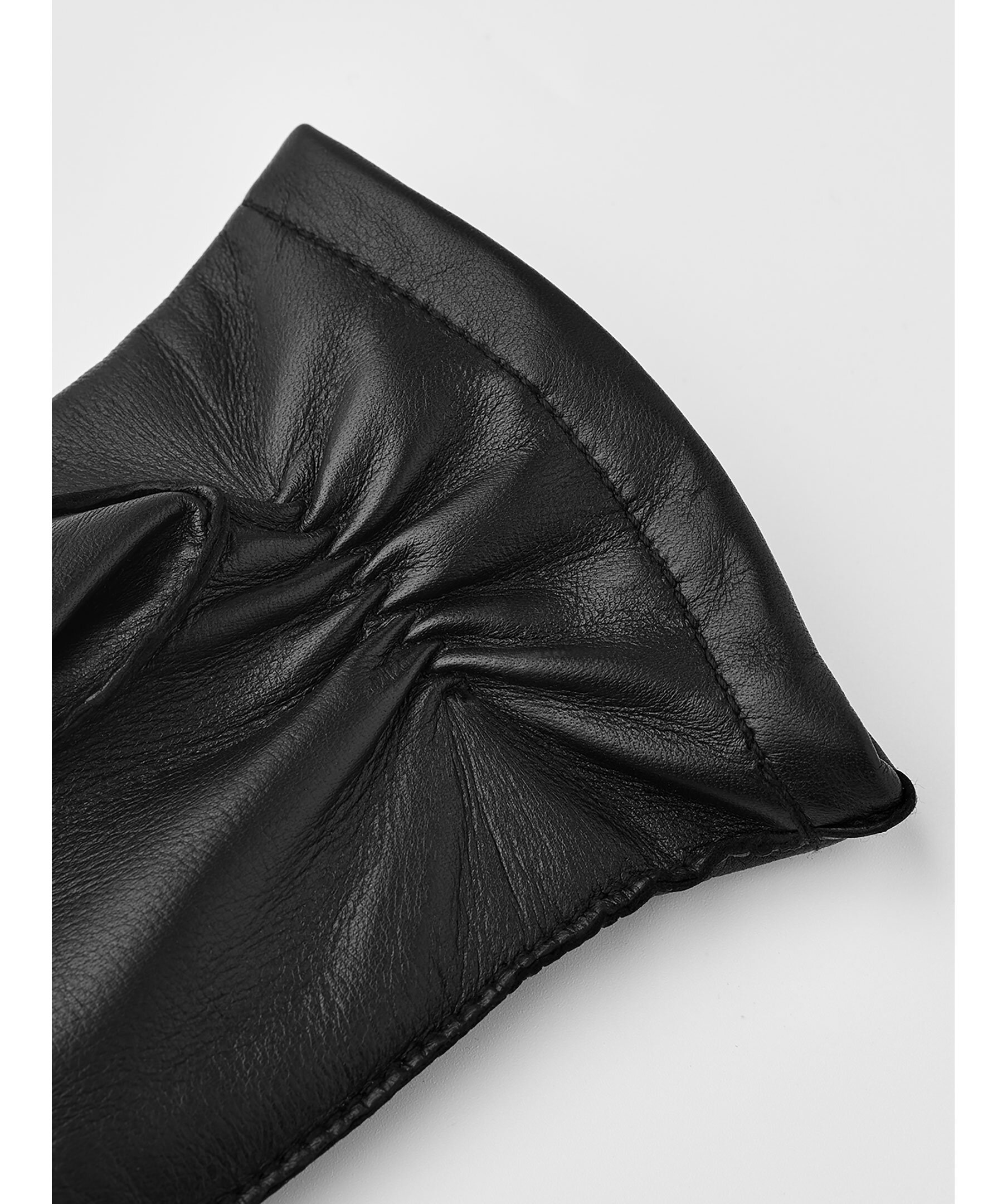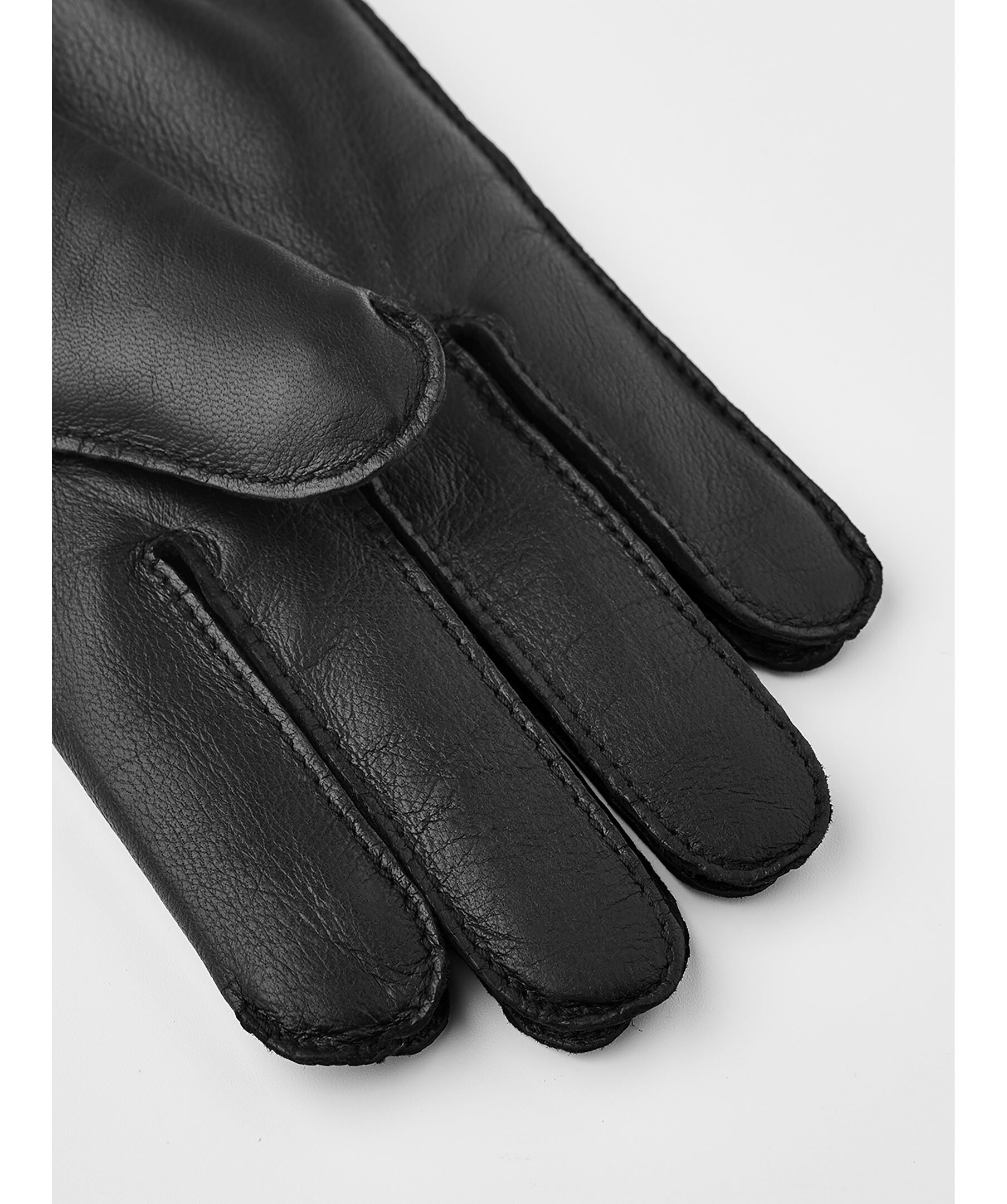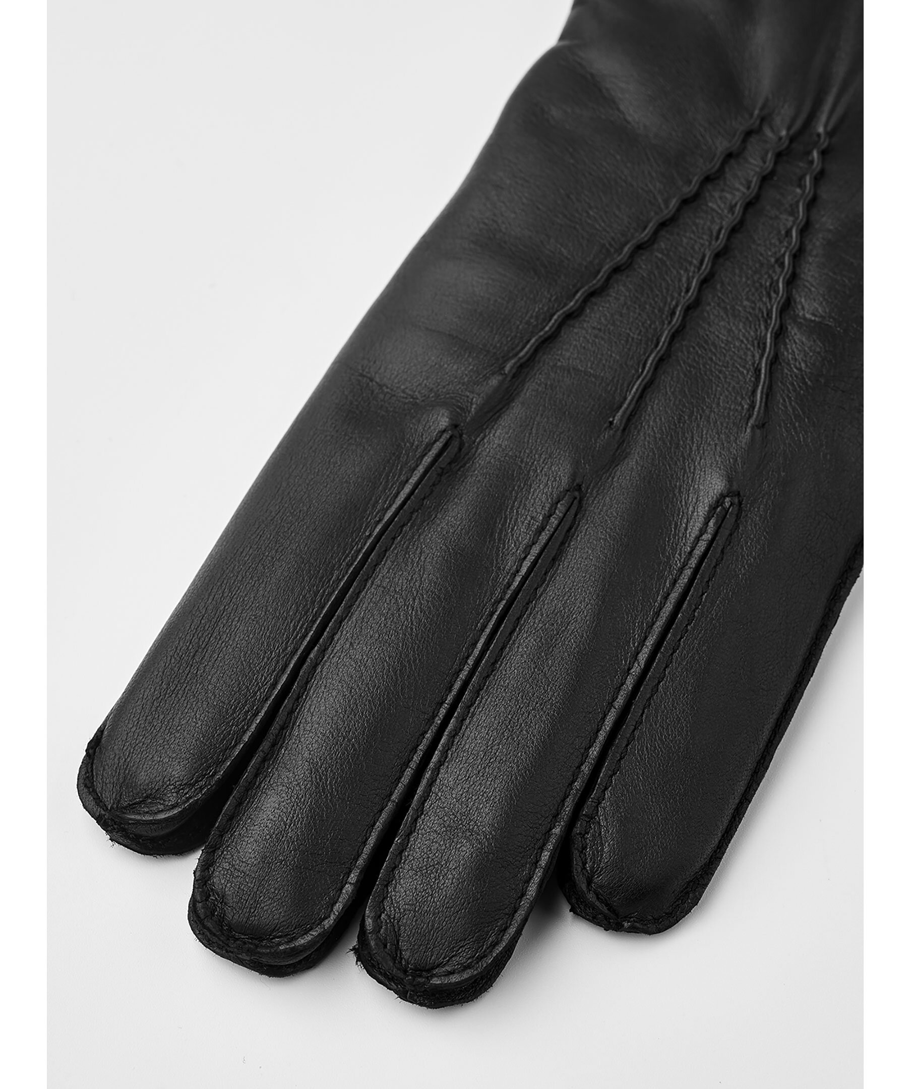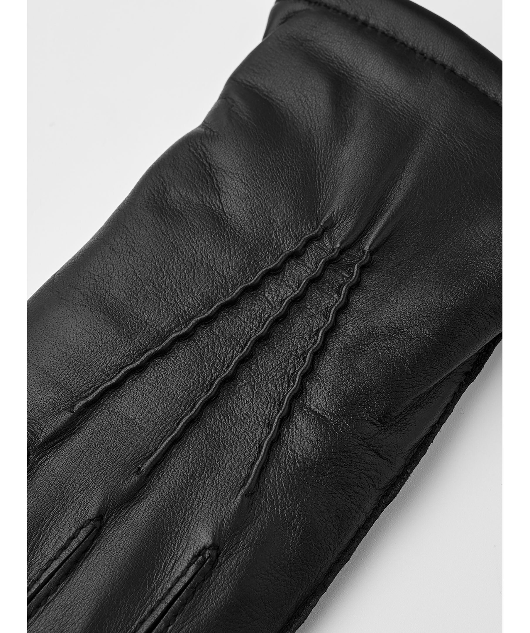 Svarta läderhandskar från Viska. Handskarna har värmande ullfoder för extra värme och har en slät, följsam lammnappa som är bekväm att bära. Dekorativ denta på handskens ovansida.