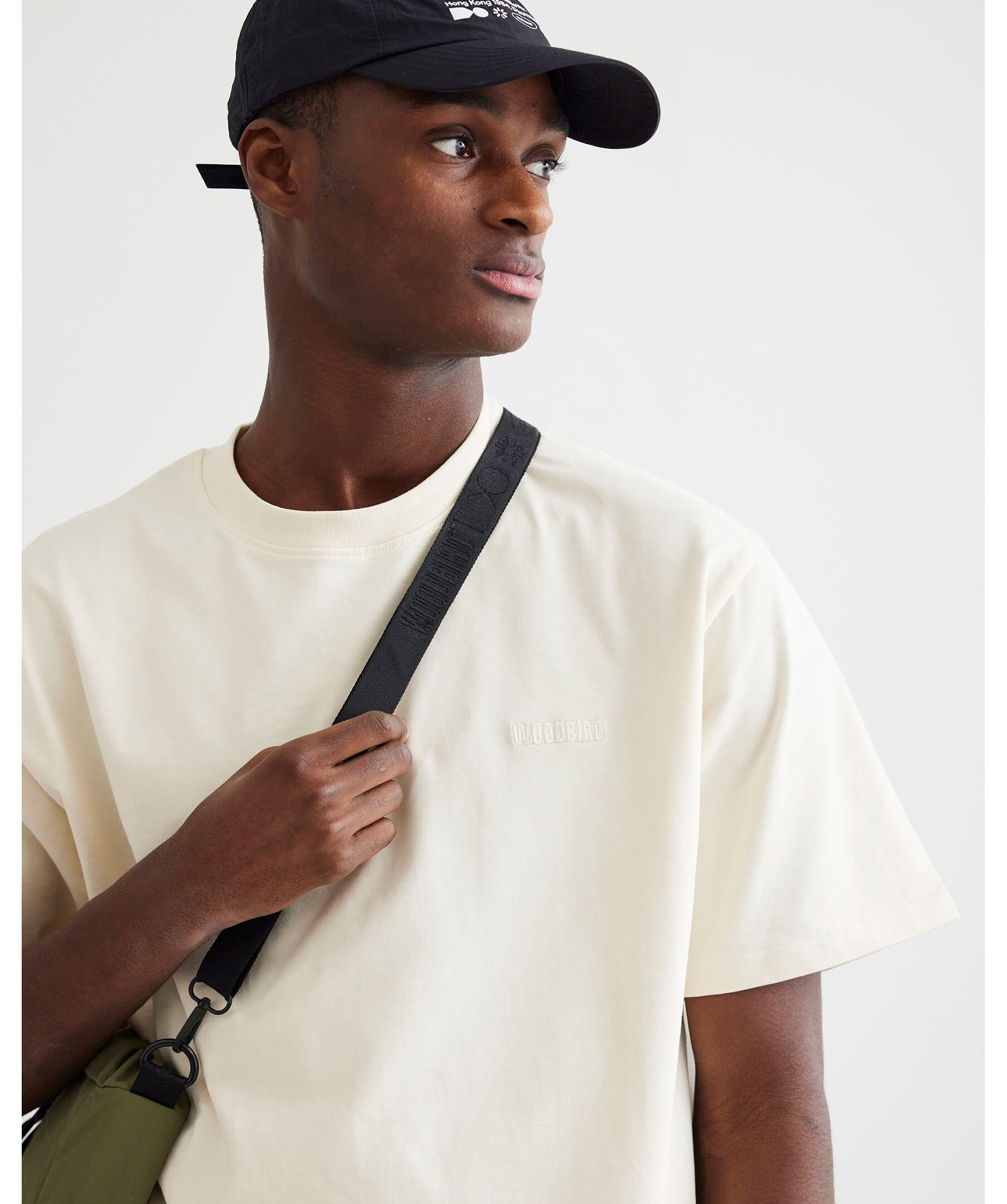 Krämvit t-shirt i 100% bomull från WOODBIRD.