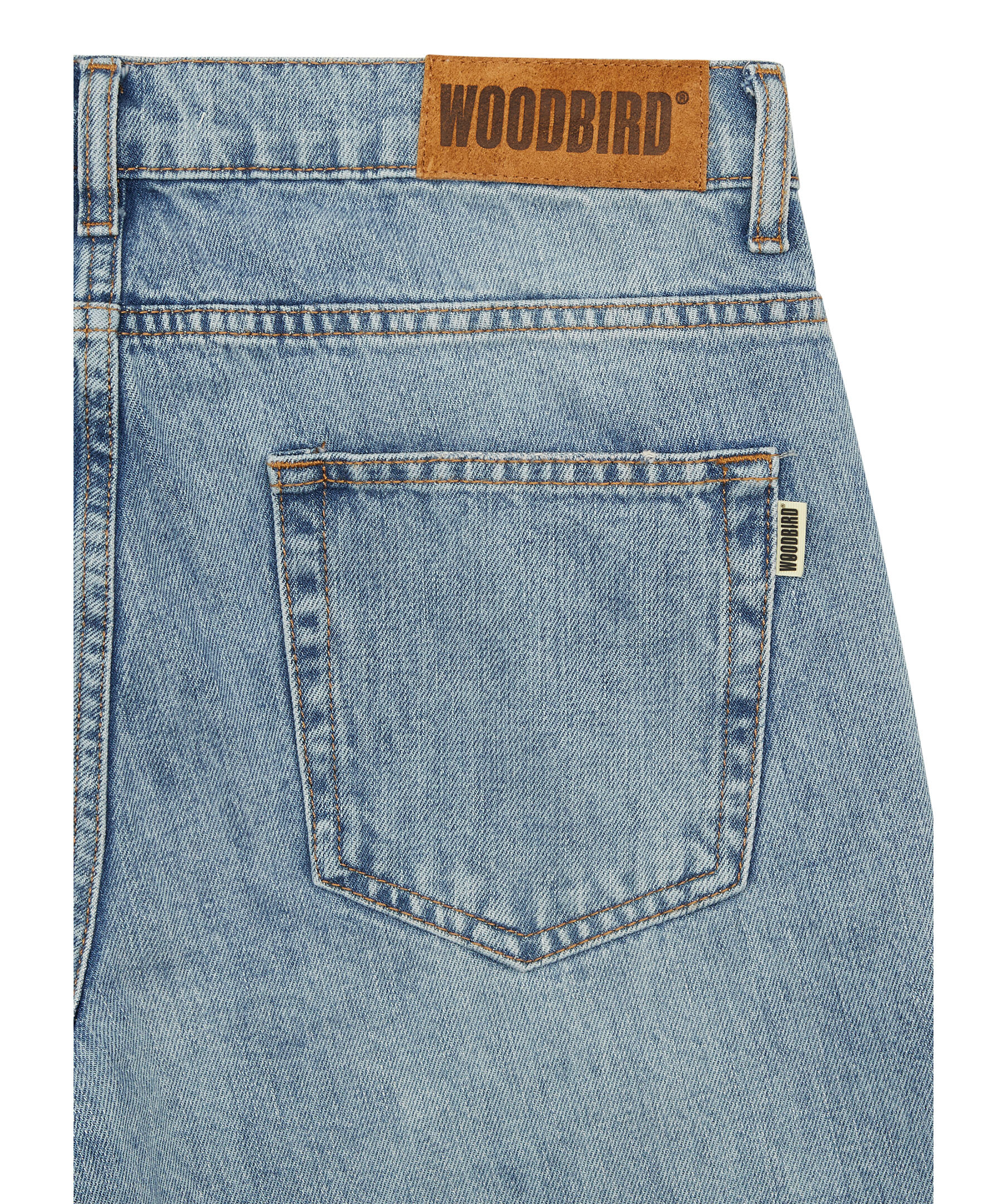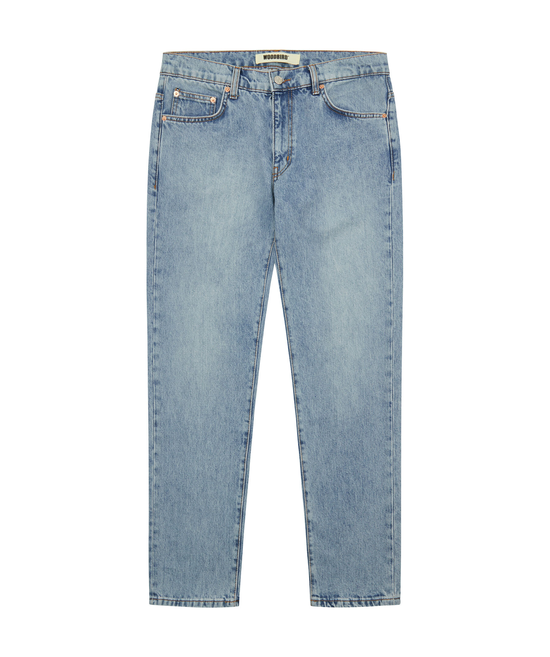 Ljusblåa jeans från Woodbird. Jeansen har en mellanhög midja, fem fickor, gylf med dragkedja och logotyppatch på linningen. Tillverkade i bomull.