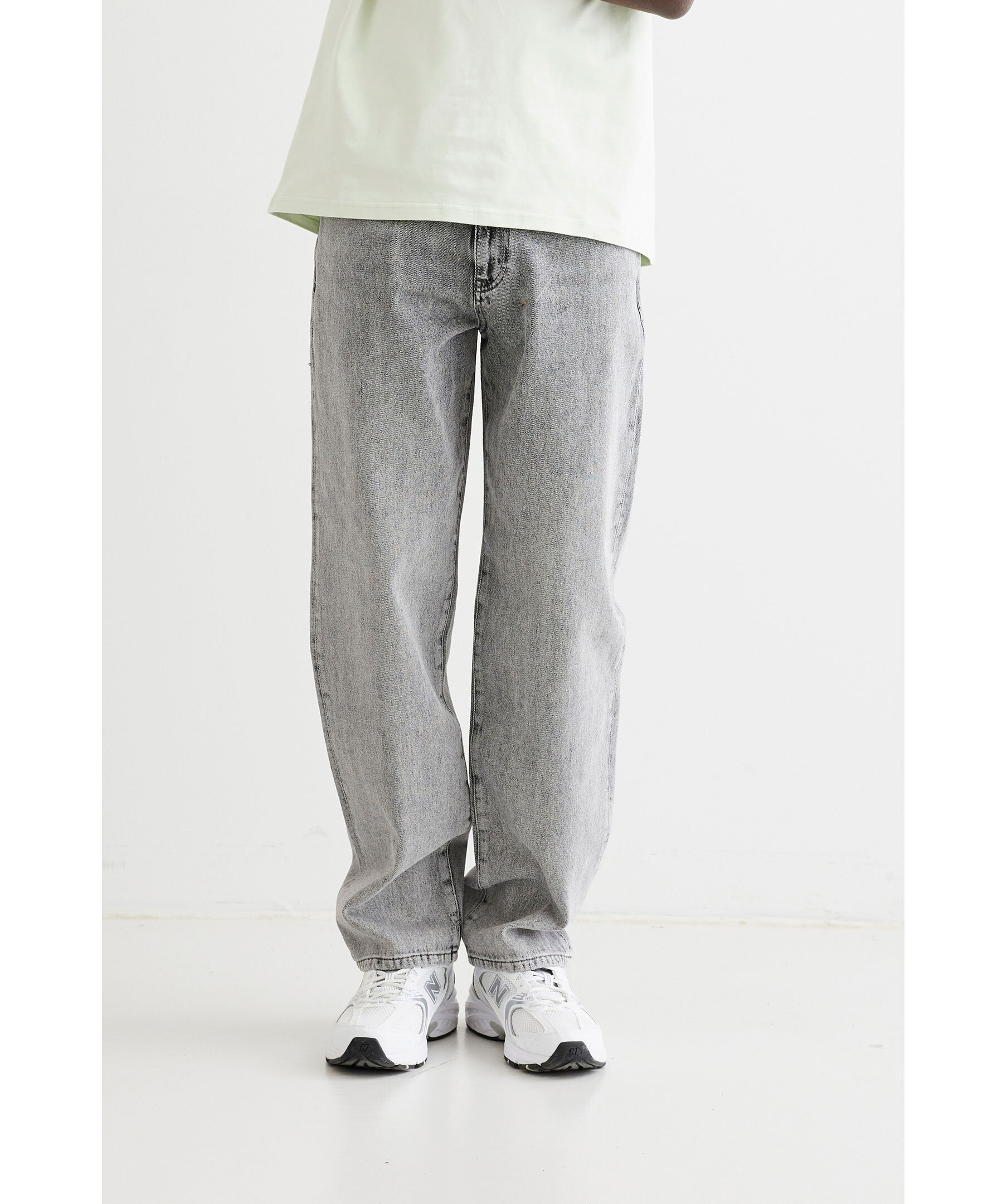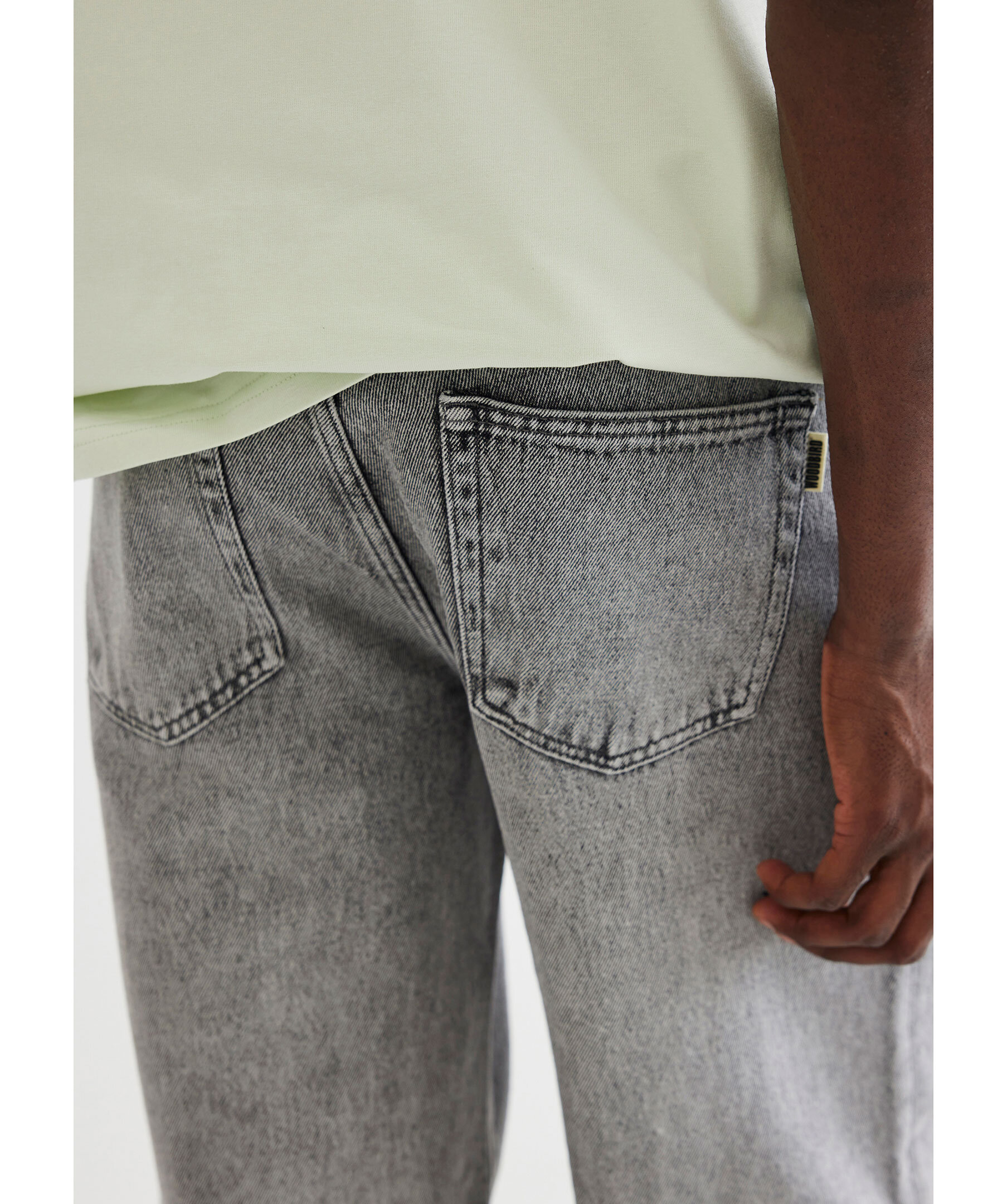 Ljusgråa jeans från Woodbird. Jeansen har en mellanhög midja, fem fickor, gylf med dragkedja och logotyppatch på linningen. Tillverkade i bomull.