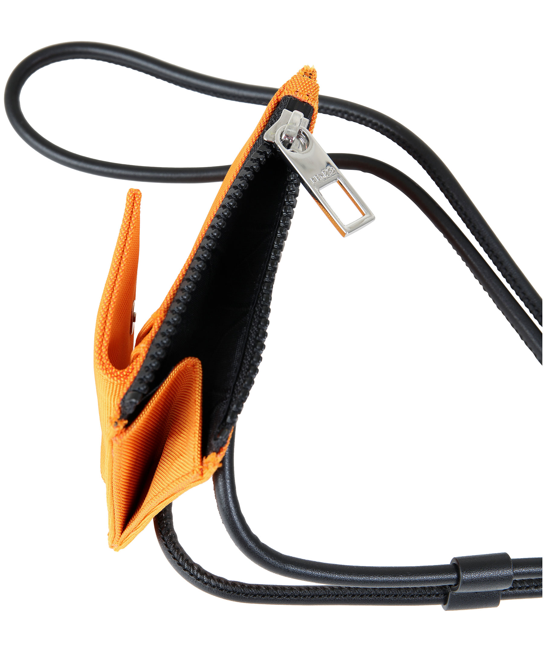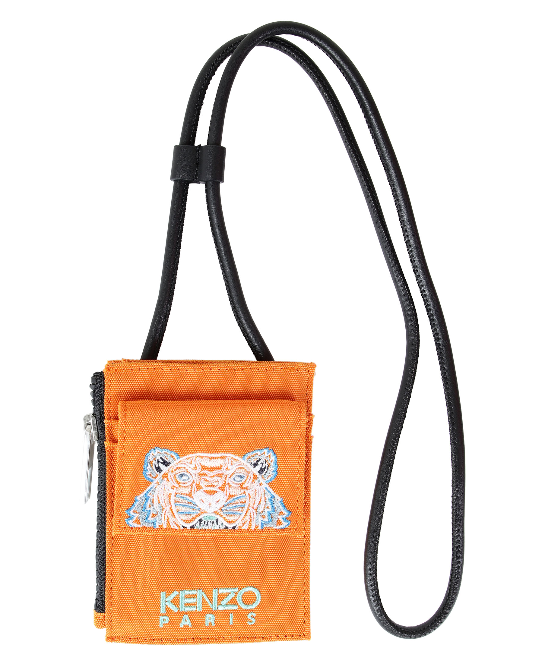 Orange liten korthållare med band från Kenzo. Tillverkad i textil. Broderad tiger och logotyp framtill, ett sidofack som stängs med dragkedja samt två mindre fack framtill.