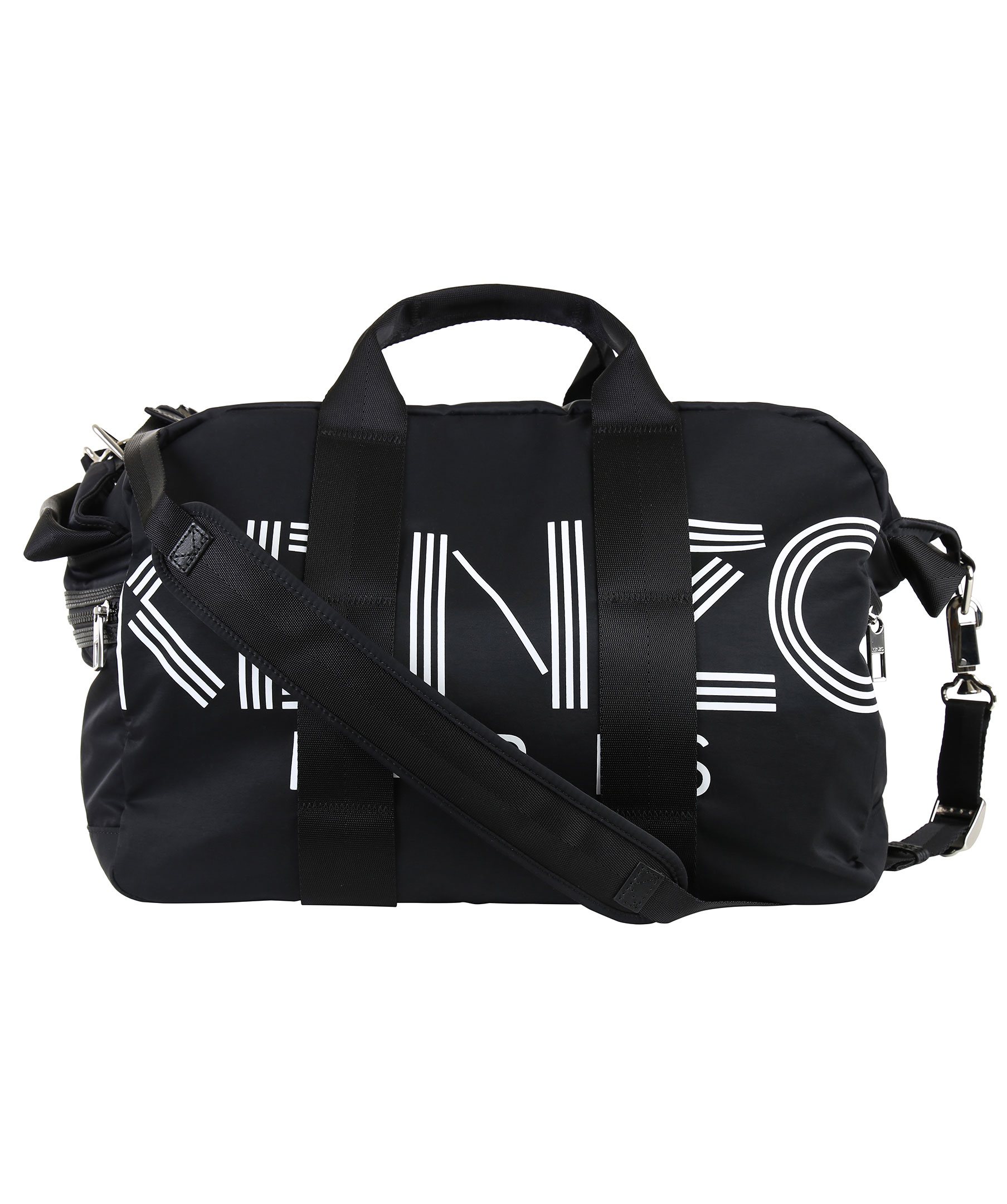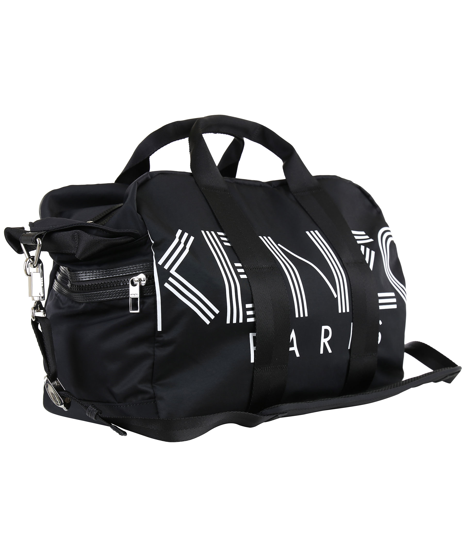 Svart weekendbag från KENZO. Tryckt logotyp i vit kontrastfärg på framsidan. Två sidofickor med dragkedja samt två innerfickor. Handtag på ovansidan och avtagbart axelband .