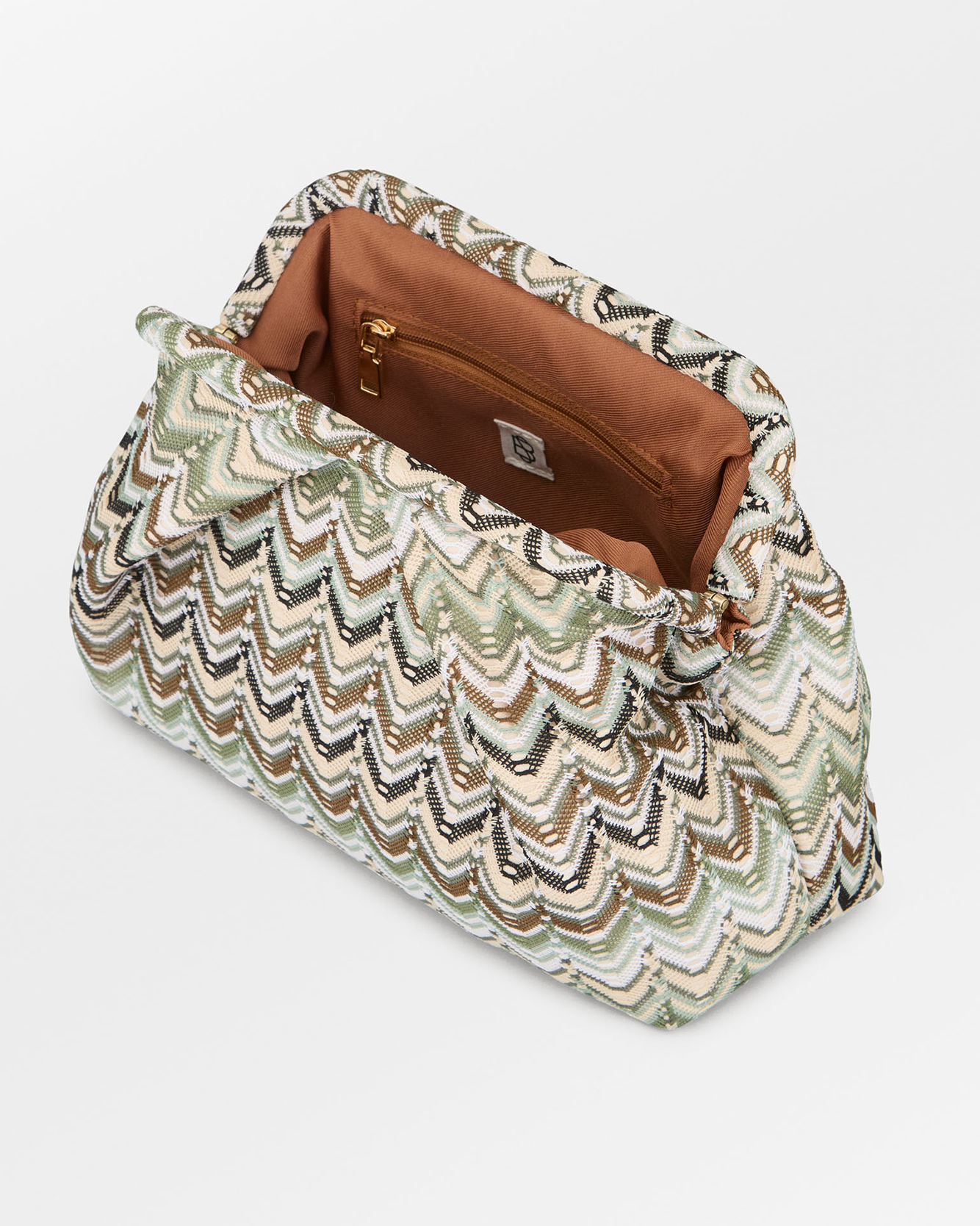 Mönstrad väska från Becksöndergaard Aps. Väskan har en öppning till ett större fack samt en mindre ficka inuti med dragkedja. Tillverkad i polyester. Mått: 26x18 cm.