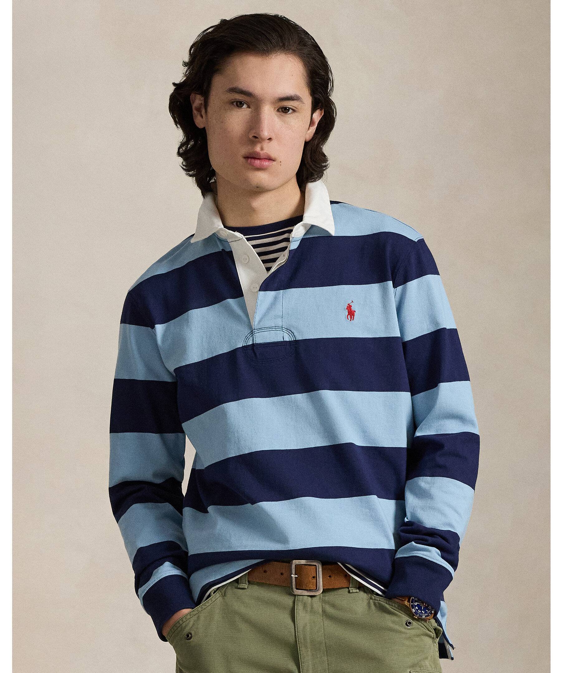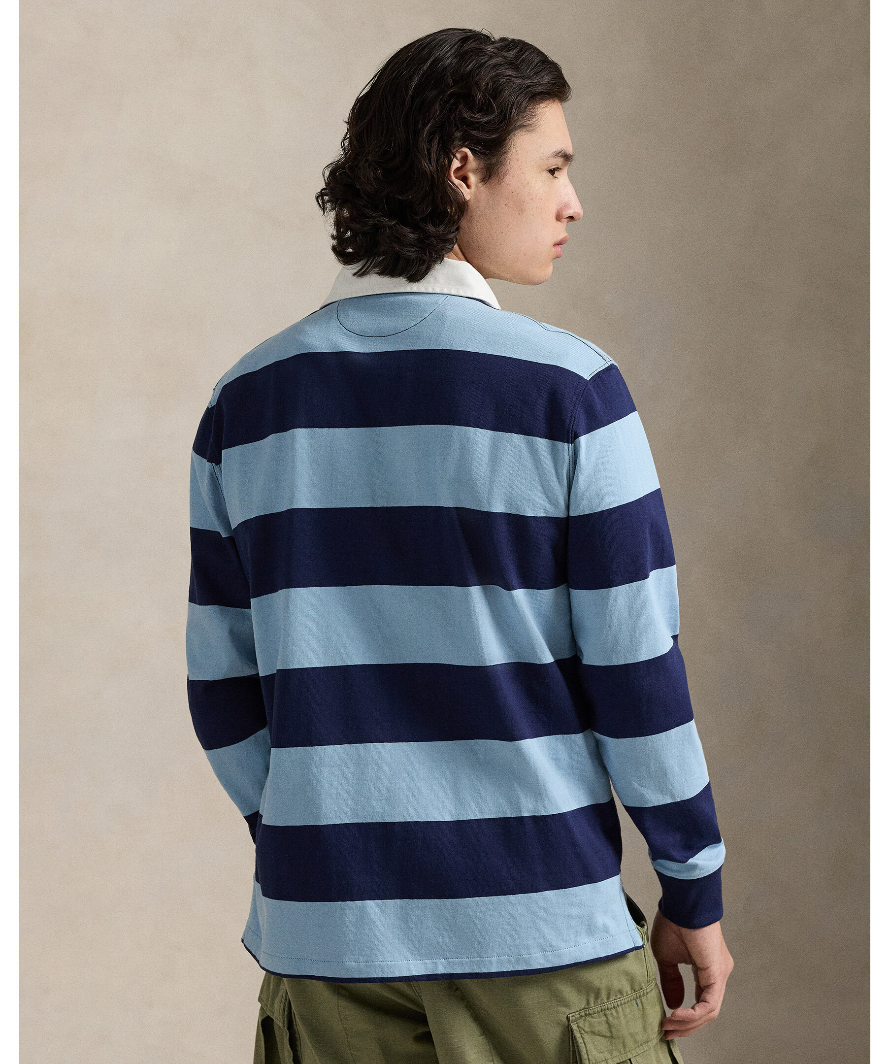 Rugby‑inspirerad långärmad tröja från Polo Ralph Lauren med klassisk vit krage och randigt mönster i blått. Tröjan har en regular fit.