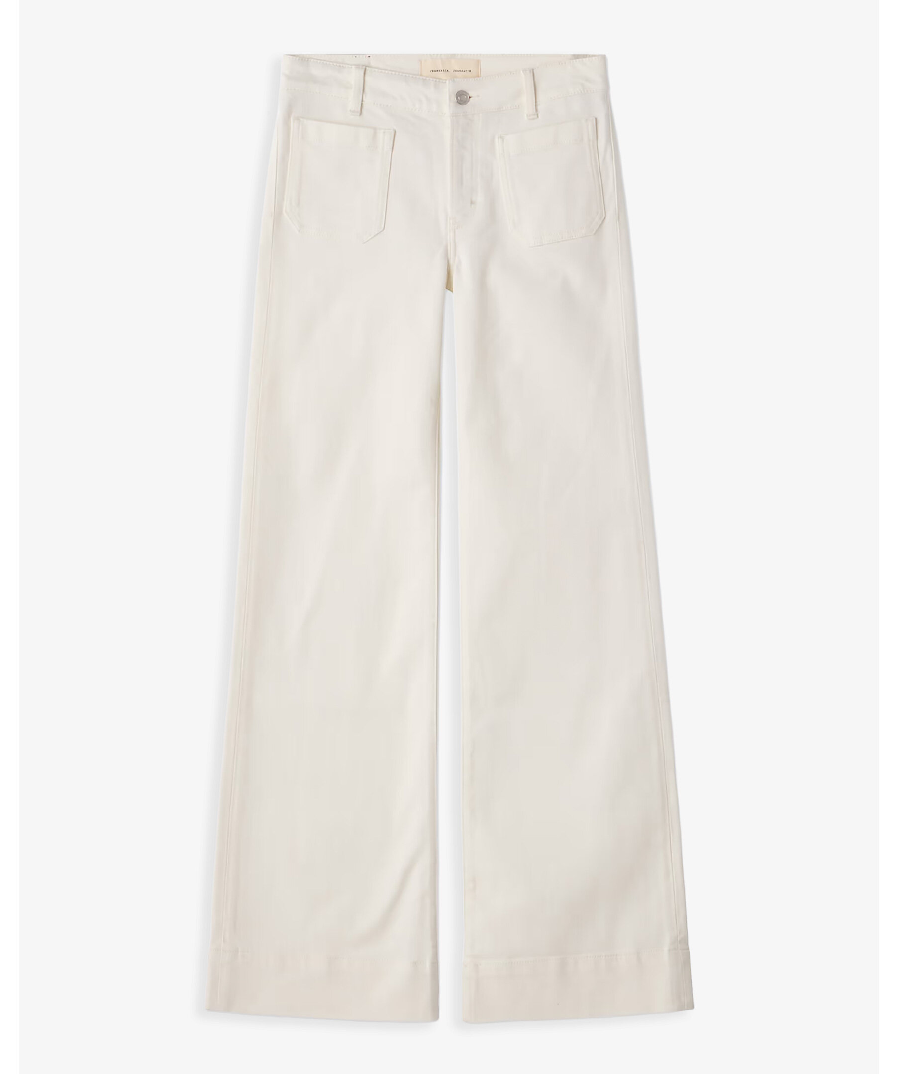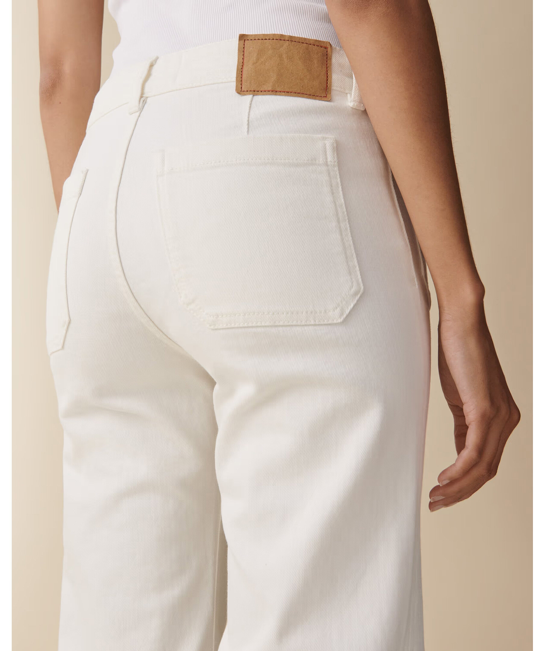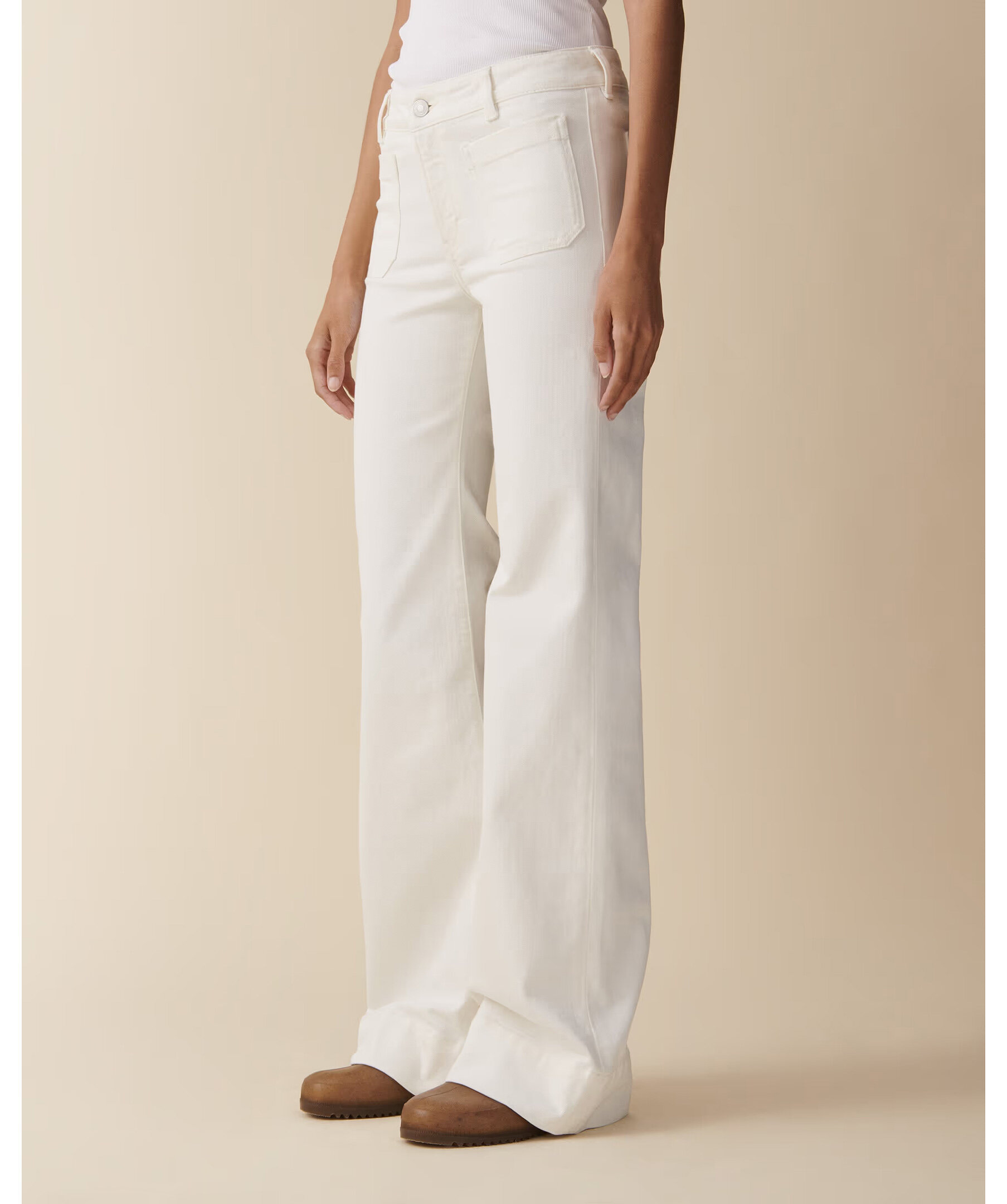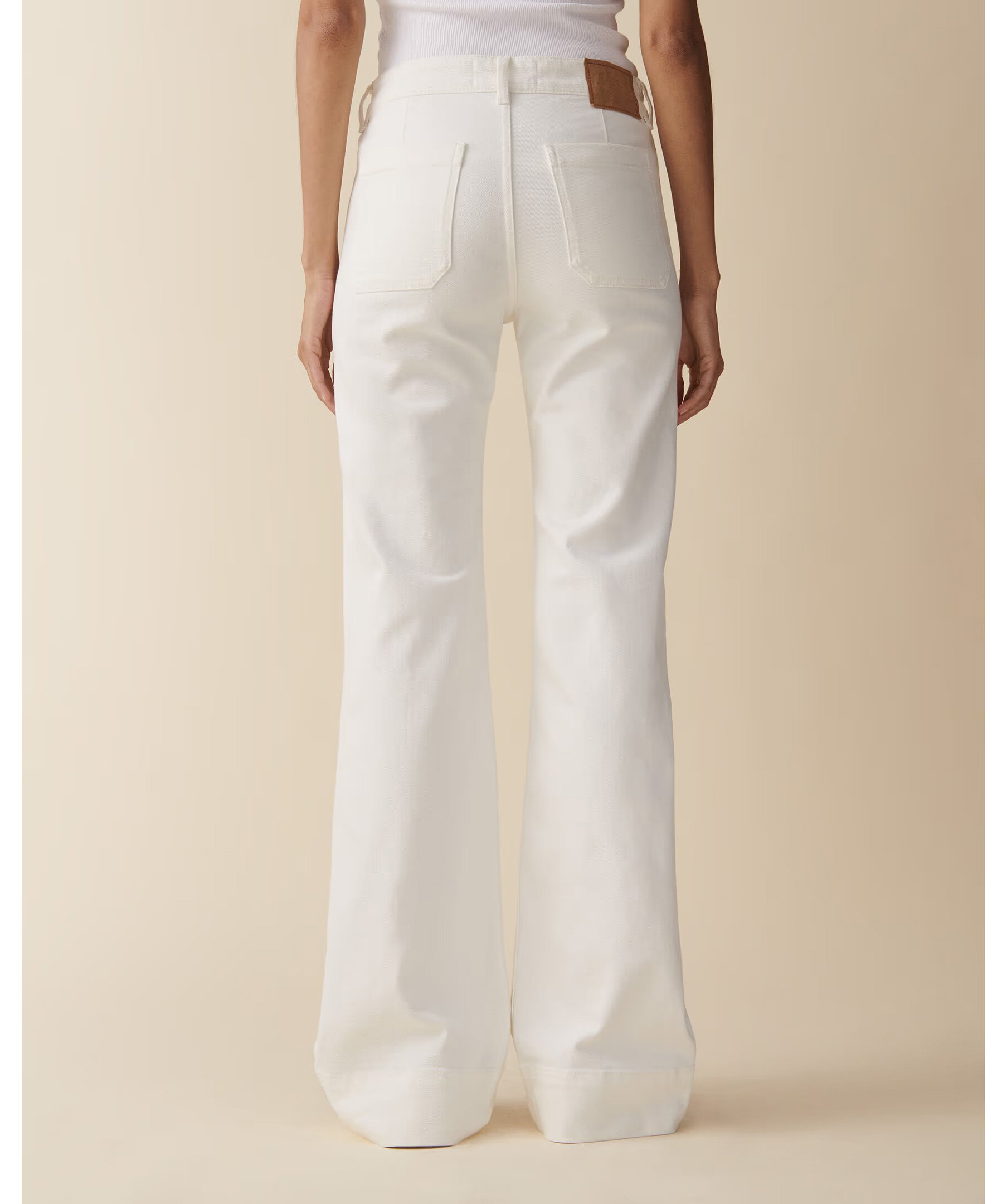 Vita lågmidjade jeans från Jeanerica med utsvängda ben. Jeansen har två påsydda framfickor, två bakfickor, bälteshällor och en patch på linningen. Tillverkade i en bomullsblandning.